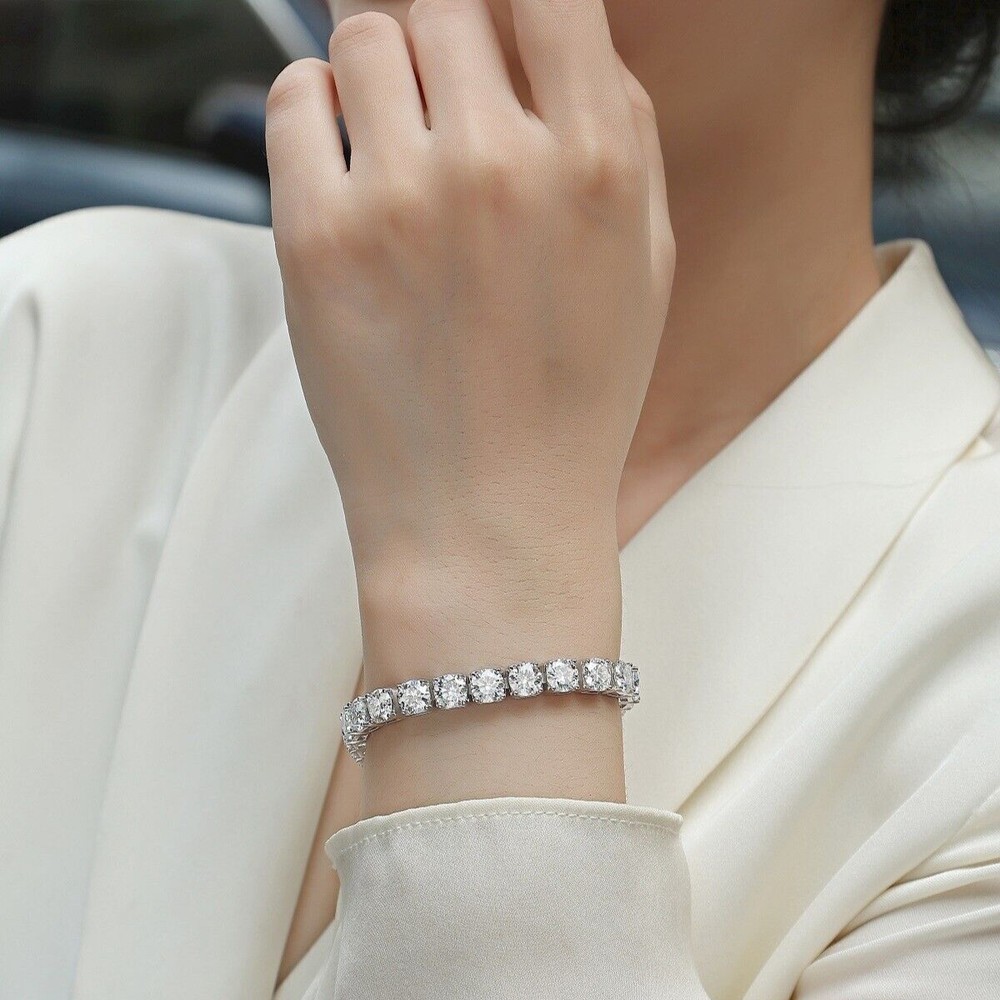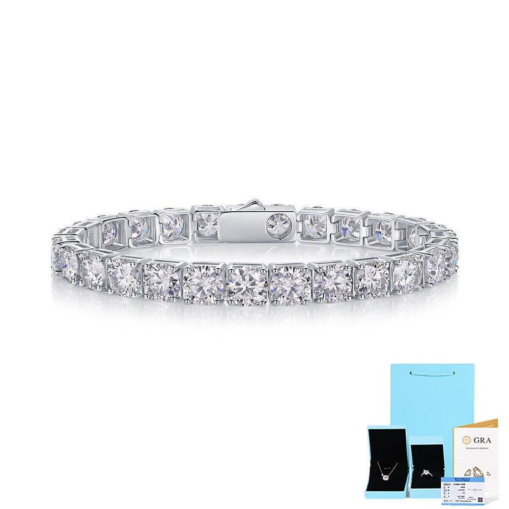 Moissanite offers timeless beauty and exceptional value. The stones we use are GRA certified VVS1 clarity Moissanite . The details matter so we do not buy simply the cheapest stones on the market. We only purchase the most beautiful ideal cut moissanite stones that offer the highest fire and brilliance. This is the best compromise between cheap fakes (CZ, crystal, rhinestone) and extremely expensive diamond solitaire stones. Natural diamond equivalent bracelets cost $2,000 - $50,000+ for larger sizes. Get the same look at a much better price! -VVS1 Clarity D Color GRA certified Moissanite Stones -Hearts and Arrows Pattern Ideal Cut. Excellent Rating -9.5 Hardness Rating. Diamonds are perfect 10, cheap fakes are 3-4. This means Moissanite won't dull over time. -925 Sterling Silver With Rhodium Plating or 14K Yellow Gold Plating -Passes many commonly used Diamond Testers -Comes with box with certificate (NOTE only 3mm and up have GRA certificate) ny, anniversaries,etc. -It is the best gift for Mother's Day, Valentine's Day, Christmas, birthday, graduation ceremony, anniversaries,etc.