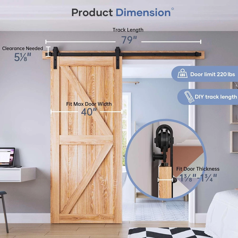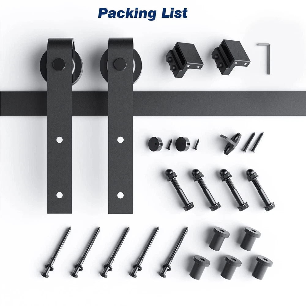 is a company specializing in barn door products.We have advanced production technology and an excellent after-sales service team.We are committed to providing customers with better products and service. Barn Door Hardware Kit: High quality aluminium, fine black powder coated surface,anti-corrosion ensures years of beauty and longevity.Slide Like Butter ,Ball bearing roller slide smoothly and quietly,Tested Beyond 100,000 Rolls.All items have been multiple inspected before on market. Widely Apply: Our hardware suitable for both modern and rustic style,you can apply for aisle,garage,kitchen,bedroom and so on. Reminds: Fit up to 40" Wide Door;Fit Door Thickness 1-3/8" ~ 1-3/4"(35~45mm);Door Weight Capacity 220lbs. Package Includes:(2)3.3ft Rail,(5)Spacer,(2)Rollers,(2)Door Stops,(1)Floor Guide.NOT INCLUDE DOOR Easy Install: We provide step-by-step graphic & text installation parsing manual,you can also get soft online copy and professional installation guide from our online service. 24 Hours Stand By: specialize in sliding door and hardware many years,if there anything missed or broken,pls let us know,we are whole day online to solve your problem.