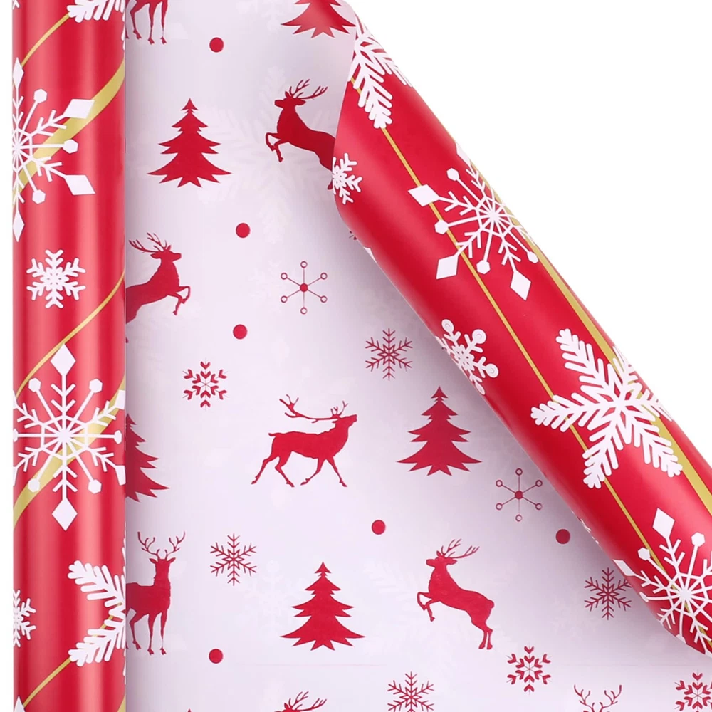 Embrace the magic of Christmas with our stunning gift wrapping paper. Adorned with beautiful red and white hues, and featuring double-sided printing of enchanting snowflakes, majestic Christmas trees, and charming reindeer. Made from high-quality coated paper, it offers durability and a luxurious feel. The extra-long 17 x 792 inch size ensures versatility for wrapping gifts of all shapes and sizes. Whether it's a small trinket or a large present, this wrapping paper will add a touch of festive charm. Not only does it look amazing, but it's also environmentally friendly and recyclable, making it a great choice for those who care about the planet. Make your Christmas gifts stand out this year with our delightful Christmas-themed wrapping paper. Rich Christmas Atmosphere:This Christmas-style gift wrapping paper features a classic red and white tone. Both sides are printed with exquisite patterns full of Christmas elements such as snowflakes, Christmas trees, and reindeer. Instantly bring you into the joyous Christmas season and add a strong festive atmosphere to your gift. High-quality coated paper material:Selected high-quality coated paper, which is thick and textured and not easily damaged, can better protect your gift. At the same time, the surface of coated paper is smooth, the printing effect is clear and delicate, and the colors are vivid and lasting, making your gift packaging more beautiful and elegant. Double-sided exquisite printing:The unique double-sided printing design is extremely exquisite from any angle. The patterns of snowflakes, Christmas trees, and reindeer on each side are lifelike, bringing an all-round visual enjoyment to your gift and making the recipient feel your care and sincerity. Extra-long size with wide applicability:The extra-long size of 17 x 792 inches can meet your wrapping needs for gifts of various sizes. Whether it's a small jewelry box or a large toy, it can be easily wrapped, providing perfect decoration for your gift. Environmentally friendly and recyclable:Not only focusing on beauty and quality, this gift wrapping paper is also very environmentally friendly. Coated paper material can be recycled to reduce environmental pollution. Let you contribute to the sustainable development of the earth while enjoying the joy of Christmas.