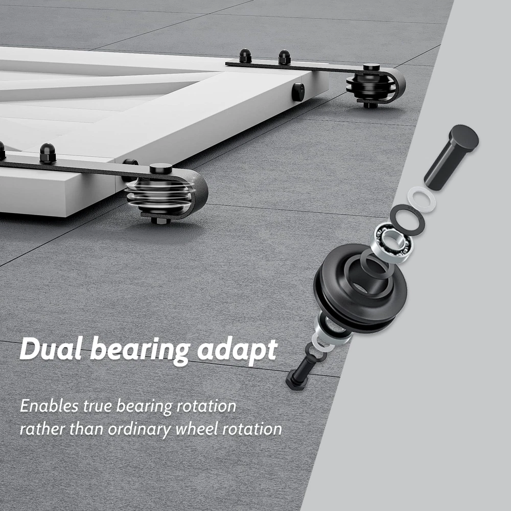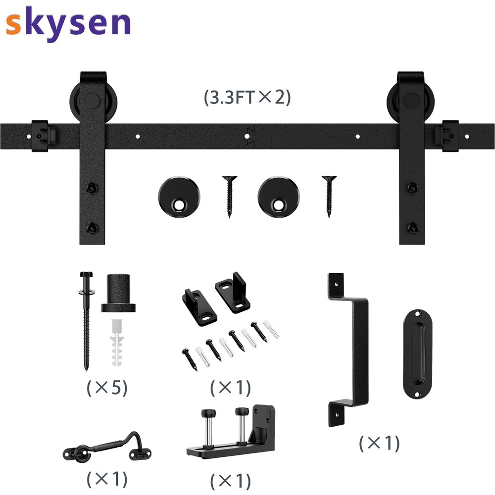 barn door hardware kit set including handle pull,hook,wall mounted floor guide. [INNOVATION DESIGN-LIGHT VERSION] By using the light version carbon steel for barn door hardware system(lighter but hold maximum 265lbs, More stronger and stable), The barn door track will be easy to lift up during installation. Low clearance barn door hardware, Less space required, The barn door roller is shorter, Which make the space required from top of barn door to ceiling will be only 5". [PREMIUM RAW MATERIAL] Barn door hardware kit are made of premium quality carbon steel in thickness of 5/32", Which make the barn door kit system more sturdy and stable durability. The wheel part are made of POM(better than steel, few scratch to barn door track), 2 pcs Bearings in side wheel, All these ensure the sliding will be smoothly and quietly. [REASONS FOR CHOOSING US] Get super quality barn door hardware kit from us ,All the barn door hardware kit have been inspected in factory before delivery,Passed 100,000 times opening and closing test.Get barn door hardware kit with a manufacturer price,why not ? In case you got any confustions on installation or missing parts after got the package ,kindly feel free to via directly ,we will get back to you in 24 hours ,thank you . [EASY TO INSTALL] Barn door track pre-drilled hole space is 16", Step by Step Instruction included. Our Instruction is listing every step for installation from A to Z. You can finish the installation of barn door hardware kit in half an hour if you get 2 workers. In case you get any problem or missing parts during installation, please free feel to via . [SPACE SAVING] Sliding barn door hardware kits provide an excellent solution for space utilization. Unlike traditional sliding doors, barn door systems don't impose limitations on the space behind the door, enabling you to conveniently organize items there. The key benefit of opting for a barn door system is the significant enhancement in spatial efficiency, which ultimately contributes to a neater and more organized space.ONLY BARN DOOR HARDWARE KIT INCLUDING ,BARN DOORS ARE NOT INCLUDED.