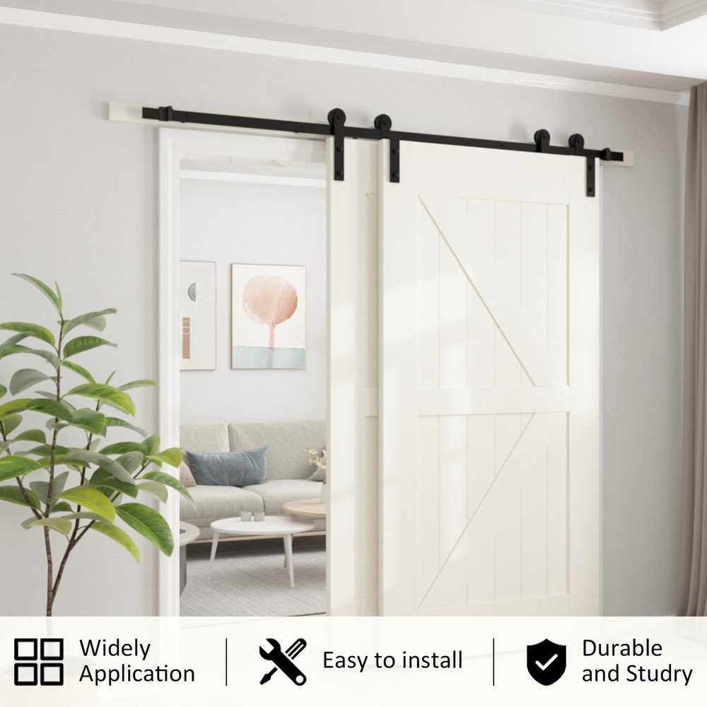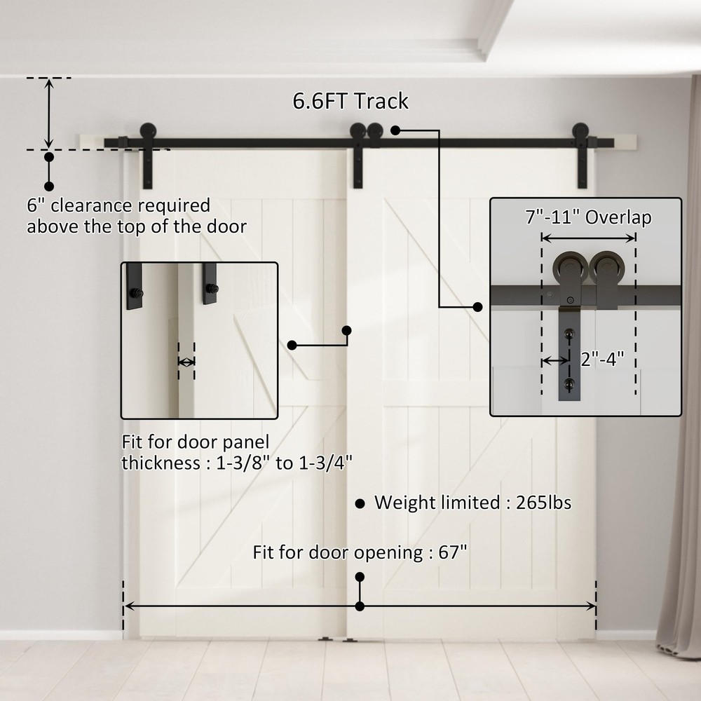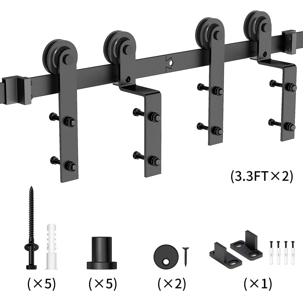 6.6FT Heavy Duty Sliding Barn Door Kit Single Track Bypass Double Door Hardware