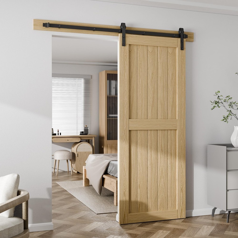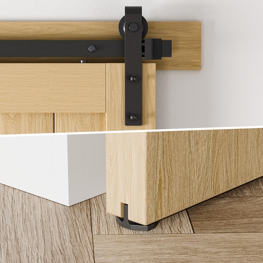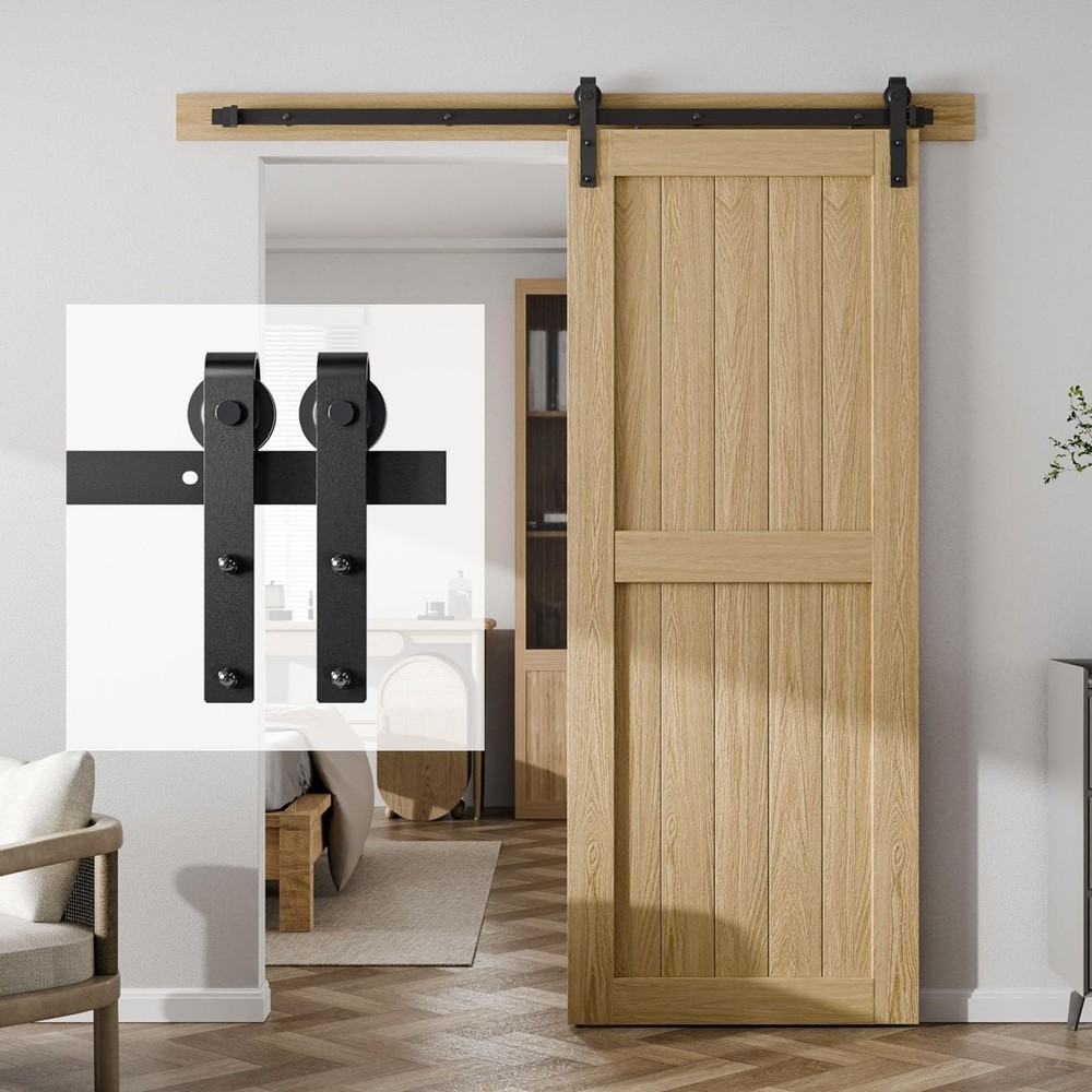 [Sturdy & Durable]: Sliding barn door Hardware kit is made of the highest standard carbon steel with a black coating to protect the product from rusting and thus prolong the life of the product. Here you can enjoy the best product quality at the best price. [Quiet & Smooth]: The inside of the roller is made of nylon, making it as quiet and smooth as butter when sliding over the guide rails, perfect for bedrooms, wardrobes, studies and other spaces where quiet is required. [Easy to install]: A step-by-step installation manual is included in the package, and you can the online guide at any time, so you don't have to pay extra to hire an installer, and you can enjoy your own DIY moments with your family at home. [Product Tips]: This sliding barn door hardware kit has a door load of about 330LB, a suitable door width of 40 inches, and a suitable door thickness of 1-3/16" to 2". A gap of 6" is required between the top of the door and the ceiling. [24 Hours Support]: whether you encounter any problems before or during your purchase, please let us know and we will be sure to solve your problems perfectly and your shopping experience.