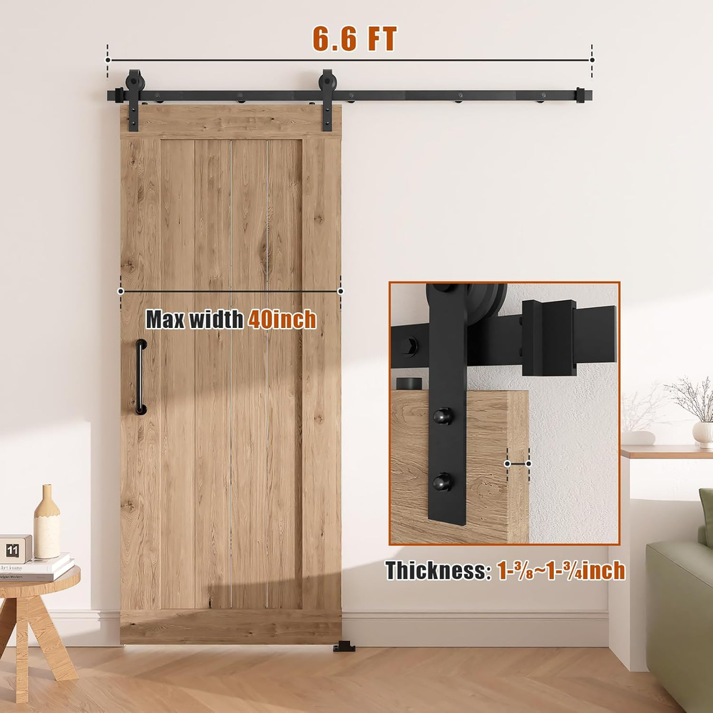 6.6FT Sliding Barn Door Hardware Kit with Upgraded Screw Fixation Modular Track and Heavy Duty Rollers