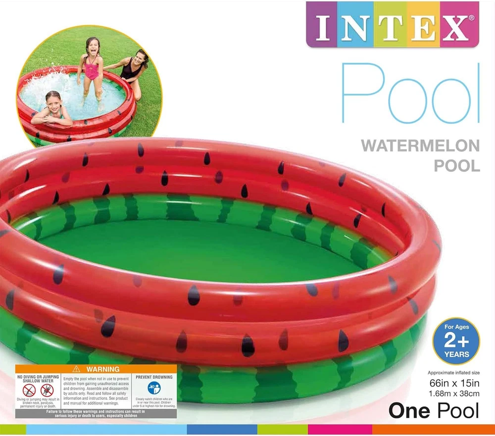 66-Inch Round Inflatable Outdoor Kids Swimming and Wading Watermelon Pool for Ages 2 and Up INFLATABLE KIDDIE POOL: Inflatable outdoor watermelon kids swimming pool measures 66" x 15" when properly inflated DURABLE DESIGN: Designed with 9-gauge rings, a 7-gauge floor, and colorful watermelon print with 3 rings LARGE CAPACITY: Features a capacity of 11.5 inches of wall height and can hold 154 gallons of water TODDLER APPROVED: Recommended for children ages 2 and up PERFECT FOR SUMMER: Great way to beat the heat and enjoy the sunshine during the spring and summer months Product Description Item model number - 58448EP Item Weight 4.5 pounds Style Play Center Only Capacity 154 Gallons Assembly Required No Color Red Special Feature Inflatable, Portable, Lightweight, Foldable, Drain Hole Material Vinyl Occupancy 5 Global Trade Identification Number 16941057413102 Shape Round Manufacturer recommended age 24 months - 7 years Frame Material Plastic Maximum Weight Recommendation 120 Pounds Age Range (Description) 2+ Included Components - 58448EP Target Audience Unisex-Kids Product Dimensions 66"L x 66"W x 15"H 66.0 "h x 66.0 "h x 15.0 "h. Weight: 120.0 lb Shipping from the USA All of our products are shipped from the USA, ensuring quick delivery to your destination. Payment We offer the following payment methods: PayPal, credit card, bank transfer, and eBay's secure payment system. Free Shipping & Free Returns Shipping within the USA is FREE. Additionally, any return is absolutely free for you. Risk-Free Purchase You have the option to return an item within 30 days without any justification. We cover the return shipping costs! Fast Shipping We ship immediately upon receipt of payment. Generally, the package is delivered within 2-3 days in the USA. If it takes longer, we will contact you. Quality and Costs Made in Europe, USA, China No customs fees or additional charges Total satisfaction guarantee Invoice with declared VAT available upon request in .pdf format Feedback Your feedback is very important to us. After you pay for your purchase, you will automatically receive positive feedback from us.