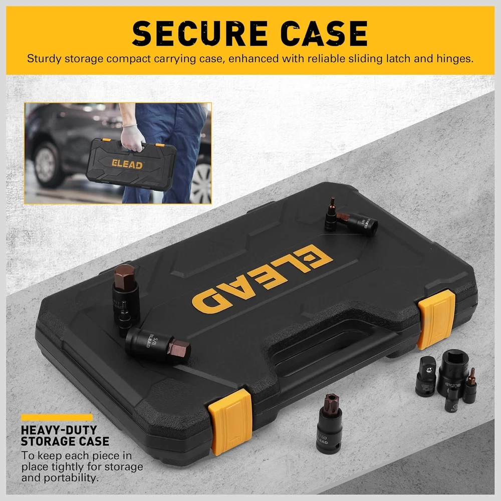 Store New Arrivals Add to Favorite View Feedback Contact 66-Piece Torx Bit & Hex Bit Socket Set: Premium CR-V & S2 Alloy Steel, Star Tamper Proof T8-T70 & E-Torx E4-E24, High Torque Laser Marked for Automotive Mechanic Description Item model number E70052 Item Package Quantity 1 Batteries Required? No Finish Polished Pattern 66-Piece Torx Bit & Hex Bit Socket Set Brand ELEAD Material S2 Steel Compatible Fastener Range Torx (T6-T70), E-Torx (E4-E24), and hex (metric and SAE sizes) fasteners Drive System Torx Item Weight 8.23 pounds Manufacturer ELEAD Pattern Name 66-Piece Torx Bit & Hex Bit Socket Set Batteries Included? No Number of Pieces 66 Finish Type Polished Package Dimensions 15.35 x 9.41 x 2.32 inches Size Full Size PREMIUM QUALITY - Crafted from heat-treated CR-V and S2 alloy steel, our 66-piece Torx bit socket set ensures durability and corrosion resistance, ideal for any automotive mechanic or DIY enthusiast. COMPLETE KIT - This comprehensive set includes T6-T70 star bits, E4-E24 E-Torx, and both metric and SAE hex socket bits, providing the perfect tools for any task, whether using a driver, wrench, or ratchet. EASY IDENTIFICATION - High-contrast laser markings on each socket make size identification quick and accurate, streamlining your workflow and eliminating guesswork in finding the right tool. ORGANIZED STORAGE - The compact and sturdy case keeps all 66 pieces well-organized and easy to carry, ensuring that your tools are readily accessible wherever you need them. VERSATILE COMPATIBILITY - Perfect for use with manual torque tools, our Torx/Star bit set includes all necessary sizes for bicycles, cars, appliances, lawn equipment, machinery, and any other tasks. Product Description Our 66-piece Torx bit socket set, made from heat-treated CR-V and S2 alloy steel, offers superior durability and corrosion resistance. ABOUT US We offer the best prices around on high quality products. Our E-store includes media such as books, movies, music and games while offering electronics, toys, sporting apparel, clothing, tools, general home, garden items and more. SHIPPING We are always working hard to ensure your package arrives as soon as possible. Please understand that some factors like weather, high postal traffic, and the performance of shipping companies are outside of our control. We offer free shipping to the lower 48 states and ship within 2 business days of payment, usually sooner. We do not accept P.O. Boxes. Please provide a physical address. RETURNS We offer a 30-Day Return Policy on items which you are not completely satisfied with. You have the option for a full-refund or an exchange of the item. No returns are available on items shipped outside of the USA. PAYMENT We accept PayPal. CONTACT US This page content is yet to come Please ad us to your favorite seller and visit again later Thank You CUSTOMER SATISFACTION We try our very best to make sure every customer is completely satisfied. If there's a problem, message us! We're happy to help.