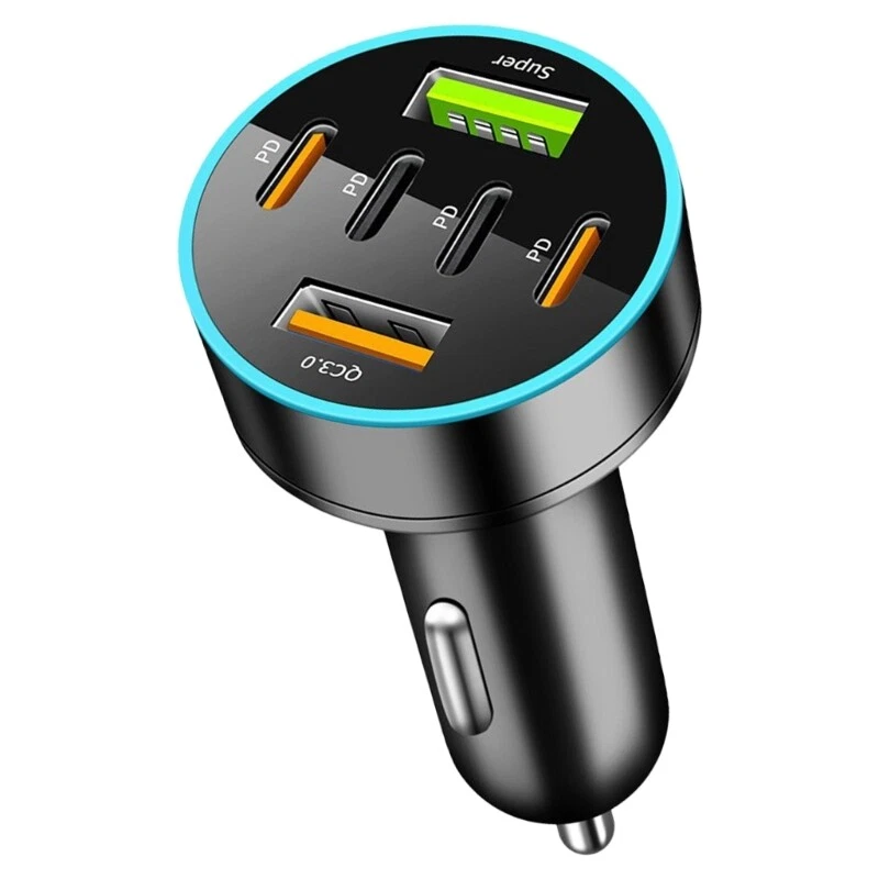 Features: Super+Type C+USB multiple port car with or without digital display various option, to meet different needs. Newly 5/6/8 interfaces with sufficient output, safe and environmentally friendly. Multiple port, USB-A+TYPE-C+Super interfaces working simultaneously, can multiple devices simultaneously. Build in intelligent chip, multiple protections, better protect your devices. Suitable for various digital products such as phones, tablets, laptops, MP4 players, cameras. Specifications: Material: Plastic+Metal Color: black Type: 4A1C with side digital display, 4A1C with middle digital display, 4A2C with digital display, 4A2C no display, 2A4C no display, 4A4C no display(optional) Size: about 8.9x2.5x4.3cm/3.5x0.98x1.69inch Power: 66W Input: DC12V-24V, applicable for almost all vehicle models Output:: USB1: QC3.0 DC3.6-6.5V-3A 6.5-9V-2A 9-12V-1.5A USB2: 5V3.1A Package Includes: 1pc Multi Port Car note: Please allow 1-2cm errors due to manual measurement. Please allow for slight color differences due to different display resolution.