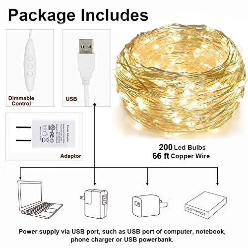 Return Policy Fast Delivery Trusted seller 200 LED 66ft Fairy Copper String Lights USB and Adapter Powered with 8 Modes & Timer, Home Lighting Decor for Indoor Outdoor Bedroom (Silver Wire) Product Description Decorative String Lights: 66ft length 200 LED warm white fairy string lights are made from high quality silver wire. Good ideal design for decorate indoor and outdoor. Add warm and charming atmosp to any space. 2 IN 1 POWER SUPPLY: These fairy string lights has USB port and power adapter. Please use USB port or adapter to provide power, then PRESS THE BUTTON of dimmable control to enjoy a fairy world. DIMMABLE CONTROL: Silver string lights designed with dimmable controller to adjust the brightness to satisfied different requirement. WIDELY APPLICATION: The 100% silver wire string lights are bendable. It is easily create the shape you want. These can make amazing decorations for wedding party, Christmas holiday, thanksgiving day or any festival. Shipping Returns Payment Shipping Shipping is FREE to all addresses other than APO/PO boxes in the lower 48 states. All our stock ships from US-based warehouses. Shipped via USPS or UPS (depending on location and package weight) Unless stated otherwise, all orders will ship within 24-72 hours of your payment being processed. Check our feedback to see the great reviews of FAST shipping we offer. Returns Seller does not accept returns Payment We currently accept payment via eBay managed payments only. Once payment is cleared, we will dispatch your shipment within 1-3 business days. Please refer to the "Shipping" tab for more information regarding shipping speed to your destination.