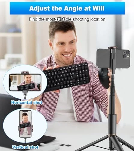 Return Policy Fast Delivery Trusted seller 67" Cell Phone Selfie Stick Tripod,Smartphone Tripod Stand All-in-1 with Integrated Wireless Remote,Portable,Lightweight,Extendable Phone Tripod for iPhone/Android(Black) Product Description All in 1 Travel Tripod: The phone holder is a perfect combination of a selfie stick and a tripod. It has a fully telescopic handle and built-in foldable legs. When press the button at the bottom of the phone tripod, the three legs will open and can be used as a stand tripod. After adjusting the height of the telescopic pole, it can double as a desktop tripod. The multi-function tripod for phone is very suitable for taking pictures,Face time etc 67" Telescopic Pole: The telescopic Pole is made of aluminum alloy,so the phone tripod stand is not only lightweight but also corrosion-resistant, sturdy. The adjustable height of the cell phone tripod is 11.4~67 inches (completely folded 11.4 inches, adjusted in 10 stections), allowing you to shoot various heights that other phone tripod mount cannot shoot, capturing a wider field of view, and satisfying your needs in different occasions Reinforced Tripod Base: Very easy to use, just press the button on the bottom to unlock three legs of the tripod for iphone. The base of the newly upgraded cellphone tripod adopts a reinforced design with a silicone non-slip foot pad, which is more stable after unfolding and is not easy to shake. Note: In the tripod mode, the phone must be placed in the center of the sliding track, which is consistent with the center of gravity of the tripod to avoid tipping Chargeable Remote Shutter: The tripod for phone has a built-in rechargeable wireless remote control,supports shooting within 10m,is compatible with iphone/Android,quickly realizes pairing, and the operation is very simple.When the remote control is not in use,it can be put into the special remote control slot on the handle of the selfie stick for iphone to prevent it from being lost.The mount range of the tripod phone holder is about 2.28-3.46inch in size, which is suitable for 4-7'' phones Portable & Rotation: Having a compact design and can be carried around without taking up space. The phone tripod with remote can rotate the phone screen horizontally and vertically , and the angle can be easily adjusted. Aluminum alloy phone clip can support up and down 180 ° rotation to go overhead shooting, and left and right rotation to adjust the angle.In the selfie stick with remote mode, you can also slide the phone mount left and right, which is very flexible and convenient. Shipping Returns Payment Shipping Shipping is FREE to all addresses other than APO/PO boxes in the lower 48 states. All our stock ships from US-based warehouses. Shipped via USPS or UPS (depending on location and package weight) Unless stated otherwise, all orders will ship within 24-72 hours of your payment being processed. Check our feedback to see the great reviews of FAST shipping we offer. Returns Seller does not accept returns Payment We currently accept payment via eBay managed payments only. Once payment is cleared, we will dispatch your shipment within 1-3 business days. Please refer to the "Shipping" tab for more information regarding shipping speed to your destination.