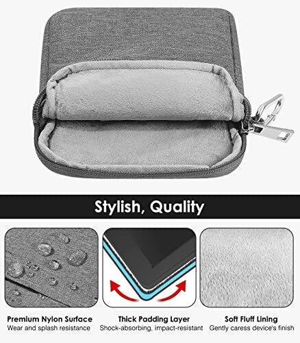 Return Policy Fast Delivery Trusted seller 6-7" Kindle Sleeve Bag,Protective Nylon Cover Compatible with 7" Kindle Colorsoft 2024,Kindle Paperwhite 2021, All-New Kindle/Kids (11th Generation) 2022, Kindle Oasis E-Reader, Dark Gray Product Description [Compatible Device] – The nylon sleeve fits for 6-7 inch kindle, perfectly compatible with 7" Kindle Colorsoft Signature Edition 2024, 6.8" Kindle Paperwhite (11th Generation) 2021, Kindle Paperwhite Signature Edition 2021, Kindle Paperwhite Kids 2021; 6" Kindle Paperwhite (10th Generation) 2018, Kindle (11th Generation) 2022, Kindle Kids (11th Generation) 2022, Kindle 4/5/7/8/10th Generation, Kindle Paperwhite 5/6/7th Generation; 7" Fire 7/Fire 7 Kids (12th Generation) 2022. [Protective Material] - The nylon exterior is water-resistant, protecting what's inside from those unexpected spills. Flannel lining interior absorbs shock and bumps, provides the most comprehensive protection for your devices. [Smooth Zipper] - The sealed zipper closure glides smoothly and adds considered detail for extra protection. [Double Pockets] - It features dual pockets, helps you organize your device on the journey while small items are stashed in the front pocket. Convenient for your mobile life. [Portable Bag]- External dimension is 8.27*5.9*0.79 inch (21*15*2cm), Internal dimension is 7.48*5.51*0.59 inch (19*14*1.5cm). Slim, portable and lightweight to take alone, or slide it into your briefcase, backpack or any other bag, perfect for business or travel. Shipping Returns Payment Shipping Shipping is FREE to all addresses other than APO/PO boxes in the lower 48 states. All our stock ships from US-based warehouses. Shipped via USPS or UPS (depending on location and package weight) Unless stated otherwise, all orders will ship within 24-72 hours of your payment being processed. Check our feedback to see the great reviews of FAST shipping we offer. Returns Seller does not accept returns Payment We currently accept payment via eBay managed payments only. Once payment is cleared, we will dispatch your shipment within 1-3 business days. Please refer to the "Shipping" tab for more information regarding shipping speed to your destination.