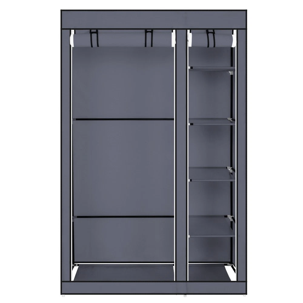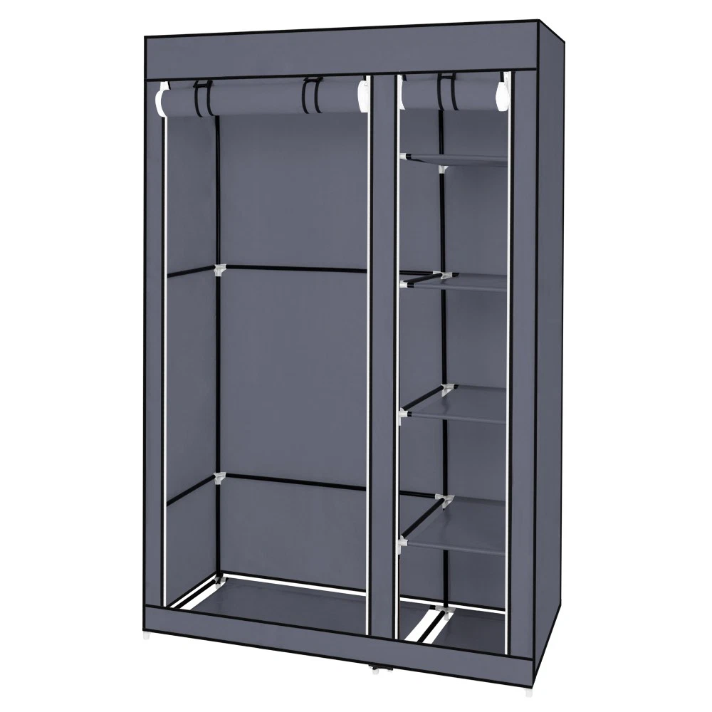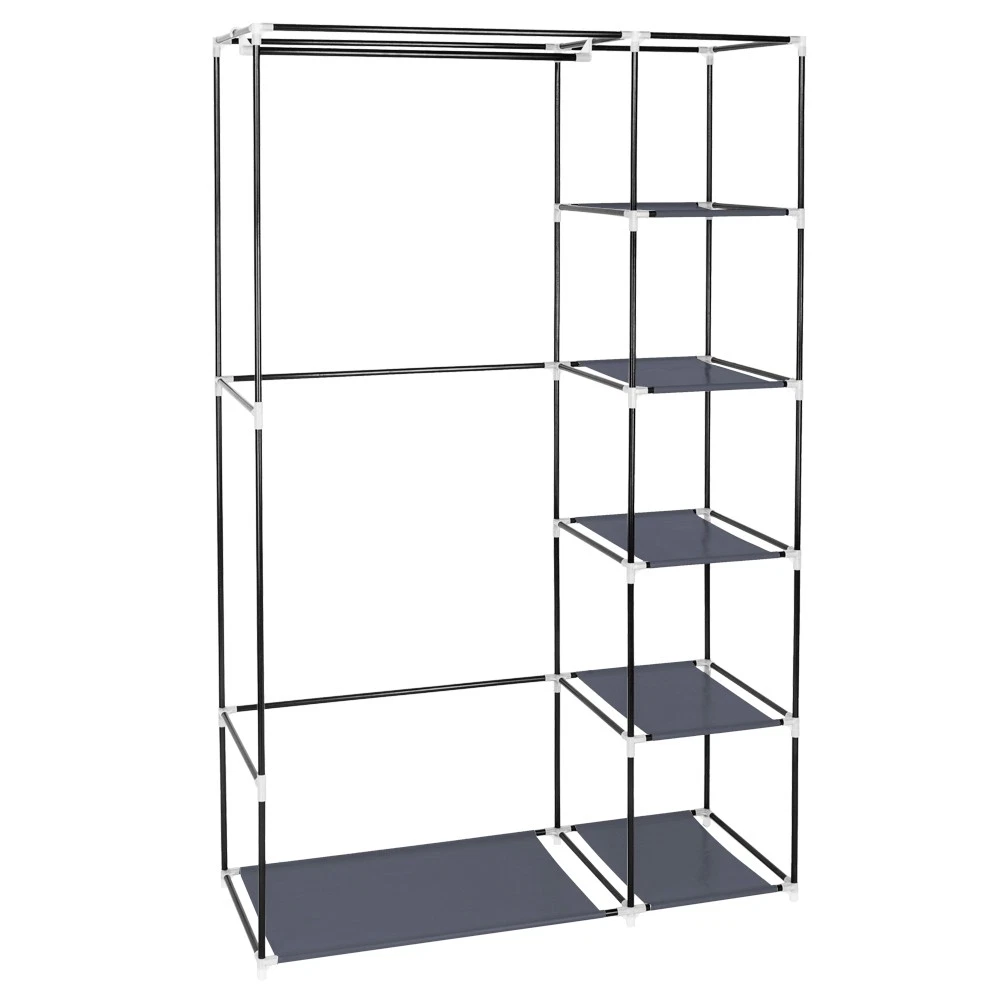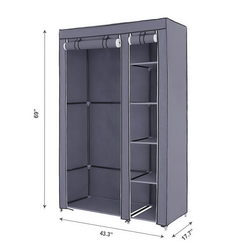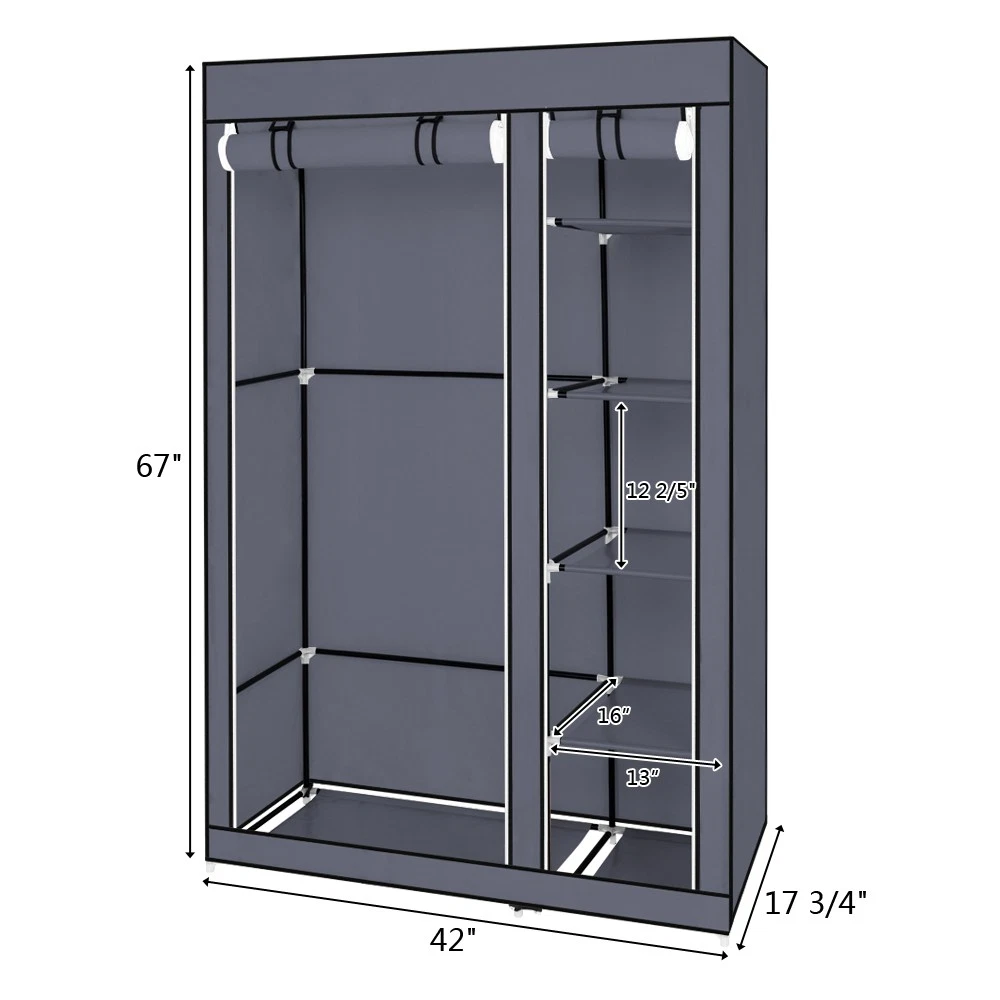 Introductions: Our 67" Portable Closet Storage Organizer Clothes Wardrobe is Made from Selected Non-Woven Fabric Cover, High Quality Steel Tube and PP Plastic Connectors, Which Will Durable and Meet Your Long Term Storage Needs. The Size for The Clothes Wardrobe Makes it Suitable for Organizing Your Small Rooms and Walk-In Closet. Movable Improved Clothes Hanging Rod and 6 Storage Shelves Offers You Enough Space Both for Your Longer Outfits and Folded Clothes. Zippered Dustproof Cover Offered to Keep Your Item Away from Dust and Water-Proof Fabric Tiers are Easy to Clean. It Will Be Great Convenient and Functional. Do Not Hesitate to Buy One! Features: 1. STURDY & DURABLE CONSTRUCTION: Made from Selected Non-woven Fabric Cover, Water-Proof Fabric Tiers, High Quality Steel Tube and PP Plastic Connectors, This Portable Storage Closet Will Meet Your Long Term Storage Needs. 2. SPACE SAVING ORGANIZER:Great Size of 42" x 17 3/4” x 67”(106x44x170cm), Which Makes it Suitable for Organizing Your Small Rooms and Walk-in Closet. 3. SPACIOUS STORAGE CLOSET: Movable Clothes Hanging Rod and 6 Storage Shelves Offers You Enough Space both for Your Longer Outfits and Folded Clothes. 4. DUSTPROOF COVER & WATER-PROOF TIER: Zippered Dustproof Cover Offered to Keep Your Item away from Dust and Water-proof Fabric Tiers are Easy to Clean. 5. CONVENIENT TO USE & ASSEMBLE: This Amazing Closet Makes Your Clothes or Daily Accessories Easy to Access; Installation is just Easy, no Tool Required. Note: 1.When receiving the goods, please confirm the product according to the listing of instructions. Once you find Less pieces, please provide relevant pictures to contact us. We will deal it in the time. 2.Please install goods with the instruction manual. 3.It is recommended that the installation should not be too tight to adjust easily. After the structure is installed, firm the interface for more stability. Specifications: 1. Item Name: 67" Portable Clothes Closet Home Wardrobe Clothes Storage Organizer with Shelves 2. Material of the Home Wardrobe: Non-Woven Fabric Cover, Steel Tube And Plastic Connection 3. Dimension of Home Wardrobe: 42" x 17 3/4" x 67"(106x44x170cm) 4. Color of Home Wardrobe: Gray Package Includes: 1 x Portable Closet 1 x Instruction Notes: 1. Please make sure all poles reach the bottoms of plastic connector holes. 2. Please be careful during assembly and dis-assembly.