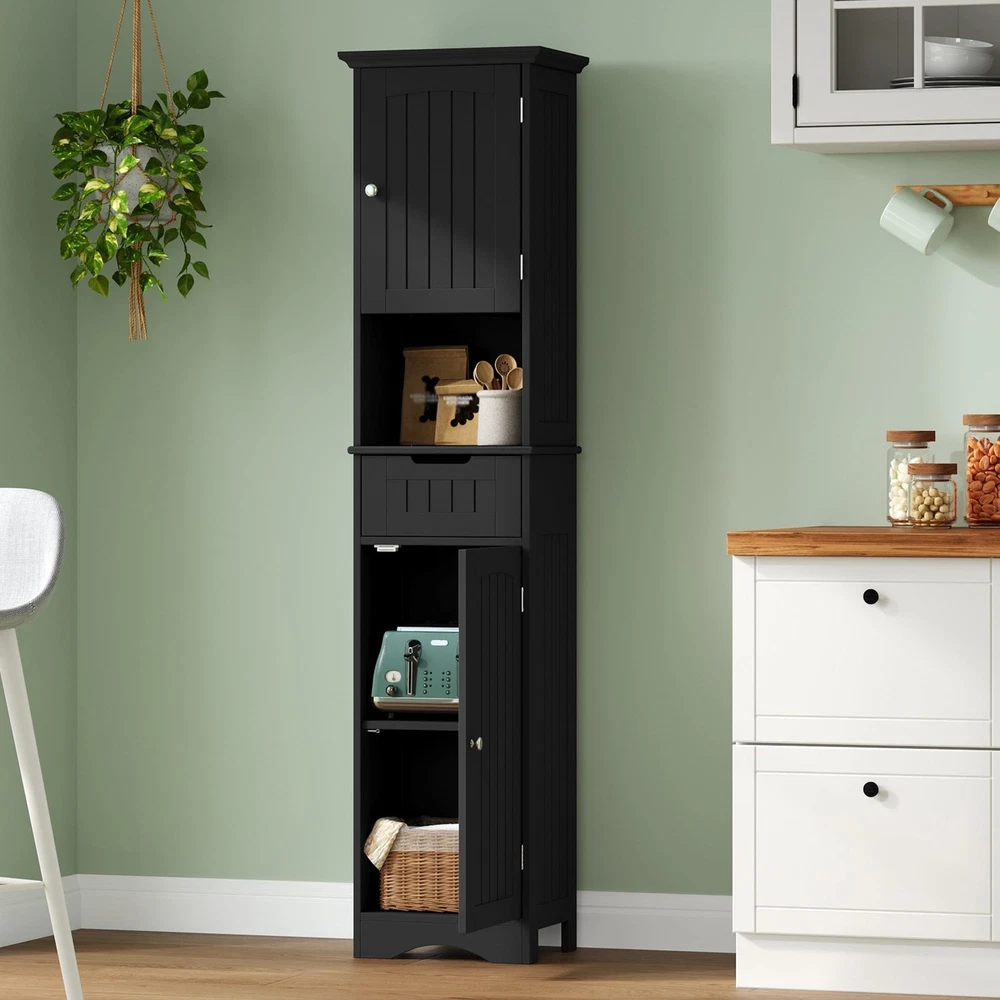 71 Inch Tall Slim Freestanding Bathroom Cabinet with Drawer and Door Storage