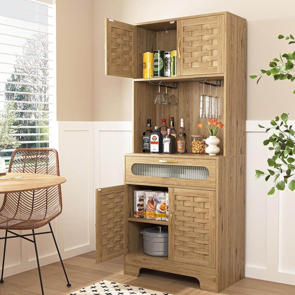 67-Inch Tall Kitchen Pantry Storage Cabinet with 4 Woven MDF Doors