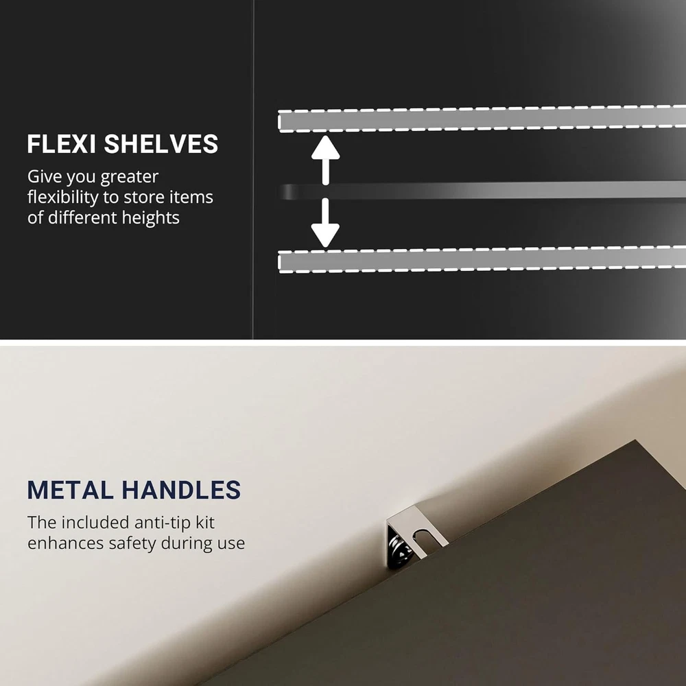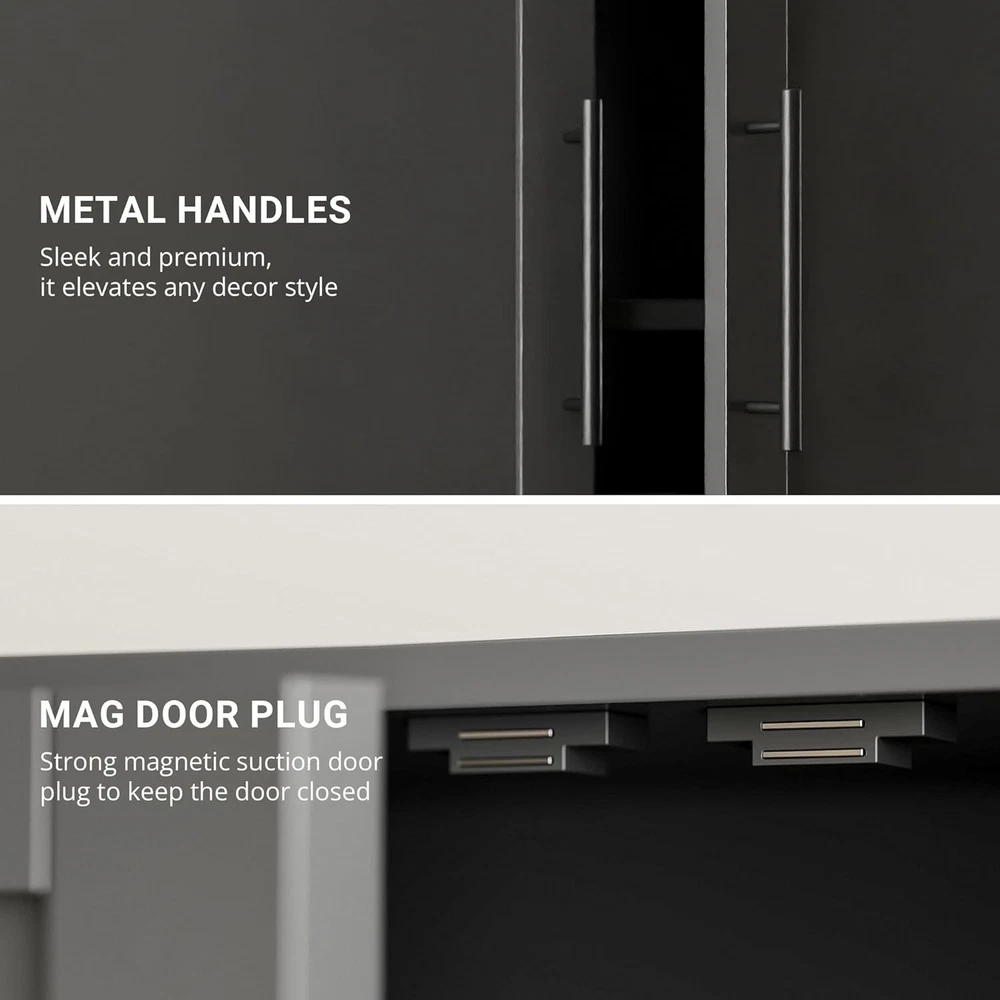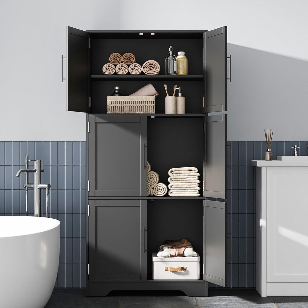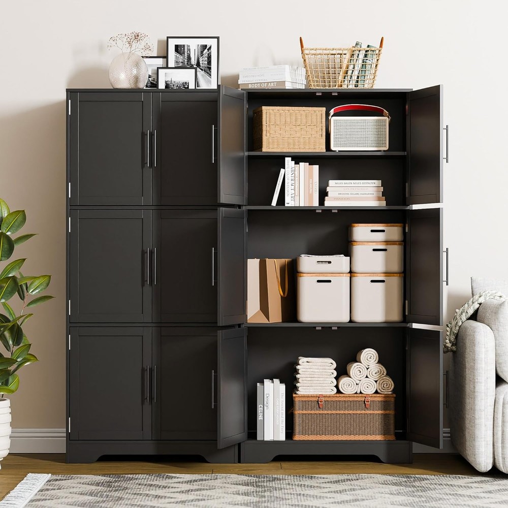 Product Description About this item Sturdy & Durable Construction: The kitchen pantry cabinet is made of premium engineered wood with a 44 lbs weight capacity per shelf. Whether storing heavy cookware or daily essentials, this cabinet with doors and shelves ensures stability and durability for years. Adjustable & Functional Shelving: Measuring 15.8"D x 31.5"W x 68.5"H, this hutch cabinet features 3 shelves, one of which is adjustable, allowing you to customize your storage space. Easily adjust the removable shelf to fit items of different sizes, making it a perfect cabinet organizer for your home. Modern Cabinet for Every Room: Upgrade your home organization with this tall kitchen pantry cabinet! It provides ample space to store kitchen essentials, dinnerware, or pantry items. Whether in the kitchen, living room, bedroom, or bathroom, this pantry cabinet meets all your storage needs. Anti-Tip Device for Safety: Our pantry storage cabinet comes with an anti-tip kit that secures it to the wall, preventing accidental tipping. The six metal handles provide a comfortable grip, making it easy to access your stored items. Easy to Assemble: Our linen cupboard includes detailed instructions and numbered parts for hassle-free assembly. If you encounter any issues, we will provide you with a satisfactory solution. Easier Living, Better Life Previous page Next page Previous page Next page