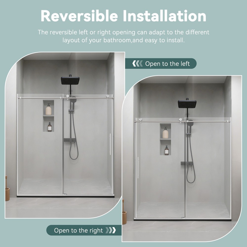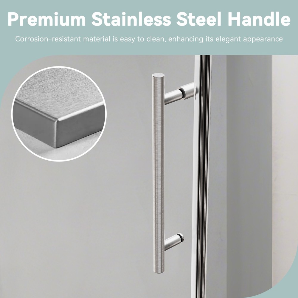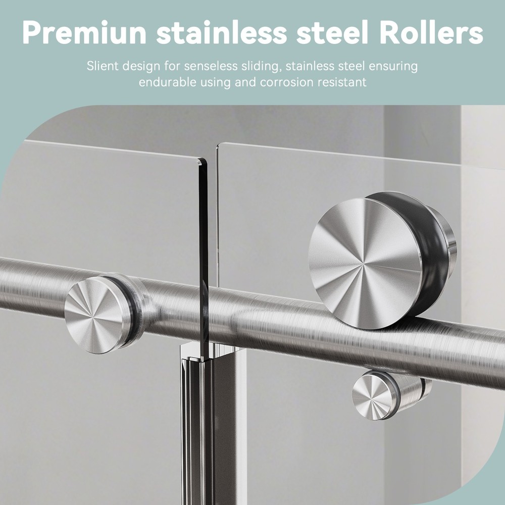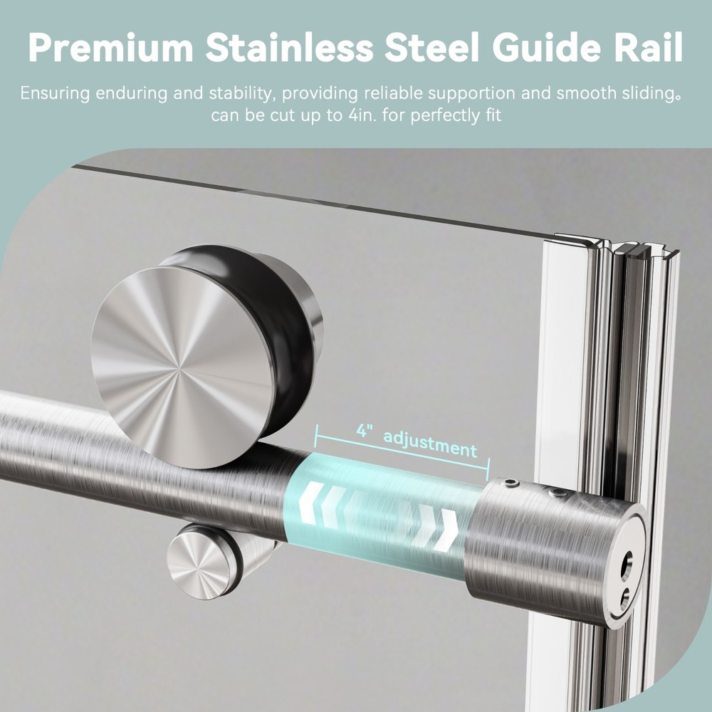 Product Information Item Code : P299218 Product Type : Single Box Product Product Name : 68-72" W * 76" H Stainless Steel Round Tube Frameless Single Sliding Shower Door, 3/8"-thick (10mm) SGCC Clear Tempered Glass Door, Reversible Installation, Brushed Nickel Place of Origin : China Main Color : Brushed Nickel Main Material : Glass+Metal Height from threshold to the top of the shower door : 76in Min/Max width : 68-72in Walk-Through width : 29 3/8in-33 3/8in Depth measurement across flat still surface : 3 1/2in From the theshold to the bottom of top track: 72 5/8in Product Features S ingle bypass sliding : This frameless single sliding shower door can be adjusted to 68 and 72 in width by cutting, maximize your bathroom layout, the single-side sliding door panel designed for easy access while using minimal space for move unobstructedly. The door body is light and flexible which can be reversibly installed as left sliding door or right, depending on your preference, with a long mechanical life, and provides smooth opening and closing. Premiun stainless steel Rollers : Slient design for senseless sliding, stainless steel ensuring endurable using and corrosion resistant , Anti-jump nail effectively prevent glass panels from disengaging from the track, enhanced safety and durability. S afety tempered glass : The sliding shower glass door is constructed with 3/8"(10mm) thick ANSI-certified tempered glass with R3 safe corner, which improves the impact resistance and safety of the glass and is not prone to breakage, ensuring durability and safety. This transparent tempered glass panel is easy to clean and maintain, providing convenience for maintaining a clean and tidy appearance. Rest assured with this reliable choice of tempered glass for a worry-free bathroom experience. Humanization design : The shower door handle features a round tube design, enabling convenient pushing/pulling to open or close. The moderate size ensures a comfortable grip. The handle is placed vertically, which is more labor-saving to push and pull. Excellent waterproof and denoise performance : Our shower door features a magnetic water-resistant seal strip along the side opening, which reduces operational noise during use while delivering enhanced sealing performance and a smoother, quieter closing experience.The bottom is equipped with a high-quality water-guard aluminum strip. This design provides superior waterproofing that effectively separates wet and dry zones in your bathroom, maintaining a dry and clean environment. ----------------------------------------------- Do Read before You Buy : Refund& Return -Returns are accepted within 30 days.Any problems, please feel free to contact us by ebay message first, let's figure problems out together,your email will be replied within 1 business day. -We provide free Return service, but return shipping cost will be on you in below circumstances : 1. Changed your mind or do not need/want the item or other personal reasons. 2.Items may slightly differ from photos in terms of color and lighting differences & on different monitor’s display. 3. Manual measurement has been used, there may be some reasonable error range. 4. Choosing the wrong size , type or color causes unfitting problem. Or didn't read specifications and descriptions, causes real item is different with own imagination or expectation. 5. Buyer did not know how to install or Use the item 6.Find a better price elsewhere. -Returns for free / free Replacement / free parts only happens in condition of product issue/ arriving broken/wrong item or missing parts. -For the quality issue ,defective photos must be attached in mails / when Return. Shippment Warning : if we shiped out the item and buyer wants to cancel the order or change address,buyer need to pay possible shipping cost. Please cancel the order or Change address before we ship out. After sals Service -we are responsible for accessories missed ( please contact us first,and attach photo of what you've received) -we are responsible for all losses caused by product quality issues ( Resend or Refund, please also attach defective photos) Feedback We do appreciate having such opportunity to solve the problem before leaving feedbacks. Cause negative feedback solves NO problem, but we DO ! Hope you have a good time shopping in our store! We are honored !