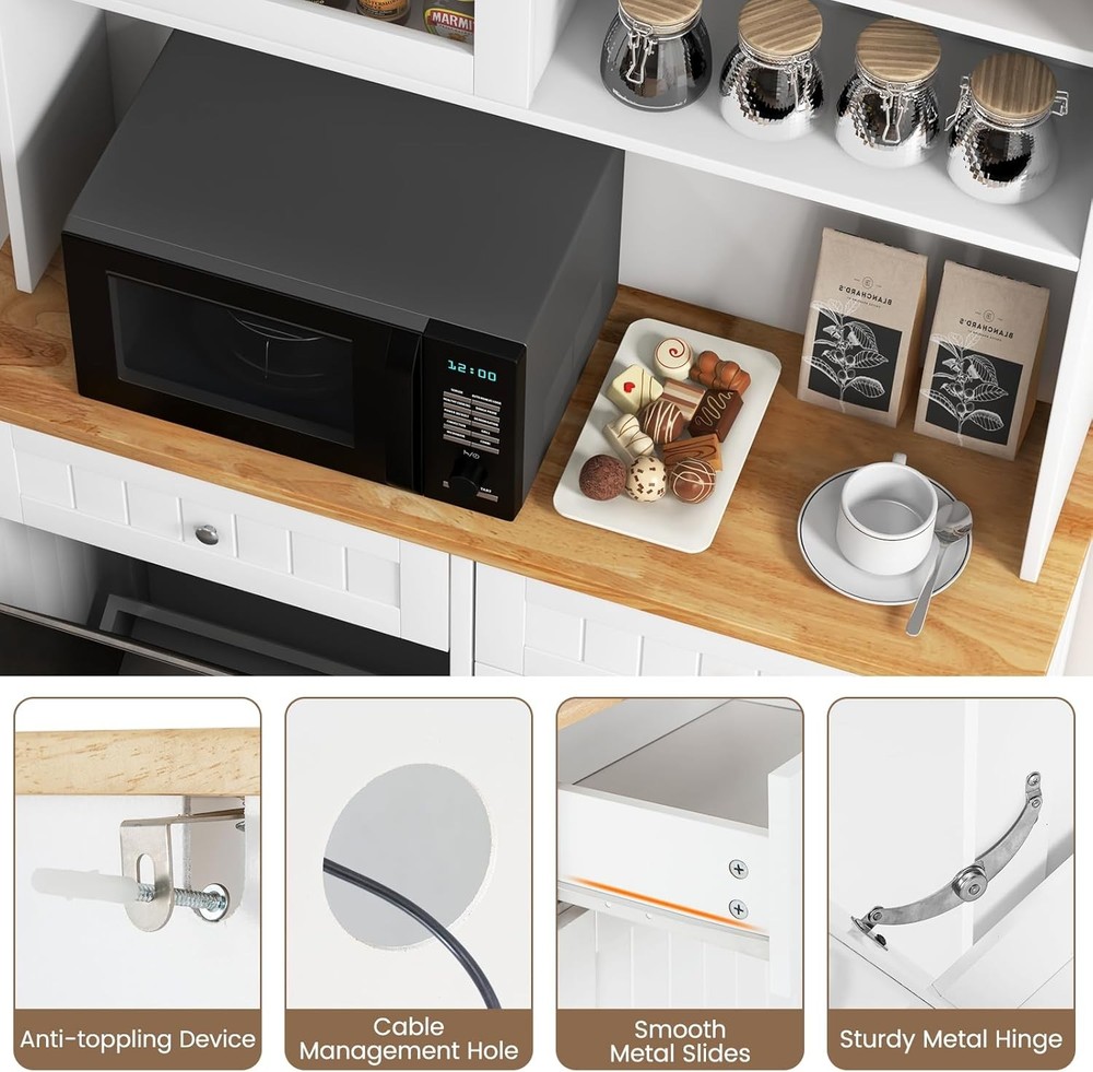 This cabinet is a total game-changer for my kitchen! The storage options are incredible—I can finally organize everything neatly. The countertop is perfect for my coffee station, and I love having a dedicated spot for the microwave. It’s both stylish and super functional.