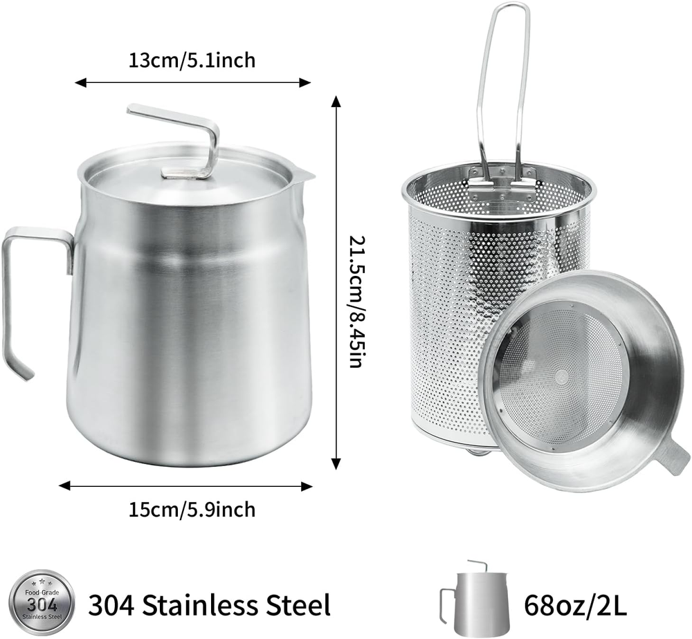 68Oz Stainless Steel Oil Filter Pot with Deep Fryer Basket - Kitchen Large Capac