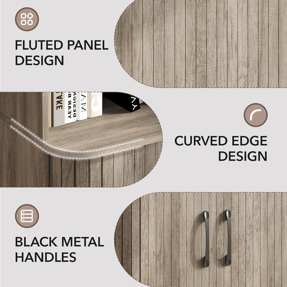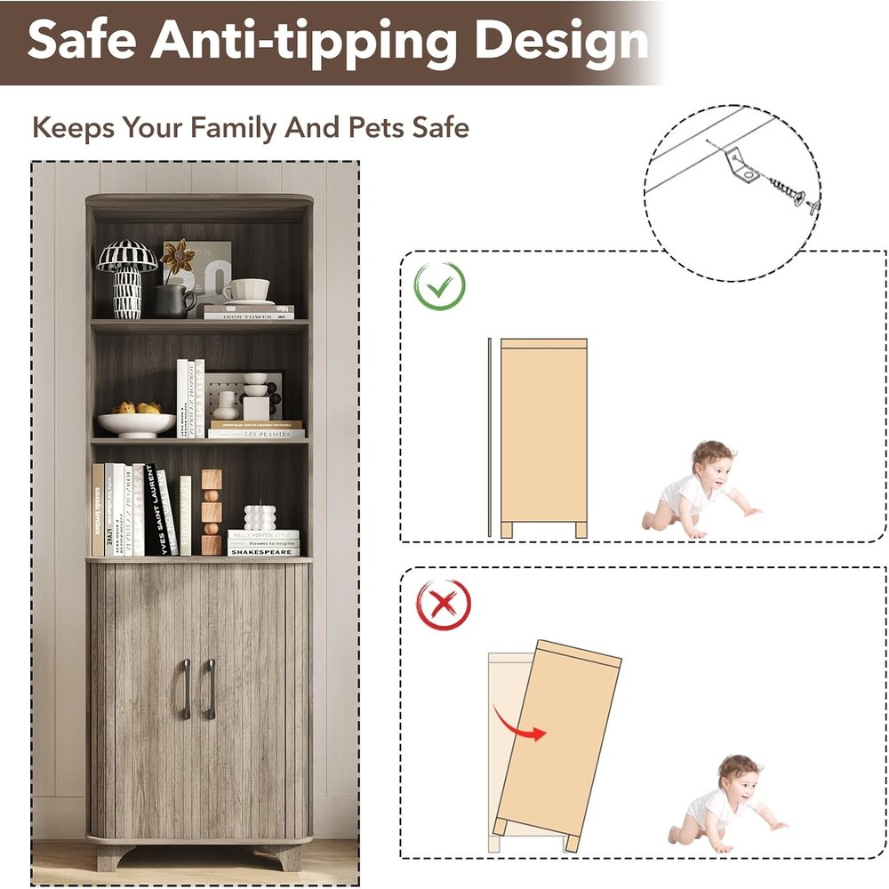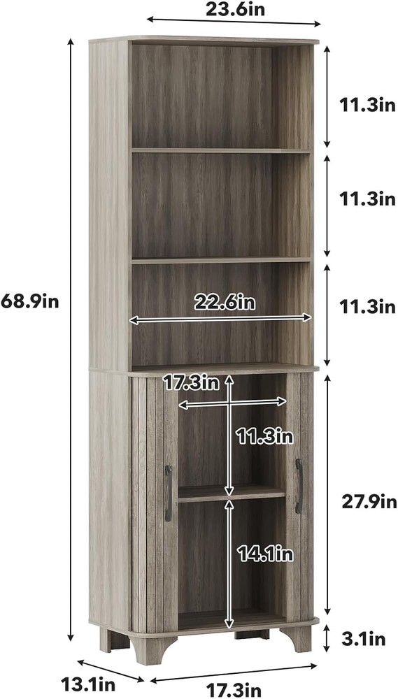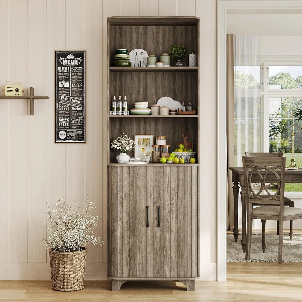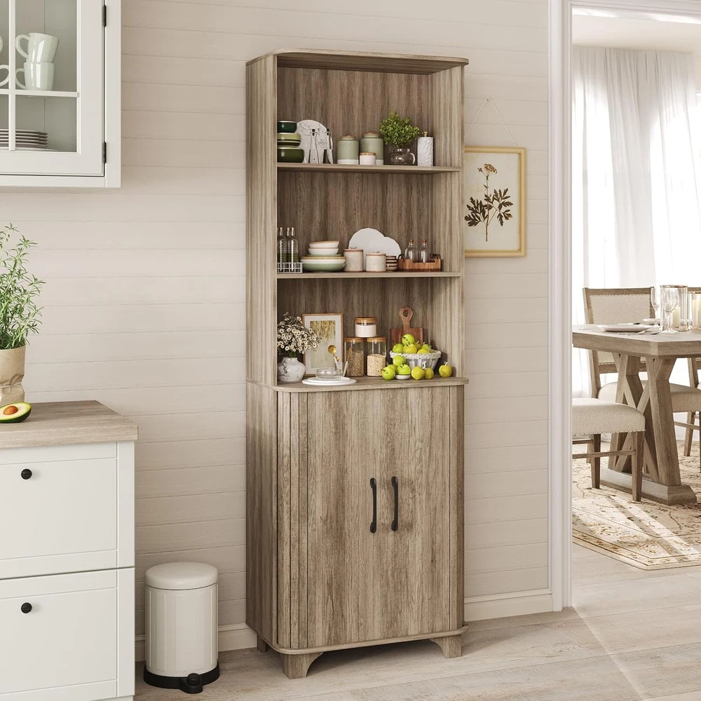 Kitchen Pantry Cabinet, 69” Tall Storage Cabinet with 2 Door and 3 Open Drawers, Kitchen Pantry Organizer with Adjustable Shelves, Wood Organizer for Living Room, Dining Room, Grey Product Description About this item VERSATILE STORAGE CABINET: The 69”H tall storage cabinet is perfect for your home, offering ample space and functionality. With its 2 doors and 3 open drawers, this cabinet with adjustable shelves improve the diversity of storage. The dimensions of cabinet is 17.32”L x 13.11”D x 68.9”H. LARGE CAPACITY: With 3 open drawers and adjustable shelves that can be stored at different heights, this fluted storage cabinet allow you to store the interior layout according to your specific needs, maximizing your storage potential. STURDY AND SAFE DESIGN: Designed with safety in mind, this tall kitchen pantry cabinet includes an anti-tipping feature that enhances stability, ensuring that your belongings are secure and protected. STYLISH DESIGN:The tall fluted pantry cabinet with drawers features a curved edge design to prevent injuries, making it an ideal choice for homes with children or pets, while the fluted design enhances its wooden texture and overall aesthetic appeal. MULTIFUNCTIONAL OPTION: This tall fluted pantry organizer can be adapted with different home styles, no need to worry about home matching problems. In addition to the living room, you can also use it in the dining room, kitchen, let it become your good helper for storage. showcases the product in use. The video guides you through product setup. The video compares multiple products. The video shows the product being unpacked. 69” Fluted Pantry Cabinet Merchant Video 69" Grey Tall Storage Cabinet For Various Room Previous page Living Room Kitchen Next page Quality and Details Curved Edge Design Adjustable Shelves Fluted Panel Design Black Metal Handles The Gray Collection Of Furniture Is Worth Having Previous page Next page Detailed Information Only Provides Better Choices