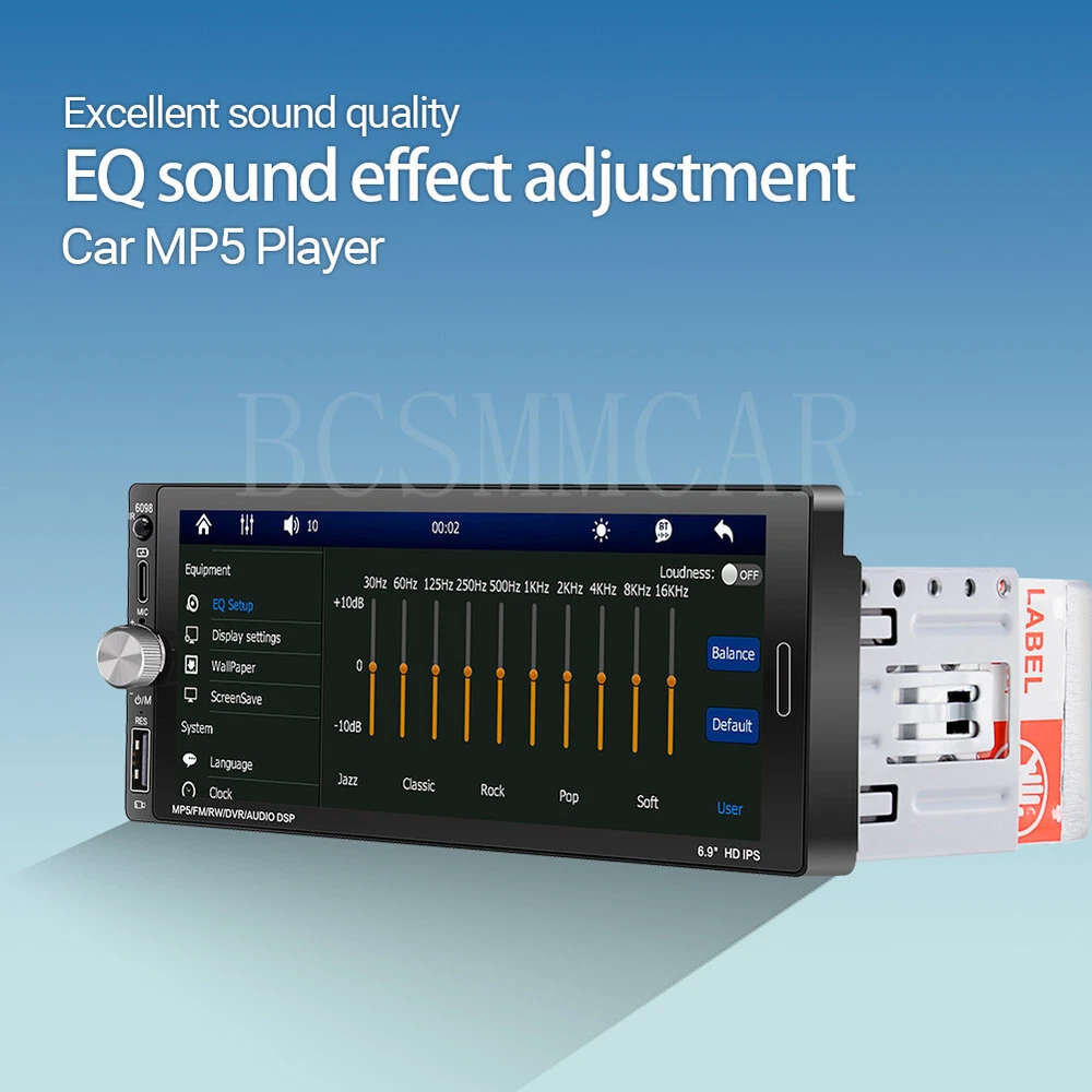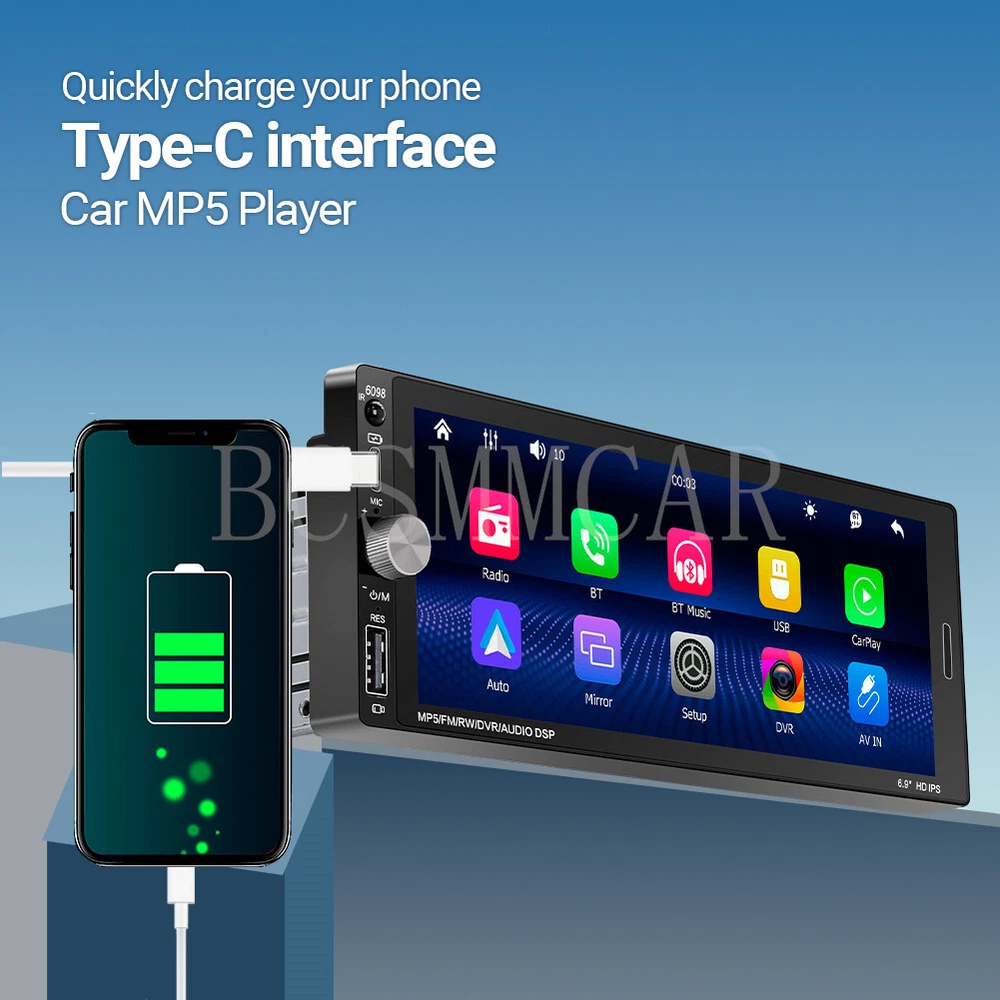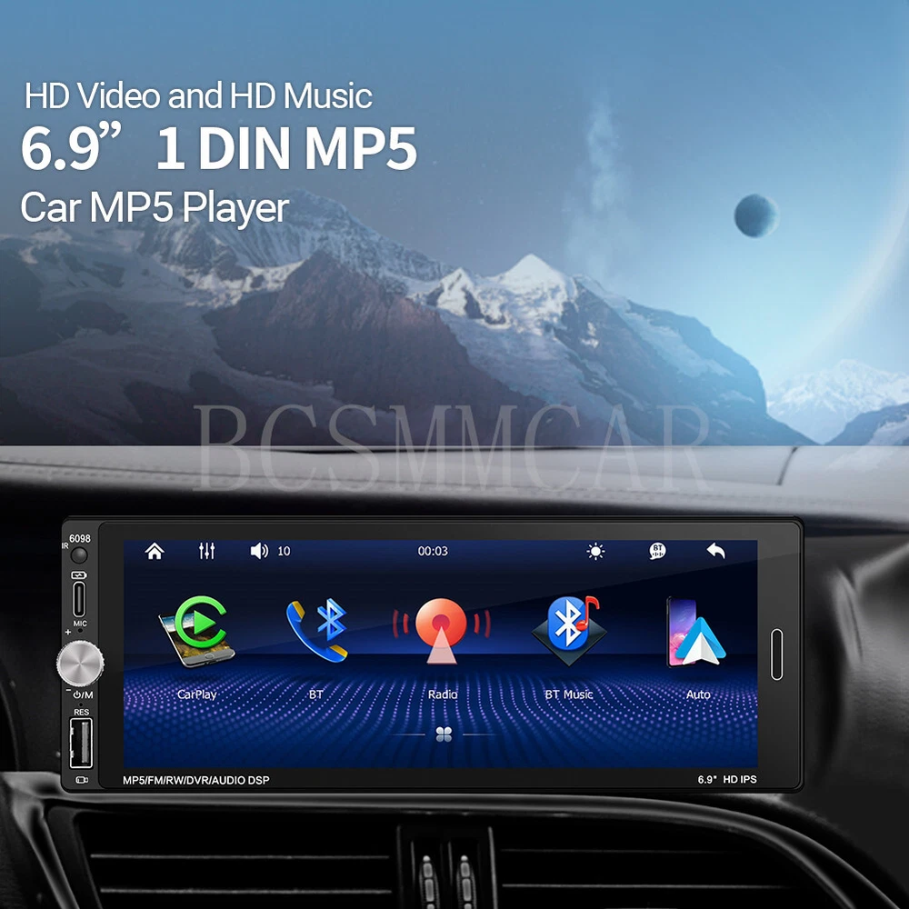 6.9in Stereo Car MP5 Player with BT, Mirror Link, Apple Carplay & Android Auto
