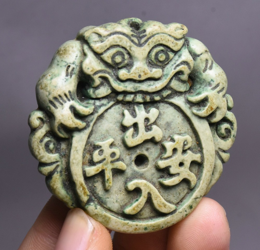 $ 15.848CM Hongshan Culture Ancient Jade Carved Beast Face Mask Amulet Pendant