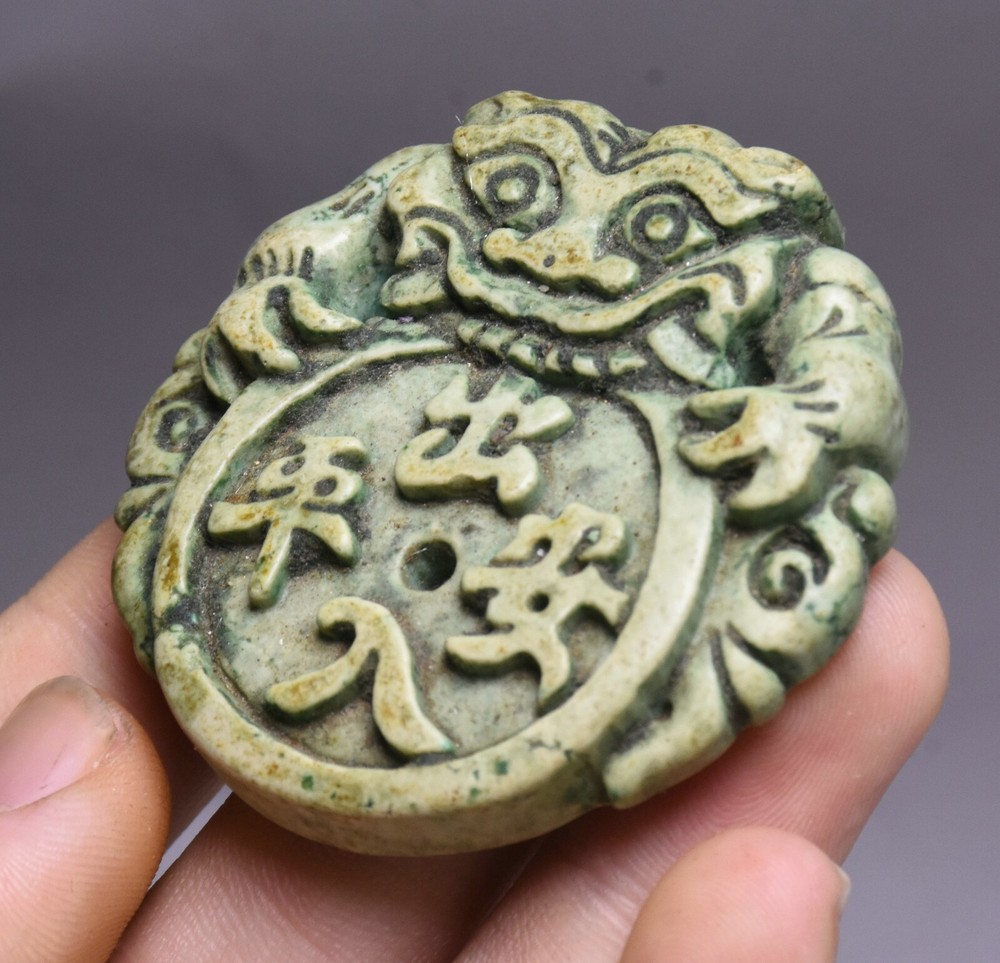 Material Hongshan Culture Green Jade Origin China Style Same as photos showing Size High 6.0 Long 6.0 Breadth 1.0 (cm) Condition Perfect Condition. Perfect, with no scratches, flaws or repairs. Weight 0.5 KG----included the weight of packing materials Shipping cost by China Post (10-20days) Us $0.00 (USA, CANADA, AUSTRALIA) US $0.00 (UK, EUROPE) US $0.00 (ASIA) As you can see the image, It is in good condition, and was created by skilled craftsmen in traditional style with fine handcrafts.This is a great piece of valuable collection, a valuable personal alter or a very good present. the handwork is very fine with incredible detailling. Don't miss out this chance to get it .Wish you good luck! 2020.10.23 6号