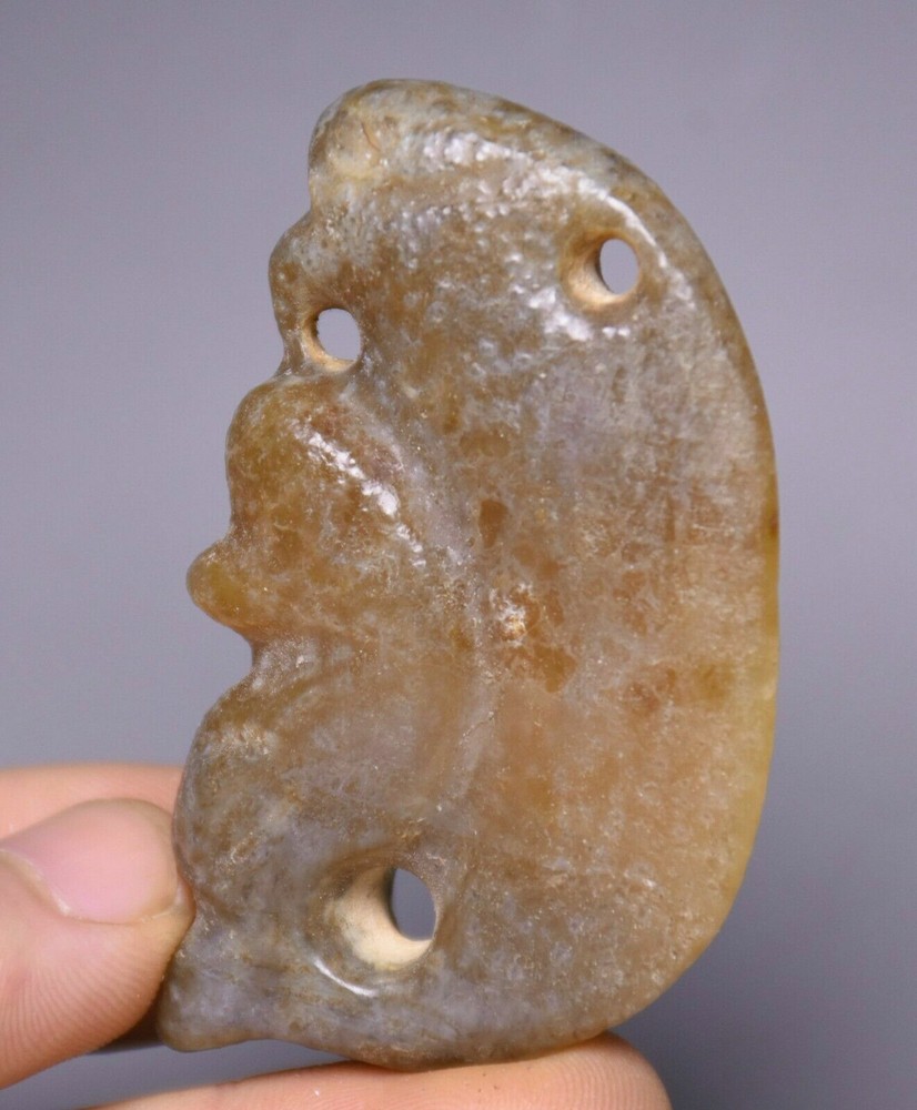 $ 18.4814cm China Hongshan Culture Old Jade Carving Sun God Helios Beast Head Statue