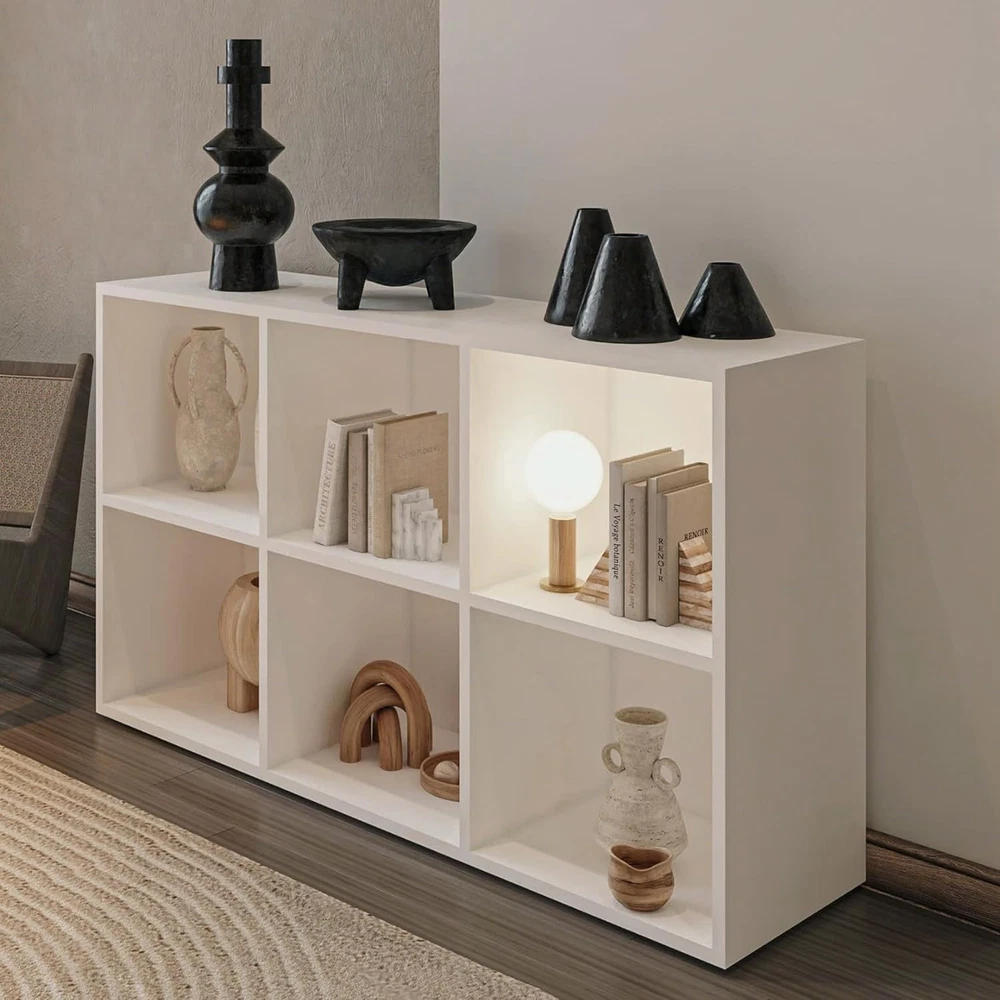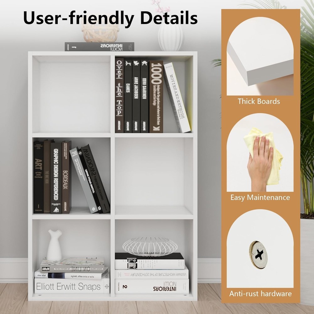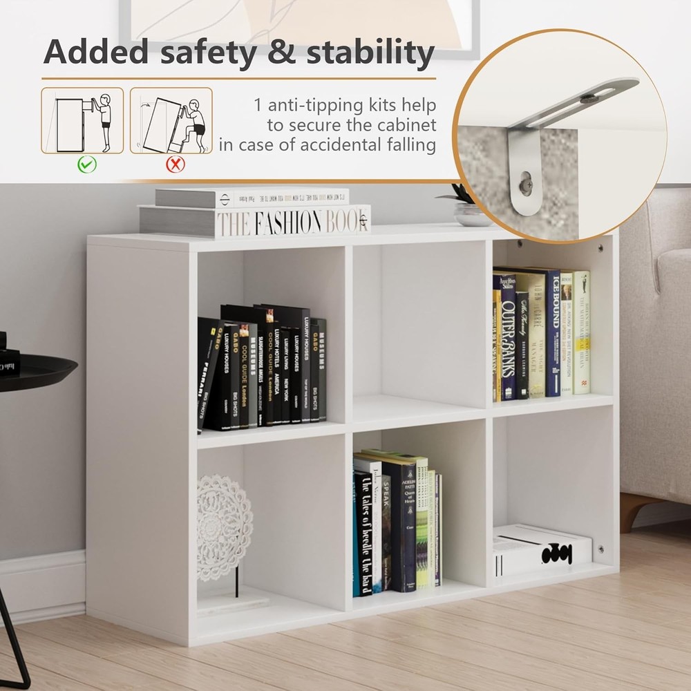 Product Description About this item • Multi-Functional White Cubby Shelf Minimalist finish blends into modern spaces as a bookshelf, TV stand, or display unit. Sturdy MDF + wood frame maintains integrity under decorative loads. • Tip-Resistant & Pet-Safe Cube Structure Engineered with reinforced base + balanced weight distribution for maximum stability on any surface. Prevents tipping even with active pets climbing, ideal for high-traffic homes with cats. • Multi-Purpose Cubby Space for Pets & Storage Freestanding 6-cube design (36"W x 24"H) fits under desks or in corners. Spacious open cubes transform into pet nooks – add cushions to create DIY cat beds or hideouts. • Customizable Wood Cube Storage Removable backboard & modular layout enable flexible configurations. Effortlessly pair with bins/baskets (sold separately) to create personalized cubbies storage organizer systems. • Quick-Assembly Storage Solution Tools-free assembly under 30 minutes with guided hardware. Lightweight yet durable construction allows seamless room-to-room adaptation as needs evolve. On Aug 14, 2025 at 21:27:21 PDT, seller added the following information: