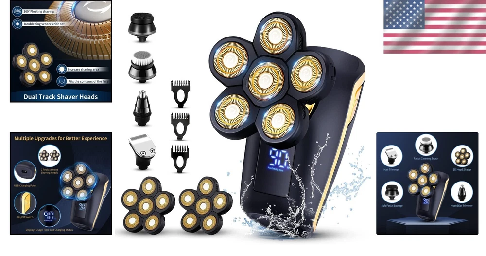 6D Floating Head Electric Shaver - Ergonomic Men's Grooming Kit with Attachments ‹ › ‹ › ‹ › ‹ › ‹ › ‹ › ‹ › ‹ › ‹ › 6D Floating Head Electric Shaver Ergonomic Men's Grooming Kit with Attachments Transform Your Grooming Routine Experience the ultimate in personal grooming with our state-of-the-art 7-in-1 Men's Grooming Kit. The 6D Razors offers unrivaled efficiency, making grooming not just a task, but a pleasure. This all-in-one solution includes: 6D Electric Shaver 3 Limit Combs (3mm/5mm/7mm) 2 Replacement Shaving Heads Sideburns Knife Facial Cleaning Brush Ear & Nose Trimmer Soft-Face Sponge Superior Cutting Technology The 6D Professional Floating Cutter Head is ingeniously crafted to provide optimal contact with your skin. Dual blade and dual ring technology ensures durability and a comfortable shaving experience. Enhanced design protects the skin from irritation, helping you achieve a perfect shave every time. Versatile Wet and Dry Shaving Crafted with waterproof materials for a seamless shaving experience in the shower or at the sink. Effortlessly switch between dry and wet shaving, tailored to your preference. USB Rechargeable with LED Display Rechargeable lithium battery delivers up to 90 minutes of uninterrupted use after a 2-hour charge. LED display informs you of battery life and usage time, ensuring you’re always prepared. Built-in security lock provides peace of mind—simply long press for 3 seconds to unlock or lock the power supply. Designed for You Engineered for ergonomic comfort, the oval shape fits snugly in your hand for maximum control. Its compact size makes it an ideal travel companion, perfect for keeping your grooming regime on track. Why Choose the 6D Electric Shaver? Elevate your grooming experience with our innovative 6D Electric Shaver. Designed for convenience, efficiency, and comfort, this grooming kit caters to all your shaving and styling needs. Rediscover your confidence in every shave and unveil the best version of yourself. Make grooming a luxurious experience—order your 6D Electric Shaver today! Shipping Free & Fast Shipping - We offer free shipping to most of the USA with a normal delivery time of 3-7 days. However, due to the current situation, additional delivery time (up to 3 weeks) may be required for some items. Alternative Carriers - We may use alternative carriers (e.g. USPS, FedEx, UPS, etc.) to ensure your package arrives safely and on time. Due to the use of multiple carriers, we are unable to provide a tracking number automatically. Handling Time - Orders are processed and shipped within 1-2 business days of receiving cleared payment. Shipping Restrictions - Shipping to Alaska, Hawaii, Puerto Rico, Guam, and other US territories may incur shipping charges or delivery restrictions. Please contact us before ordering, or your order can be refunded/cancelled. State Restrictions - There may be restrictions based on your state of purchase. For example, certain items may not be shipped to California due to state regulations. Contact for Tracking Updates - If you require tracking updates or have any concerns about the delivery of your order, please feel free to contact us, and we will be happy to assist you. Return 30-Day Hassle-Free Returns - We want you to be completely satisfied with your purchase. If you are not, you can return the item within 30 days of receiving it for a full refund or exchange. Easy Return Process - To start a return, simply contact us and we will provide you with a prepaid return shipping label and detailed instructions. Restocking Fee - There are no restocking fees for returns. However, the buyer is responsible for return shipping costs if the return is not due to a seller's error. Refund Processing Time - Refunds will be processed within 5 business days of receiving the returned item in its original condition. Payment We accept all major credit cards, PayPal, and Apple Pay for your convenience. Your payment information is secure and encrypted to ensure a safe and seamless transaction. Please complete your payment within 3 days of purchase to avoid any delays in shipping. Feedback Your feedback is extremely important to us. We strive to provide the best products and customer service possible. If you are satisfied with your purchase, please take a moment to leave us a positive review. If you have any concerns or issues with your order, please contact us before leaving negative feedback. We are committed to resolving any problems and ensuring your satisfaction. Contact Us If you have any questions or concerns, please feel free to reach out to our customer support team. You can contact us through the eBay messaging system. We are available Monday to Friday, 9:00 am to 5:00 pm EST, and we will do our best to respond to your inquiry within 24 hours. Buy it now and enjoy a pleasant shopping experience! UPC: Not Set Unit Quantity: 1 Features: Not Set Body Area: Body,Face,Nose,Head Brand: Unbranded Type: Multi-Function Shaver Number of Heads: 2 Department: Men Model: Not Set Head Type: 5 Head Rotary Color: Black Power Source: USB Charging MPN: Not Set Motor Type: Rotary Item Length: Not Set Country/Region of Manufacture: Not Set Item Weight: 1 lb Unit Type: lb