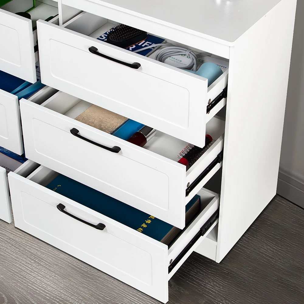 Double Dresser for Bedroom with 6 Drawers Storage Chest of Drawer Organizer US Features: · [Fashionable appearance]: This innovatively designed multifunctional with black handle drawer storage cabinet has an elegant white finish, which perfectly matches your home furnishings. · [6 drawer storage space]: The white drawer's 6 drawers are very suitable for storing daily necessities. The spacious space can store your belongings and keep your home tidy. · [Top storage space]: Put some albums, collectibles and decorations on the top of the white cabinet, which will become a beautiful scenery in your home. · [Smooth slide rails]: The drawers of this bedside table use smooth slide rails, which can easily push in and pull out 6 drawers. · [Smooth surface]: The surface is spray-painted, so that the surface of this dressing table can be easily cleaned without water, and it can be used for a long time by keeping it dry. · [Safety and fall prevention]: The fall prevention device can protect you and your family. The cabinet will be very stable and safe to use. Specification: Color: White Material: Wood Overall size: 47.1 x 14.9 x 31.4 inch Drawer size: 21.7 x 7.8 inch Package Contents: 1 x 6-drawer white storage cabinet 1 x Accessory 1 x Instruction If you have any problem towards the order you received,please feel free to contct us,we promise will serve you and give you a satisfying solution.