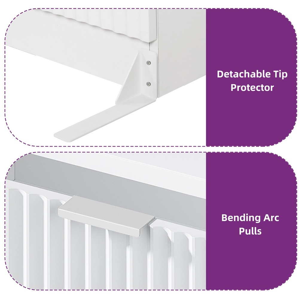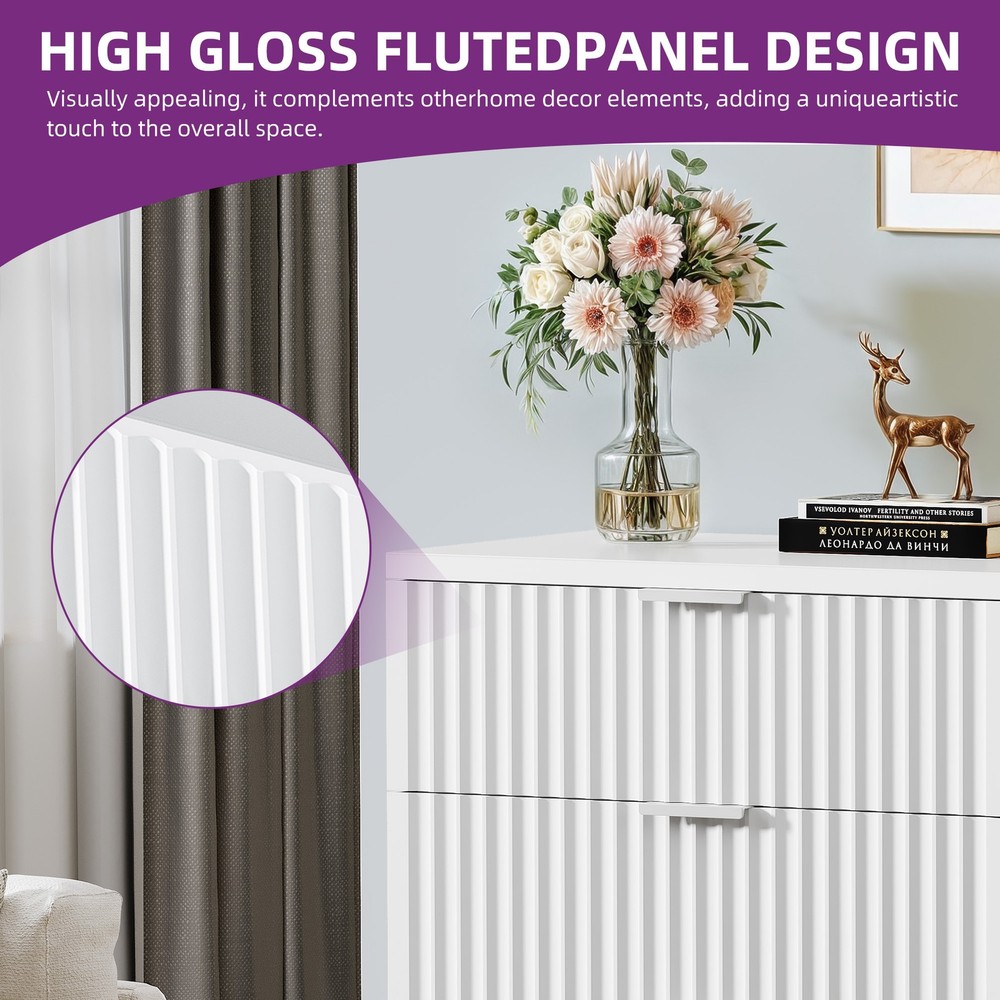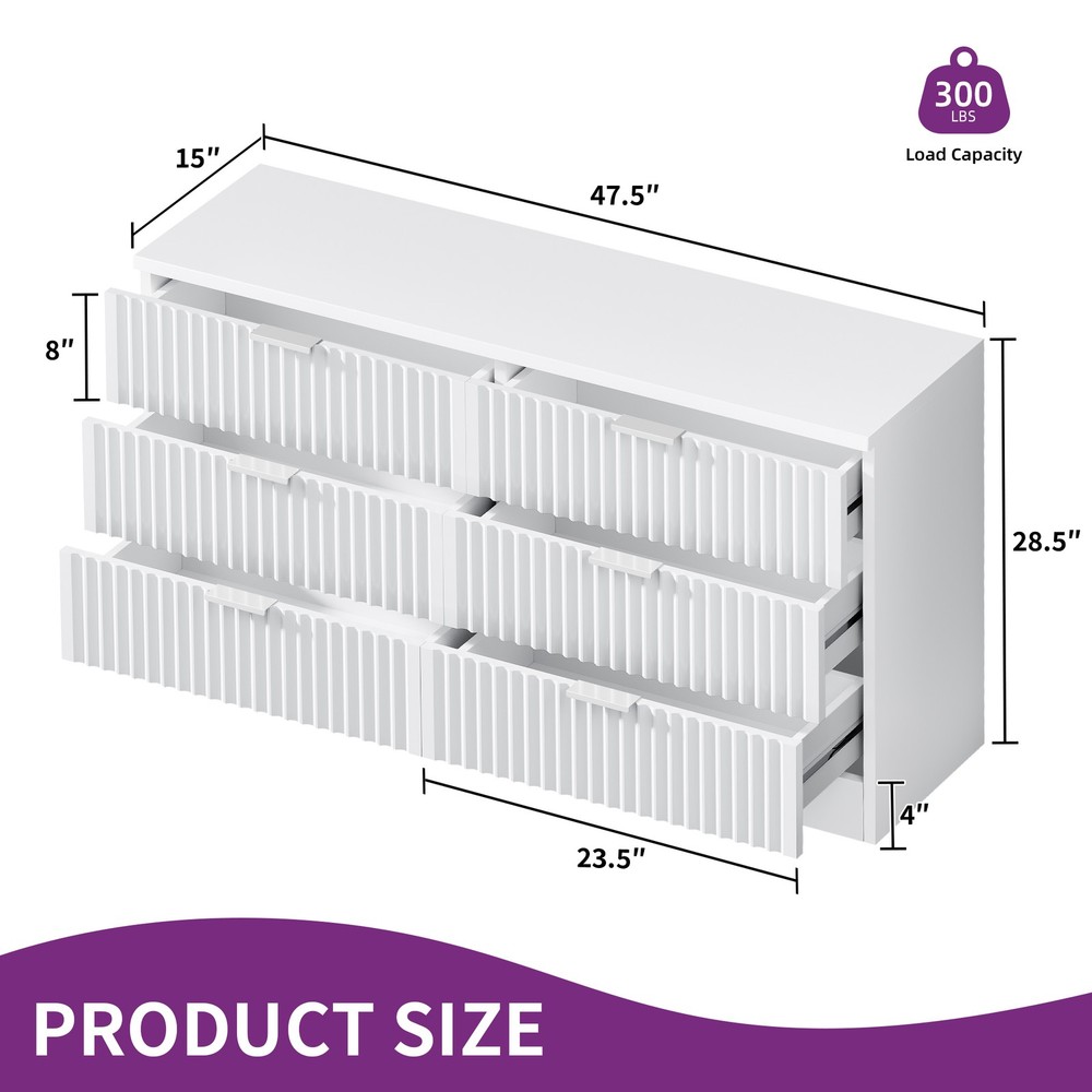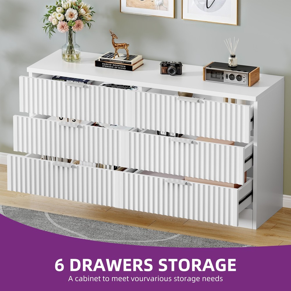 6-Drawer Fluted Panel Dresser TV Stand Cabinet in White