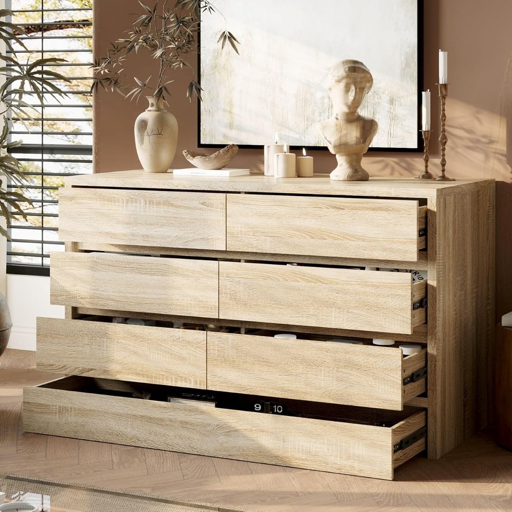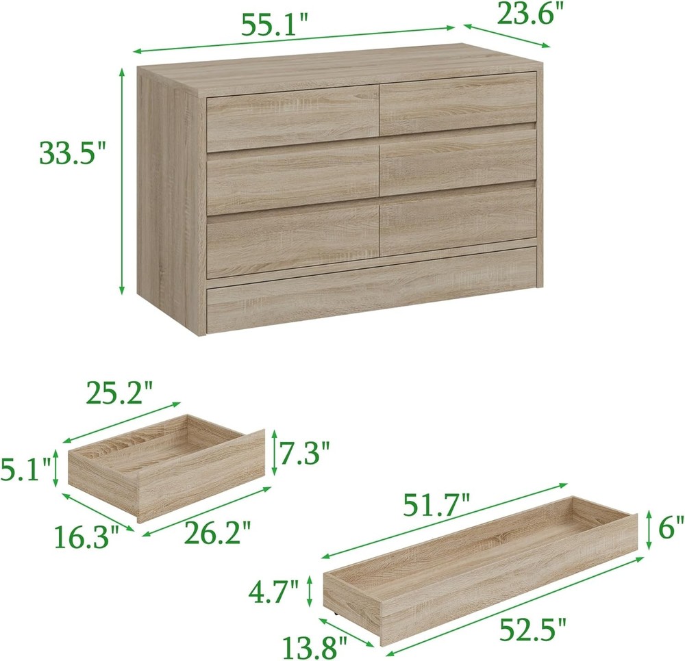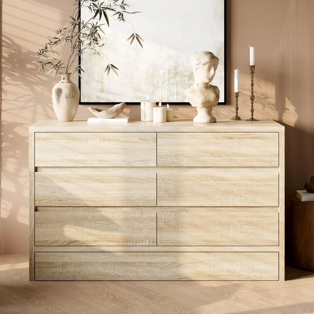 Product Description Lovinouse Original Wood Color 6 Drawer Storage Cabinet Large Capacity, Practical, Beautiful This storage cabinet with 6 drawers, kick bottom drawer and 2 hidden compartments on the upper floor has a large storage space, which can easily store accessories, stationery and other miscellaneous items to meet your diversified storage needs. The cleverly designed upper hidden compartment can safely hide valuables and make the space more tidy. Made of high-quality materials, it is sturdy and durable, and can accompany your home life for a long time. Such a practical and beautiful storage cabinet is definitely the right choice for you to create a neat and orderly home environment! Specifications: Material: MDF Color: Wood Color Overall Dimensions: 55.1“ x 23.6" x 33.5" Hidden compartment large Storage Capacity Sandwich Switch Smooth Drawer Colour Wood Color Material MDF Overall Dimensions 55.1“ x 23.6" x 33.5" Package Includes 6 Drawer Storage Cabinet X 1, Instructions X 1 On Aug 8, 2025 at 01:36:45 PDT, seller added the following information: