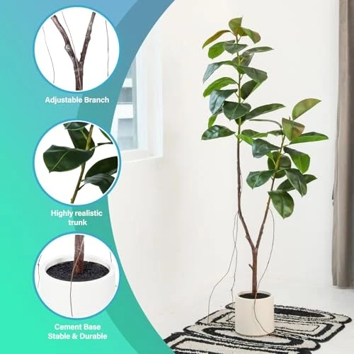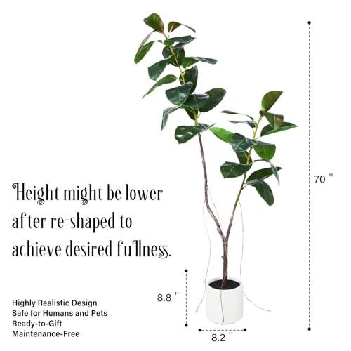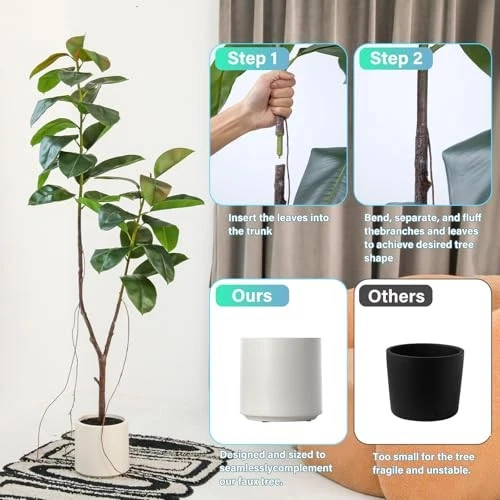 Return Policy Fast Delivery Trusted seller Artificial Rubber Tree for Home Decor 6FT Fake Plant for Indoor, Faux Tree in White Imitation Ceramic Planter Fake Floor Plant for Home Decor and Housewarming Gift (PF-0473, 6FT) Product Description Stunning Fiddle Leaf Fig Tree: Bring the beauty of nature with our 6-foot fig tree artificial; This artfully crafted fake tree exhibits life-like branches and leaves, the vibrant colors, rubber silk leaves with clearly defined veins add to its realism Shape it to Match Your Space: Our fake plants features metal wires within the branches, allowing you to bend and position them as you desire; Whether you prefer a full spread or a more vertical orientation, fake plant adjusts to fit your unique style Fuss-Free Maintenance: Forget about watering, trimming, or dealing with fallen leaves; Our artificial plants indoor are designed for convenience; The rubberized leaves of faux plants indoor are easy to clean; simply wipe them down with a damp cloth Stable and Realistic Setup: The artificial plants comes in a sleek, white planter filled with formulated cement to ensure it stands stable; The artificial tree's planter is topped with lifelike moss, adding an extra touch of authenticity and charm Ideal Gift and Versatile Decor: Our faux plants makes an excellent housewarming gift offering the beauty of a real plant without any upkeep; large artificial plants indoor is perfectly suited for decorating homes, room, living rooms, house and offices Shipping Returns Payment Shipping Shipping is FREE to all addresses other than APO/PO boxes in the lower 48 states. All our stock ships from US-based warehouses. Shipped via USPS or UPS (depending on location and package weight) Unless stated otherwise, all orders will ship within 24-72 hours of your payment being processed. Check our feedback to see the great reviews of FAST shipping we offer. Returns Seller does not accept returns Payment We currently accept payment via eBay managed payments only. Once payment is cleared, we will dispatch your shipment within 1-3 business days. Please refer to the "Shipping" tab for more information regarding shipping speed to your destination.