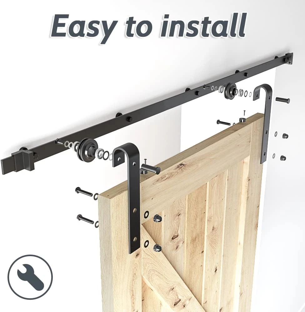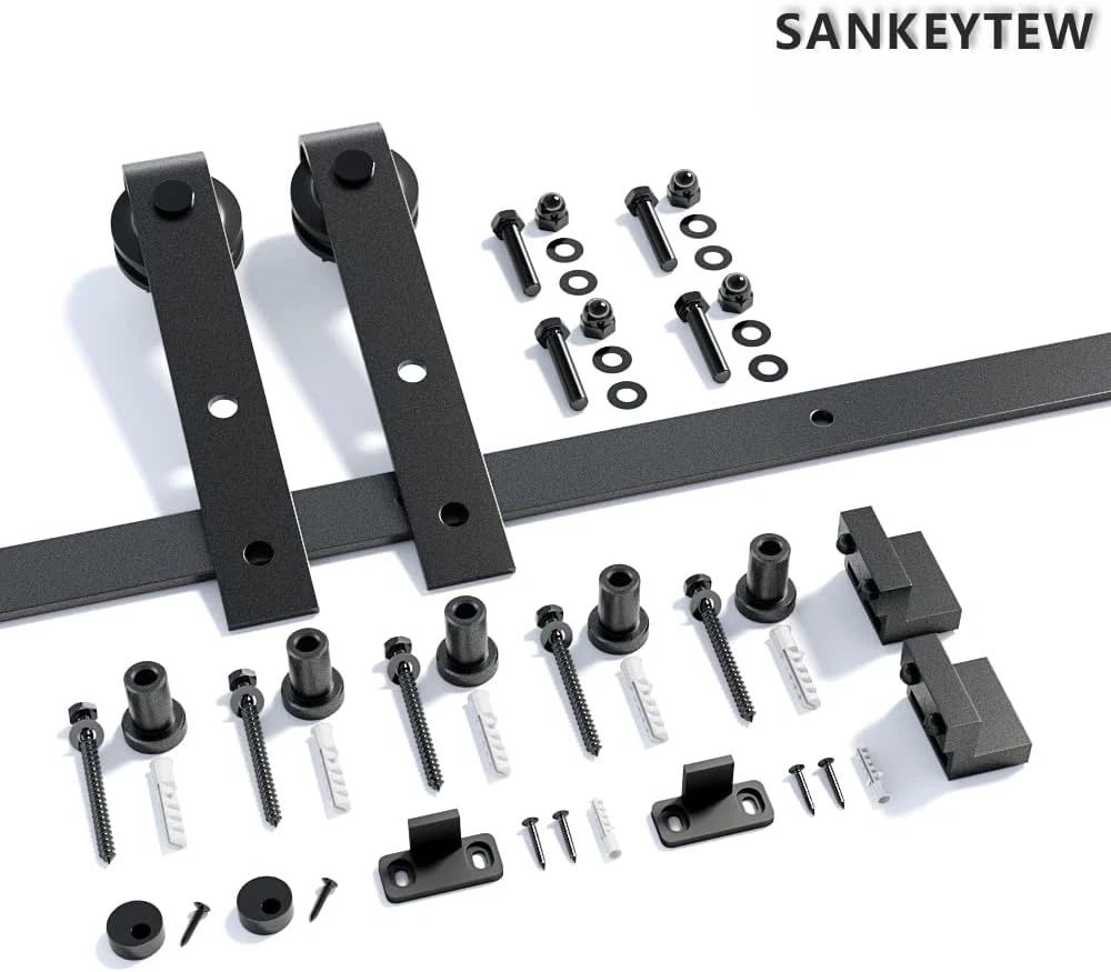 Neighborhood service 6FT Barn Door Hardware Kit, Sliding Barn Door Hardware Kit, Combination Barn Door Track- 1/4" Thick Material- Easy to Install- Manual Included- Black (J-5) ENJOY THE FEATURES [HIGH STANDRAD MATERIAL]Barn door rail,Barn door roller arm are made of carbon steel in 1/4" thickness,Great performance on hanging doors. Barn door wheels are POM made,More sturdy than steel,Smooth and Quiet during sliding , protect both of track and roller ,ensure the barn door system will last long. [STEP BY STEP INSTALLATION]"IMPORTANT:ONLY BARN DOOR HARDWARE KIT INCLUED,BARN DOORS ARE NOT FOR SALE". Manual included,just follow it from step A to Z.Normally it take 30-60 mins to install the whole system based on different installation conditions.In case you find you are missing parts after received the package or you have more doubt on installation ,kindly contact us for the missing part or your questions ,we will get back to you in 24 hours. [BARN DOOR HARDWARE KIT ]Color:Matt Black(black powder coated),Condition Type:New; Main Material: Carbon Steel,Door weight capacity: 250 lbs; Fit for maximum panel width: 36"; Bolt for barn door roller fit for door thickness from 1-3/8" to 1-3/4";Need at least 6" clearance from top of barn door to ceiling.the barn door track hole spacing is 16" pre-drilled. [PACKAGE CONTENT] 5 x barn door track, 5 x wall spacers with leg screws, 2 x barn door stoppers, 2 x barn door rollers, 2 x anti jump pads, 1 x barn door floor guide, 1 x instruction [WHY US] We are a leading manufactory of barn door hardware for more than 10 years ,all sets barn door hardware track kit have been inspected before leaving our warehouse,barn door rollers have been tested over 1000,000 times opening and closing cycle .You can get heavy duty barn door kit here with a manufacturer price,why not ? In case you got any confustion during shipping ,kindly feel free to submit a question or contact us via amazon directly ,thank you . SANKEYTEW 6FT Barn Door Hardware Kit Item model number hm2007-s Size Name 6FT(5pcs combine track) Style Modern Assembly Required Yes Color Matt Black(black powder coated) Material Carbon Steel Country of Origin China Batteries Required? No Item Weight 6.43 Kilograms Batteries Included? No Size 6FT(5pcs combine track) Product Dimensions 16.93 x 4.72 x 3.15 inches Included Components barn door hardware kit 4.72 inches x 16.93 inches x 3.15 inches. Weight: 6.43 kg PAYMENT We accept all payments via Ebay using Credit Cards , PAYPAL , Apple Pay and many others SHIPPING We are always working hard to ensure your package arrives as soon as possible. Please understand that some factors like weather, high postal traffic, and the performance of shipping companies are outside of our control. We offer free shipping to the lower 48 states and ship within 3-5 business days of payment, usually sooner. We do not accept P.O. Boxes. Please provide a physical address. We do not ship internationally at this time. DELIVERY & RETURN POLICY We do not offer returns unless the item violates eBay policies. Please be aware these polices only make sellers accept returns if the item violates eBay's Buyer Guarantee. If you would like to learn more about this please visit eBay's Help Page. Thank you for your business