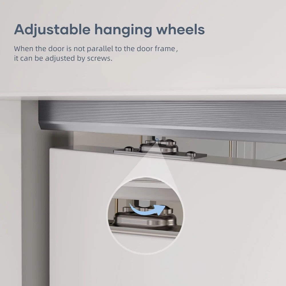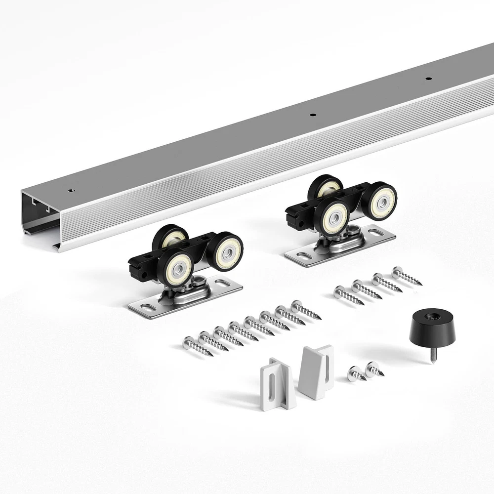 Your Best Choice: professional dedicated to the research of barn door and sliding barn door hardware for many years,we always insist on providing the best quality,the safest and the most cost-effective products. Excellent Quality: Pocket door hardware is made of high-quality aluminum material with premium nylon roller pulley,coated with silver surface,which ensure the features as corrosion,rust-resistant,durable.And maintains its beauty and longevity for many years.Roller is equipped with three wheels, which ensures good load-bearing and stability of the product. Package List: 1 x 68-3/4" track,2 x rollers,1 x bumper,1 x floor guide.All necessary parts are included.(DOOR IS NOT INCLUDED.) Product Advantage: Compared with traditional barn door hardware, top mount pocket door track is space saving and can be used in a variety of living situations, such as kitchen, study, etc. This pocket door hardware and track roller set fits door thickness from 1" to 1-3/4" and weigh up to 200 lbs. 24 Hours Stand By: The package contains all accessories and copy of step-by-step installation manual.You can also get professional support within 24 hours from our service team.