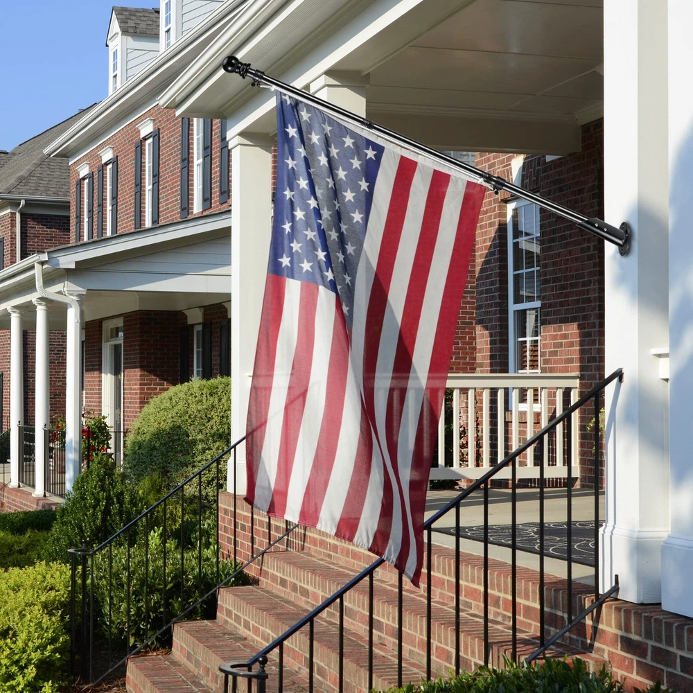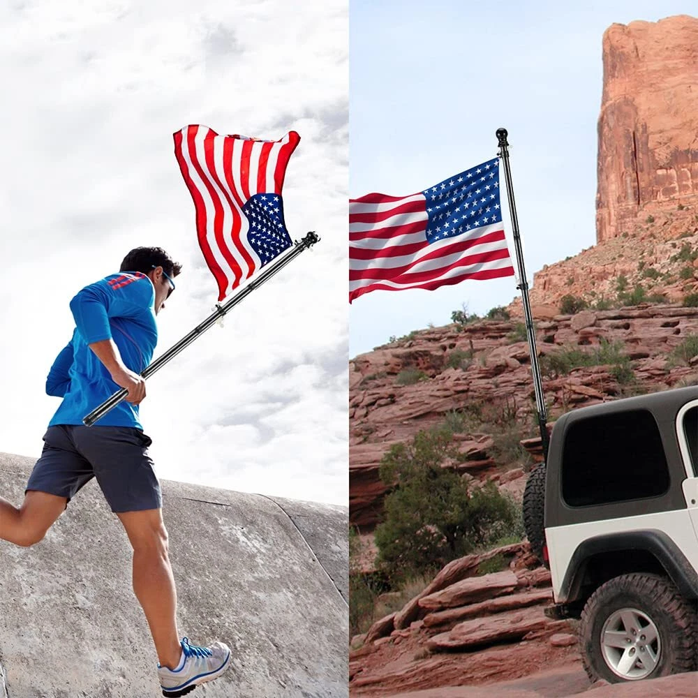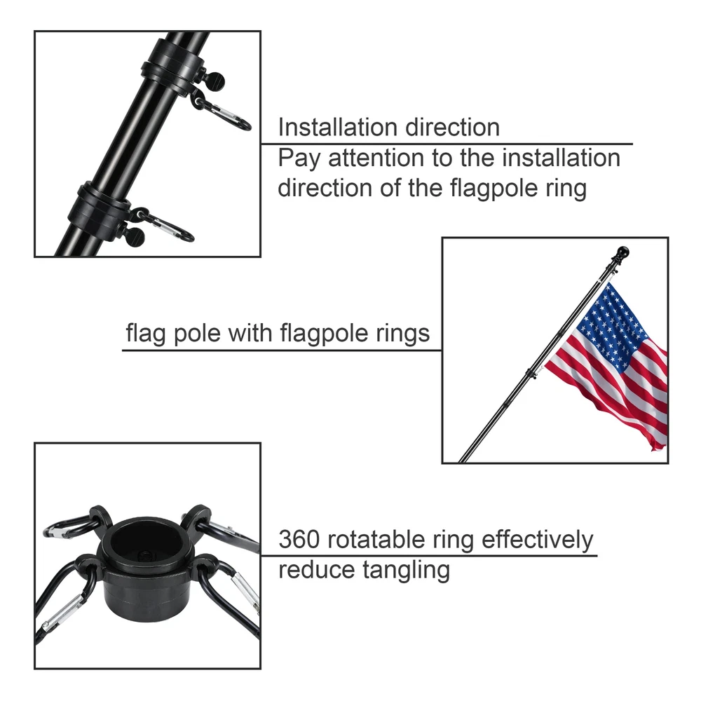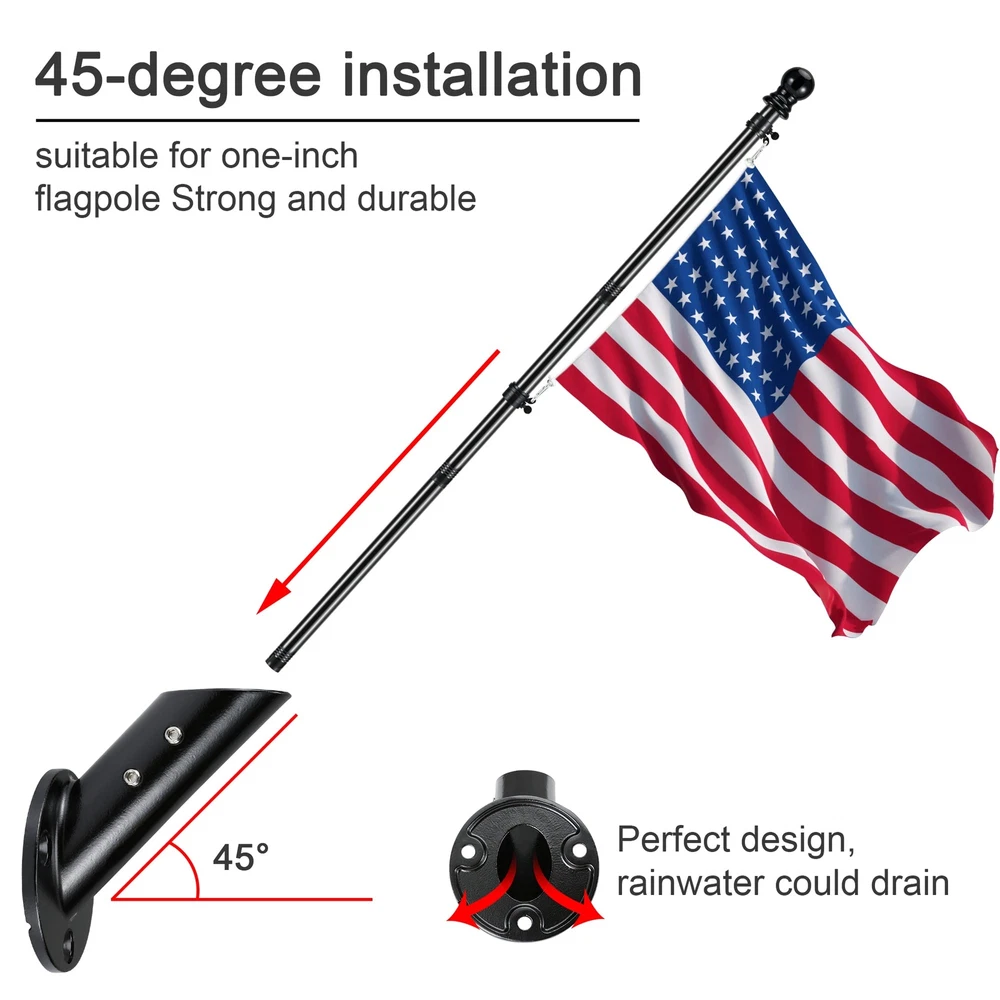【Adjustable Wall Mount Flagpole】 The 6FT flagpole consists of four 1.3-foot stainless steel poles. The length of the flagpole can be adjusted according to the size of the flag to meet your needs. 【 Stainless Steel Flagpole】 The house flag pole is equipped with two rotating flag mounting rings, the adjustable length flagpole can freely install according to your flag size. 【Updated Bracket】 The flag pole kit comes with a 304 stainless steel flag pole holder, with three screws and anchors that could fix the pole firmly, and will not fall off the wall. Durability, water resistance, and rust-proofing. 【More Suitable】 The pole mounting bracket enables the house flagpole to be displayed at 45° from the wall. 360° automatic rotating rings make the flag fly freely in the wind. It is great for your house, porches, gardens, and your truck. 【Multi-role flagpole】 The flag pole kit is perfect for the residential or commercial flag, such as the garden flag, Thanksgiving Holiday& Christmas flag, indoor and outdoor celebration& decoration flags.