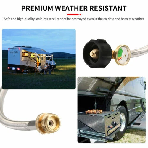 6FT Grill Propane Adapter Hose w/ Propane Tank Gauge Converter QCC1 Type1 1-20lb