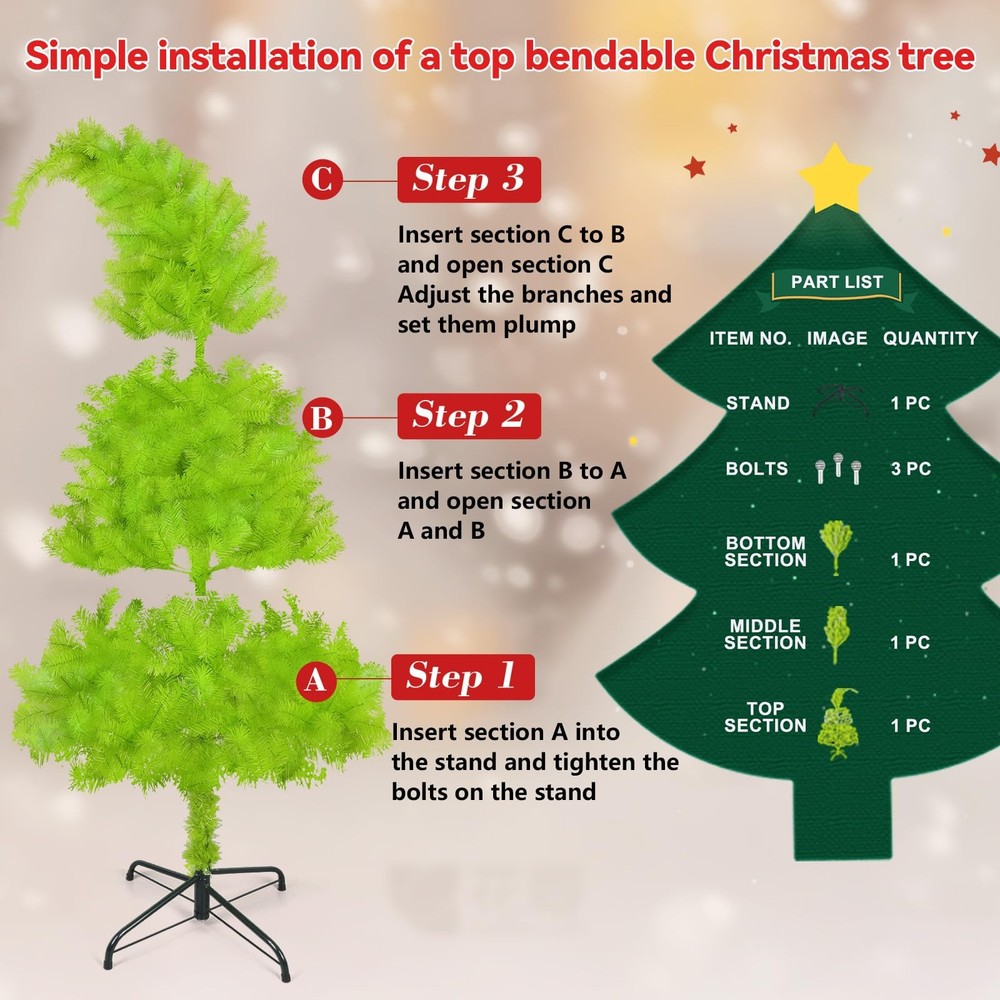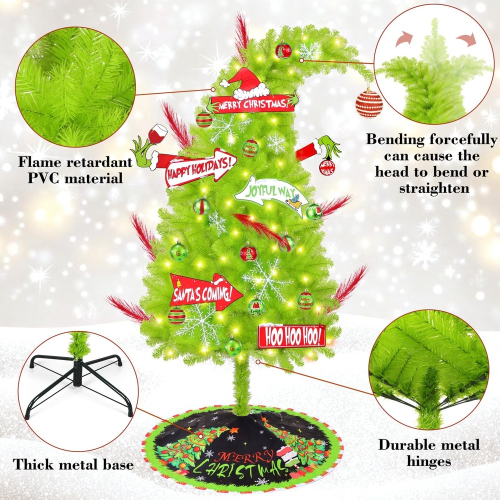 6FT Grinch Christmas Tree with Flexible Branches Green Monster Xmas Decoration 【Xmas Tree with 38 Accessories】What can you get? A 6 feet tall lime green Christmas tree with 38 accessories, including a tree skirt, snowflakes, hanging balls, etc., to decorate your Christmas tree with a surprising Greench theme 【Whimsica Christmas Tree】This artificial Christmas tree not only has a flexible top that can be bent or straightened with just a gentle twist, but also has 798 dense branches and leaves that are bright green. After the decoration is completed, it will present a particularly plump and pleasing appearance. 【High Quality】This Christmas tree is made of high-quality PVC material, which has excellent fire resistance and can effectively enhance the safety during use. Among them, the trunk is sturdy and durable, while the base is stable and reliable, effectively ensuring the long-term use of the overall structure. 【Multi-scenario application】A lemon green medium to large Christmas tree with a height of about 6-7 ft, which can be placed flexibly in bedrooms, living rooms, and courtyards. It is also suitable for holiday gatherings or gatherings with friends, making your life full of festive joy. 【Easy to install】A foldable base, three bolts, and three sections of tree trunk. You only need to install the three sections of tree trunk from the base upwards and tighten the bolts on the base. Then tidy the tree up as fluffy and beautiful as possible. This may take some time, but when you tidy it up perfectly, you will be amazed by the beauty of the tree 【Kind Reminder】The 7 Christmas cards in the accessories, including 5 with holes, need to be tied with hemp ropes and hung on trees. For the other two cards, we have prepared bamboo sticks and nano glue. We need to use nano glue to stick the bamboo sticks to the cards and then insert them into the tree. 6 Ft Lime Green Christmas Tree, Whimsical Xmas Tree with 38 Accessories, Unique Christmas Tree for Indoor Office Home Christmas Decorations Shipping We offer FREE shipping on all orders! We ship within Three business days of payment, usually sooner. We use a selection of shipping services such as UPS, FedEx, USPS etc. We only ship to the lower 48 states, no APO/FPO addresses or PO Boxes allowed. Local pickups and combined shipping options are not provided at this time. Return You can return a product for up to 30 days from the date you purchased it. Any product you return must be in the same condition you received it and in the original packaging. Please keep the receipt. Payment We accept payment by any of the following methods: PayPal Please pay as soon as possible after winning an auction, as that will allow us to post your item to you sooner! Feedback Customer satisfaction is very important to us. If you have any problem with your order, please contact us and we will do our best to make you satisfied. Contact Us If you have any queries, please contact us via ebay. We usually respond within 24 hours on weekdays. Please visit our eBay store to check out other items for sale! Thank you for shopping at our store.