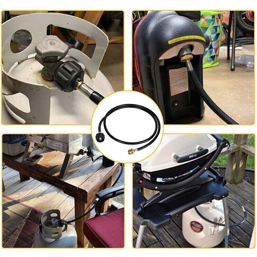 【 FREE CONVERSION 】 : Connect the black male end to the Type 1/QCC 1 propane circulation tank, and connect brass fitting end to the 1lb propane required propane appliance. 【 CUT COSTS 】 : Premium 6ft propane adapter hose allows you to use it on 20 lb or larger tanks that will last you long period of time, convenient for those with larger tanks. 【 PREMIUM QUALITY 】 : Made of durable solid brass well-tested by manufacturer to ensure long term usage with consistent output and provide a secure connection. 【 MULTIFUNCTIONAL USE 】 : 1lb to 20lb propane tank hose adapter converter ideals for your Weber Q gas grill,for MR. buddy heaters, for coleman camp stove, portable/tabletop grills, etc., good for camping, picnicking, or outdoor heating. 【 SERVICE 】 : For any questions you are not happy with the item , you can ask for exchange or full refund under our after-sales service. Product Description -High quality 100% solid brass construction QCC1/ Type1 fittings; Most commonly used to connect portable appliances to 20lb tanks. -Perfect for lanterns, camp stoves, tabletop grills, mosquito magnets, outdoor heaters and more. -Hand-tighten Counter Clockwise. No tools needed, easy and quick attachment for easier installation. -Long lasting and easy to use. -Let you stop wasting money on those expensive little propane bottles. -Outdoor use only. Specification: Material: rubber & solid brass Length: 6 feet