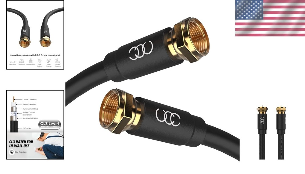 6FT RG6 Coaxial Cable Set - High-Speed Internet & TV, Weather-Sealed Connectors