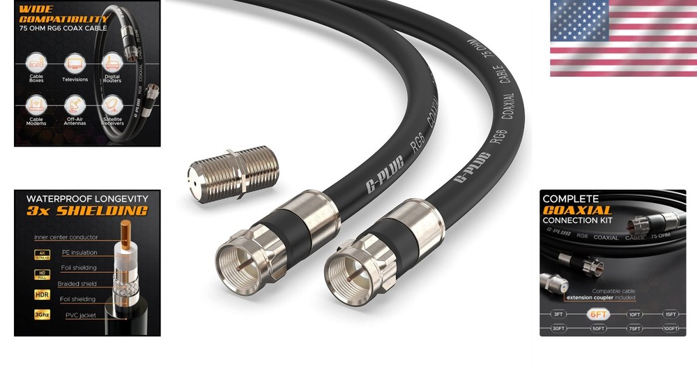 6FT RG6 Coaxial Cable with F-type Male Connectors - Perfect for TVs & Modems ‹ › ‹ › ‹ › ‹ › ‹ › ‹ › ‹ › ‹ › 6FT RG6 Coaxial Cable with F-type Male Connectors Perfect for TVs & Modems Key Features: Reliable Connection: Unlike other coaxial cables, our 75ohm Standard Shield RG6 Cable offers a solid, dependable connection that extends your signal effortlessly. Nickel-Plated Brass Compression Connectors: Renowned for their ability to shield signals from noise, these connectors ensure a spotless quality of service, ideal for broadband, satellite TV, and digital applications. DURABLE Design: Constructed with hardy double rubber O-rings and weather-sealed technology, this extension cable is perfect for both indoor and outdoor use without worry of degradation. Complete Connection Kit: This coaxial cable set comes with everything you need for a fast and stable connection: 75OHM RG6 Standard Shield Cable, brass compression connectors, waterproof O-rings, a lead-free PVC jacket, and an easy-rotate nut for compatibility with devices. Includes an extra extension coupler! Why You Need This Cable: Experience the frustration of low-quality coaxial cables? Our RG6 cable is engineered for resilience and longevity, ensuring your systems function seamlessly, weekend after weekend. Perfectly suited for connecting multiple devices, extending your total cord length while ensuring an uncompromised quality of signal. Our customer promise includes a 30-day satisfaction guarantee and a 12- for free replacement or full reimbursement – we value your trust and satisfaction. Our Commitment to Quality: At , we're passionate about delivering superior cables that boast exceptional functionality. Founded by a team of dedicated electronics experts, we provide excellent performance across multiple categories. Our customer service team is ready to assist with any questions or concerns, responding within 24 hours. Invest in unparalleled reliability; upgrade your connection today with our 6FT RG6 Coaxial Cable! Shipping Free & Fast Shipping - We offer free shipping to most of the USA with a normal delivery time of 3-7 days. However, due to the current situation, additional delivery time (up to 3 weeks) may be required for some items. Alternative Carriers - We may use alternative carriers (e.g. USPS, FedEx, UPS, etc.) to ensure your package arrives safely and on time. Due to the use of multiple carriers, we are unable to provide a tracking number automatically. Handling Time - Orders are processed and shipped within 1-2 business days of receiving cleared payment. Shipping Restrictions - Shipping to Alaska, Hawaii, Puerto Rico, Guam, and other US territories may incur shipping charges or delivery restrictions. Please contact us before ordering, or your order can be refunded/cancelled. State Restrictions - There may be restrictions based on your state of purchase. For example, certain items may not be shipped to California due to state regulations. Contact for Tracking Updates - If you require tracking updates or have any concerns about the delivery of your order, please feel free to contact us, and we will be happy to assist you. Return 30-Day Hassle-Free Returns - We want you to be completely satisfied with your purchase. If you are not, you can return the item within 30 days of receiving it for a full refund or exchange. Easy Return Process - To start a return, simply contact us and we will provide you with a prepaid return shipping label and detailed instructions. Restocking Fee - There are no restocking fees for returns. However, the buyer is responsible for return shipping costs if the return is not due to a seller's error. Refund Processing Time - Refunds will be processed within 5 business days of receiving the returned item in its condition. Payment We accept all major credit cards, PayPal, and Apple Pay for your convenience. Your payment information is secure and encrypted to ensure a safe and seamless transaction. Please complete your payment within 3 days of purchase to avoid any delays in shipping. Feedback Your feedback is extremely important to us. We strive to provide the best products and customer service possible. If you are satisfied with your purchase, please take a moment to leave us a positive review. If you have any concerns or issues with your order, please contact us before leaving negative feedback. We are committed to resolving any problems and ensuring your satisfaction. Contact Us If you have any questions or concerns, please feel free to out to our customer support team. You can contact us through the eBay messaging system. We are available Monday to Friday, 9:00 am to 5:00 pm EST, and we will do our best to respond to your inquiry within 24 hours. Buy it now and enjoy a pleasant shopping experience! Unit Quantity: 6 ft Item Height: RG6 Coaxial Cable Connectors Item Length: RG6 Coaxial Cable Connectors Item Width: RG6 Coaxial Cable Connectors Connector A: Coaxial F Male Connector B: Coaxial F Male Features: Weather-Sealed,High Speed,Double Rubber O-Ring,Lead-Free PVC Jacket,Easy-Rotate Nut,Flexible PVC Jacket,75 Ohm Impedance,Triple Shielded Compatible Model: Universal,TV,HDTV,Cable Box,Satellite Dish,Antenna,Modem,Router,Internet Gateway,Xfinity,Spectrum,Television,Satellite Receiver,Coax Splitter,TV Box,Off-Air Antennas,Over-The-Air Receiver,AV Receiver,DVR,Set-Top Box,DIRECTV,Dish Network Type: Coaxial Cable Cable Length: 6 ft Connection Split/Duplication: 1:1 Unit Type: ft Color: Black