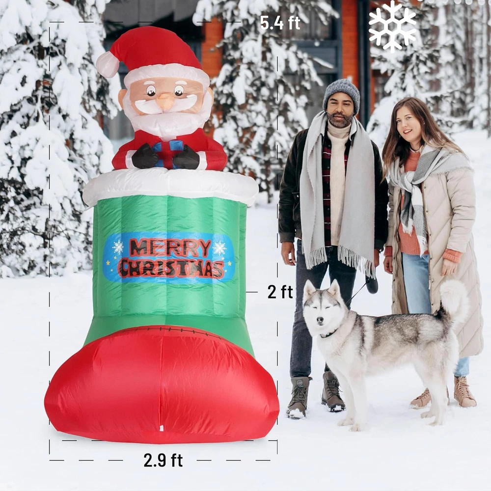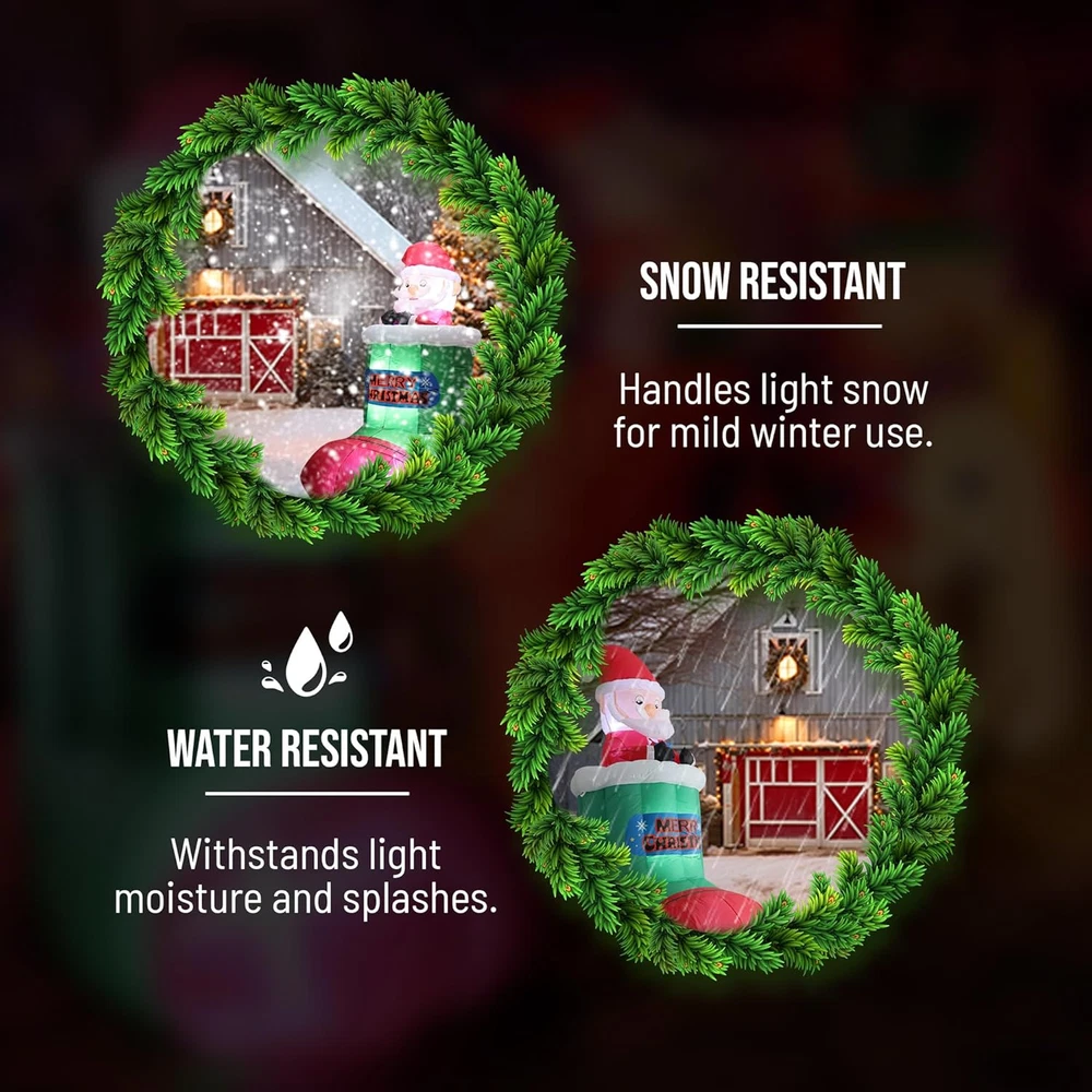Theme: Christmas Item model number: PL_Inflatablesock Type: Does not apply Product Dimensions: 33.46 x 35.43 x 39.37 inches gtin13: 313055865860 Brand: Does not apply Occasion: Christmas UPC: 313055865860 Light Color: Bright White Color: Red and Green Country of Origin: China Cartoon Character: Santa Claus Special Feature: Easy Setup, Self Inflating, Long Lasting, Durable, Tear Resistant Item dimensions L x W x H: 33.46 x 35.43 x 39.37 inches Item Weight: 4.47 pounds