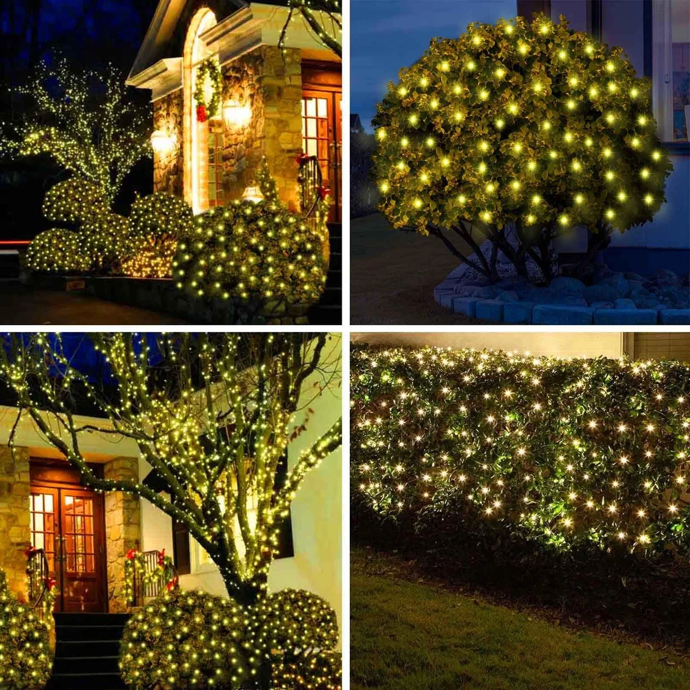 UL Certified Outdoor Christmas Lights: Strictly tested and meets the US requirements of string lights UL standards to ensure & maximize the safety. Whole set string lights including string wire, Led bulbs and plug have been certified by UL. With our 120LED 6ftx4ft net lights, perfect outdoor indoor decorations for Christmas, Thanksgiving, Easter, Halloween, party, yard, balcony, garden, pergola, gazebo, especially for trees and bushes. Durable And Energy Efficient Mesh Net Lights: Our Christmas bush lights adopt new eco-friendly materials and energy-saving Leds to ensure that it can be touched safely without heating after prolonged use. The new PVC material makes our netting lights several times brighter and more energy efficient than traditional mesh lights, as well as being no radiation, low power consumption, and cool to touch. Connectable Christmas Net Lights: Designed with Male and Female Safe Plug,Our net mesh lights can maximum connect with 10 sets lights extended in the mean time for more large scene display that fulfill different decoration needs. What's more, our christmas net lights also designed with a long leading and tail wire, meet your needs to have enough distance to lead the power from indoor to outdoor.These size is perfect to cover the small fence, patio, garden, bushes, trees. Waterproof for Outdoor Christmas Decorations: With IP44 waterproof and can be used indoors or outdoors in any weather condition. This bushes Xmas lights are perfect for courtyards, shrubs, Christmas, Halloween, Valentine's Day, parties, performances, weddings, homes, windows, bathrooms, festivals, balconies, bars, restaurants, hotels, commercial buildings, shopping centers, etc. (Please note: the adapter is not waterproof, if used outdoors, it should be used with a waterproof socket cover.) 【Bright Christmas Net Lights】:Our 4ftx6ft 120 led Christmas net lights string has a length of 9.84ft in front lead and 1.64ft in rear lead,perfect to cover the small fence,patio,garden,bushes,trees.Different from traditional ordinary lamp beads,Our net lights outdoor mesh lights adopts LED Mini lamp beads,these LED Mini bulb will create a 360º sparkling glowing,Illuminate your bushes with our net lights for bushes, designed to radiate light brightly from all angles for a dazzling display. Our clear Christmas net lights for bushes are full wave rectified, eliminating any flickering and ensuring a brighter display than ordinary LED net lights. 【Durable And Energy Efficient Mesh Net Lights】: Our Christmas bush lights adopt new eco-friendly materials and energy-saving Leds to ensure that it can be touched safely without heating after prolonged use. The new PVC material makes our netting lights several times brighter and more energy efficient than traditional mesh lights, as well as being no radiation, low power consumption, and cool to touch. 【End-To-End Connectable Outdoor Christmas Lights 】: Designed with Male and Female Safe Plug,Our net mesh lights can maximum connect with 10 sets lights extended in the mean time for more large scene display that fulfill different decoration needs.What's more, our christmas net lights also designed with a long leading and tail wire, meet your needs to have enough distance to lead the power from indoor to outdoor. 【UL Certified Net Christmas Lights】: Our outdoor christmas net lights Strictly tested and meets the US requirements of string lights UL safety standards.Not only christmas net lights has passed the UL certification as a whole, but its raw materials and accessories (such as wires and plugs) are all UL-certified products. High quality certified products ensure the safety of you and your family. Won't over heat even used for a long time.It has approved for indoor and outdoor christmas decorations. 【IP44 Waterproof Outdoor Christmas Decorations Lights】:Not only made of sturdy and fall-resistant LED material,but also the connection between the bulb and the wire is made of fully sealed rubber material,even if it is stormy,it can be used normally outdoors.Create your own winter wonderland this Christmas! Light up your home with this vibrant christmas bushes lights. Also use it for weddings, birthday or party decor both indoor or outdoor to add the festivity!(CAUTION:The plug is not waterproof, please keep the plug away from water).