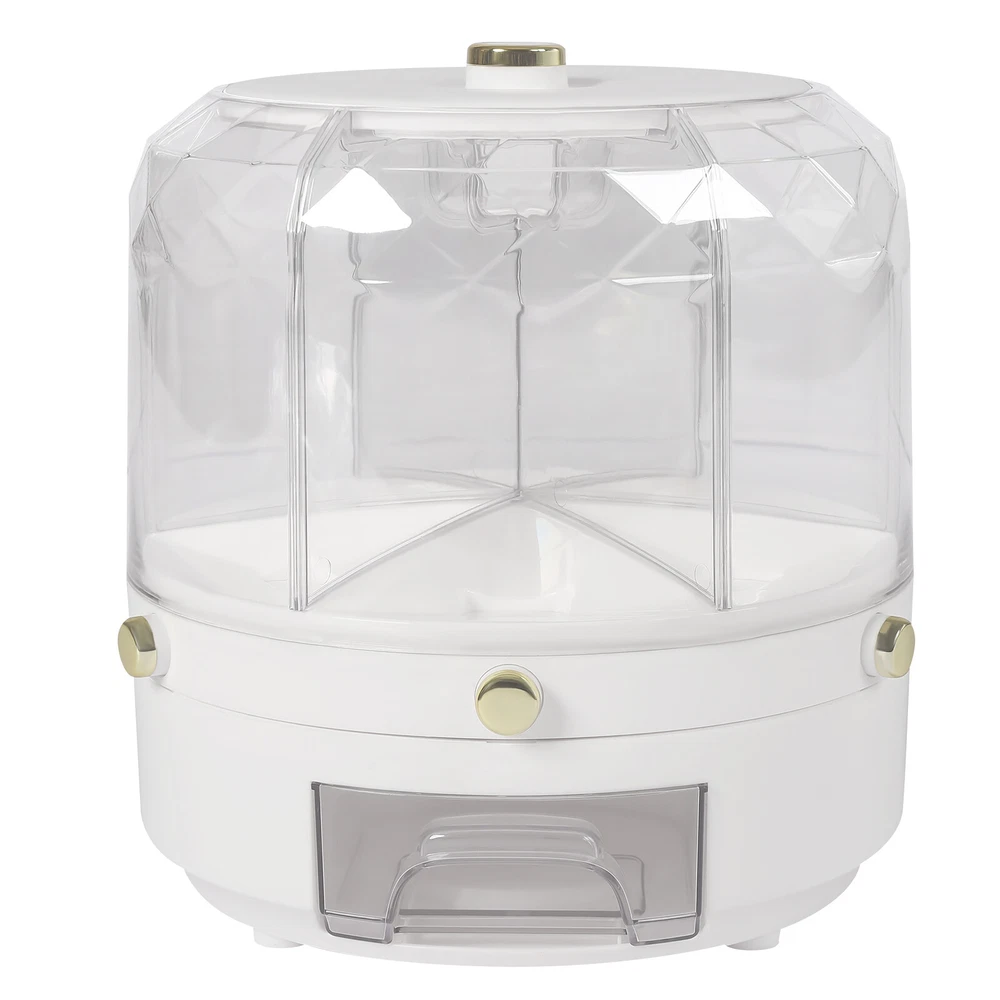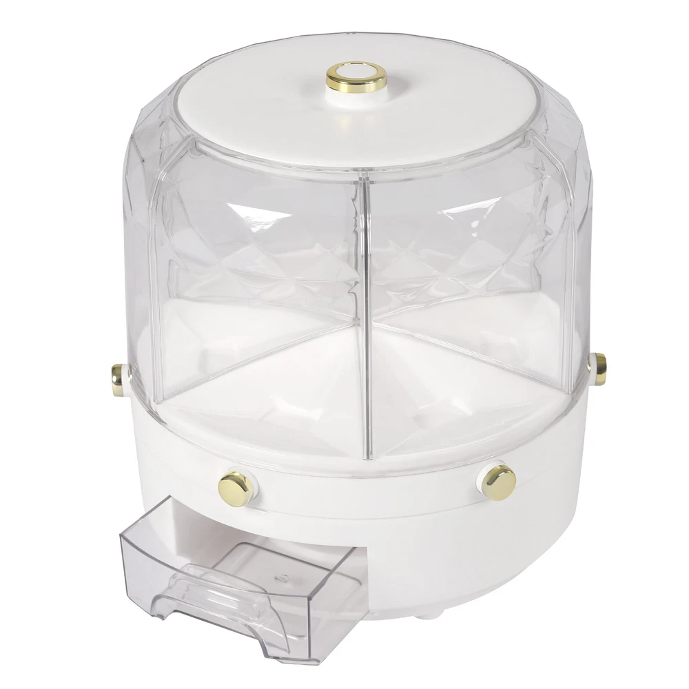 Specifications Material: Pp, Pet Surface Treatment: Gold-plated, Injection Molding Color: White Style: Modern Minimalist Shape: Round Mounting Type: Free-standing Feature: 360° Rotatable Usage: Store Flour, Sugar, Rice, Grains, Nuts, Beans, Coffee, Etc. Functions: Moisture-proof, Insect-proof Number of Grids: 6 Volume: 6kg/13.2lbs Product Size: 25*25*25cm/9.84*9.84*9.84inch Package Size: 25.5*25*25cm/10.04*9.84*9.84inch Net Weight: 1.1kg/2.4lbs Gross Weight: 1.4kg/3.08lbs Package Included 1* Grain Dispenser 1* Chinese Manual 6-Grid Rotating Rice Dispenser Dry Grain Food Storage Container Tank for Kitchen Rice Food Grain Dispenser, 6 Grids Rice & Grain Storage Container, Rotatable Sealed Grain Food Storage, One-button Pressing Storage Bucket for Grains Snacks Candy Coffee Beans Dog Food Dispenser Description Storing Rice and Various Grains in a Dry, Sealed, and Clean Environment to Avoid Insects and Spoilage Is Necessary, Safe, and Healthy for You and Your Family. Our 360° Rotatable Grain Dispenser Can Meet Your Needs. It Features High Quality, Large Storage Capacity, and Various Thoughtful Designs (Clear Appearance, Independent Buttons, Funnel Outlet, Etc.), Bringing More Convenience to Your Life. Putting All Grains in One Place Makes Your Cooking Easier. Key Features Large Storage: the Strong Capacity (13.2lbs) and Six Grids Enable the Organized Storage of Different Grains to Have Their Exclusive Space. and You Can Say Goodbye to the Disorder of Traditional Multiple Pots. 360 ° Rotatable: the 360 ° Rotatable Design Allows You to Select the Grain You Need Just by Moving Your Fingertips. Clear&Modern Appearance: the White Base&Lid, a Clear and Diamond Design Give This Grain Dispenser a Modern and Simple Appearance, Which Is Compatible with Any Room Decor. and the Clear Design Is Convenient to View Without Tedious Search, so You Can Achieve Timely Replenishment. Easy to Fill&Load: the Detachable Lid and Large Opening Design Allow for Convenient Filling. Moreover, the Independent Rice Bucket and Funnel Outlet Design Effectively Avoid Spillage&Aging Rice and Allow for an Easy&Smooth Load of Multi-grain. Proper Size: the 9.84*9.84*9.84 Inches Reasonable Size and a Contoured Design Will Maximize Storage Space and Fit Most Countertops, Tables, Pantry Racks, Cupboards, Closets, Shelves, or Cabinets. Easy to Clean: Its Dustproof Lid with a Large Opening, Smooth Surface, and Burr-free Edges Make This Grain Dispenser Easy to Clean. You Can Rinse It with Water or Wipe It with a Wet Cloth. Details Round Edge: the Smooth and Round Edge Does Not Hurt the Hand, Making It Safer to Use. Independent Buttons: Each Grid Has a Button for Quantitative Rice Production, and You Can Gently Press It to Take Grains According to Your Needs to Avoid Waste. Anti-skid Feet: the Non-slip Feet Can Effectively Prevent This Grain Dispenser from Slipping and Scratching the Countertop. Insect-proof Storage Box: You Can Add Star Anise, Garlic, and Pepper in It to Prevent Grain Insects and Prolong the Grain Shelf Life. Gold-plated Handle: the Gold-plated Handle on the Top Lid Plays a Decorative Role and Allows for Easy Holding&Opening of the Lid. Application It Is Used to Store Rice, Red Beans, Yellow Beans, Black Beans, Oats, Mung Beans, Corn Kernels, Millet, Nuts, Snacks, Various Grains, Coffee, Tea, Pet Food, and so on. and It Is Suitable for Your Kitchen, Dining Room, Bedside Table, Countertop, Pantry, Cabinet, Shelf, Etc. Specifications Material: Pp, Pet Surface Treatment: Gold-plated, Injection Molding Color: White Style: Modern Minimalist Shape: Round Mounting Type: Free-standing Feature: 360 ° Rotatable Usage: Store Flour, Sugar, Rice, Grains, Nuts, Beans, Coffee, Etc. Functions: Moisture-proof , Insect-proof Number of Grids: 6 Volume: 6kg/13.2lbs Product Size: 25*25*25cm/9.84*9.84*9.84inch Package Size: 25.5*25*25cm/10.04*9.84*9.84inch Net Weight: 1.1kg/2.4lbs Gross Weight: 1.4kg/3.08lbs Package Included 1* Grain Dispenser 1* Chinese Manual Notes Please Note That Grains Are Not Included in the Package. Please Avoid Heavy Impact, Sharp Objects, or Direct High-temperature Exposure During Use to Avoid Product Damage or Aging. Please Allow the Slight Color Difference Caused by the Shooting Light and 1-3cm Error Due to Manual Measurement, and Make Sure You Do Not Mind Before You Order. Payment Delivery details Terms of sales About us Contact us Payment We accept ebay payment 。 Fees such as import duties, taxes are not included in the item price or shipping costs. These charges are the buyer's responsibility. Delivery details Shipping: 2-9 working days to: USA Terms of sales We maintain high standards of excellence and strive for hundred percent customer satisfaction. Feedback is very important to us. We hope that you contact us immediately before you give neutral or negative feedback, so that we can address your concerns. It is impossible to address issues if we do not know about them! About us Your satis faction is our ultimate goal. We work hard to earn your trust and future business. Our certified technicians have tested each item before shipping. The unit comes with 1 year limited warranty on all manufacturing defects. a) If you receive a defective item, you may return it or ask for a discount. Please contact us within 14 days after you receive the package. b) What you returned must be intact and in its original packaging as re? u. Customer is responsible for shipping costs of the returned item. c) We will cover the cost of shipping back t with the shipping rate indicated in the registration page. We will send you a new unit or refund the full payment you paid. Thank you. Contact us Business Hour Business Hour: Monday To Friday: 8:30 AM to 5:00 PM (Beijing China time) Due to time zones, our reply to your questions may not be immediately. But within above working time, we will reply your email within 24 hours. If it's non-workdays, please kindly be patient and wait till Monday. Please contact us with ebay message