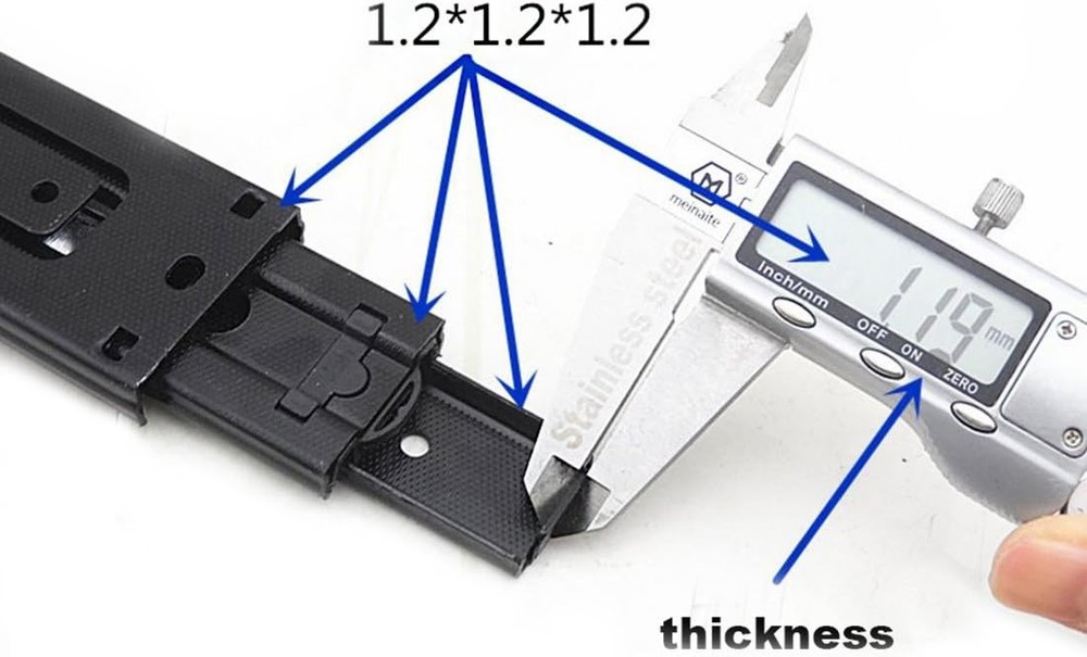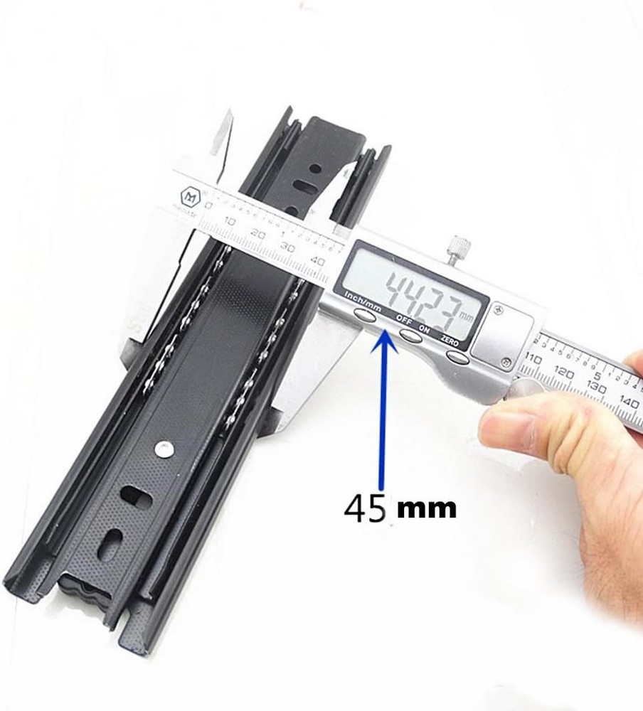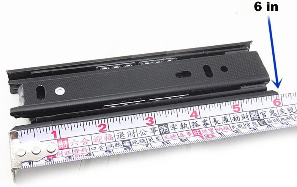 Furniture 6-inch Length Full Extension Drawer Slides Telescopic 6 Inch, Black Product Details Mounting Type: Side Mount Weight Limit: 370 Grams Drawer Type: Side Mount Manufacturer: Btibpse Number of Items: 2 Part Number: 1005 Item Weight: 12.3 ounces Product Dimensions: 6 x 0.5 x 1.8 inches Country of Origin: China Item model number: 1005 Is Discontinued By Manufacturer: No Size: 6 Inch Finish: Powder Coated Item Package Quantity: 2 Maximum Weight Capacity: 370 Grams Batteries Included?: No Batteries Required?: No Color: Black Material: Metal Brand: Btibpse Product Dimensions: 6"L x 0.5"W x 1.8"Th Finish Type: Powder Coated Product Name: Drawer Slide; Size(Folded): 15x4.5x1.2cm/6"x1.8"x0.5"(L*W*H) Main Color: Black Weight: 370g; Package Content: 2pcs x Drawer Slide Size(Unfolded Length): 28.2cm/11"