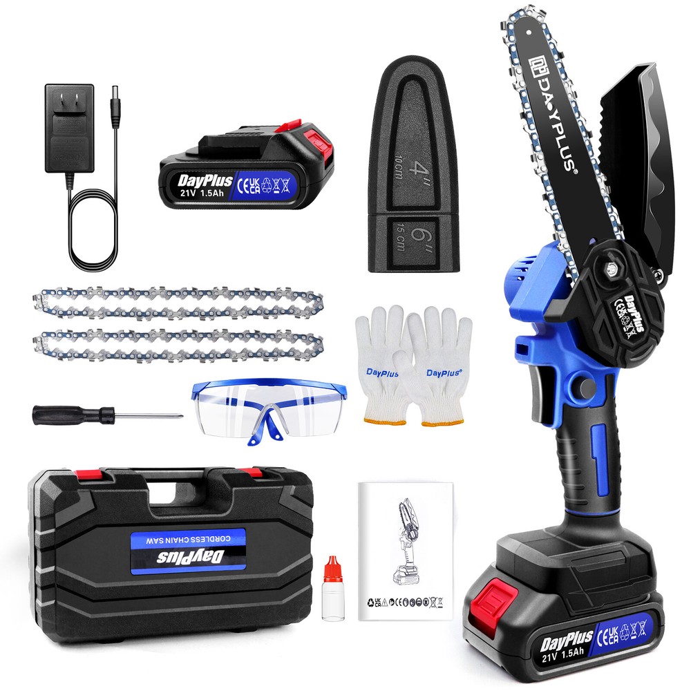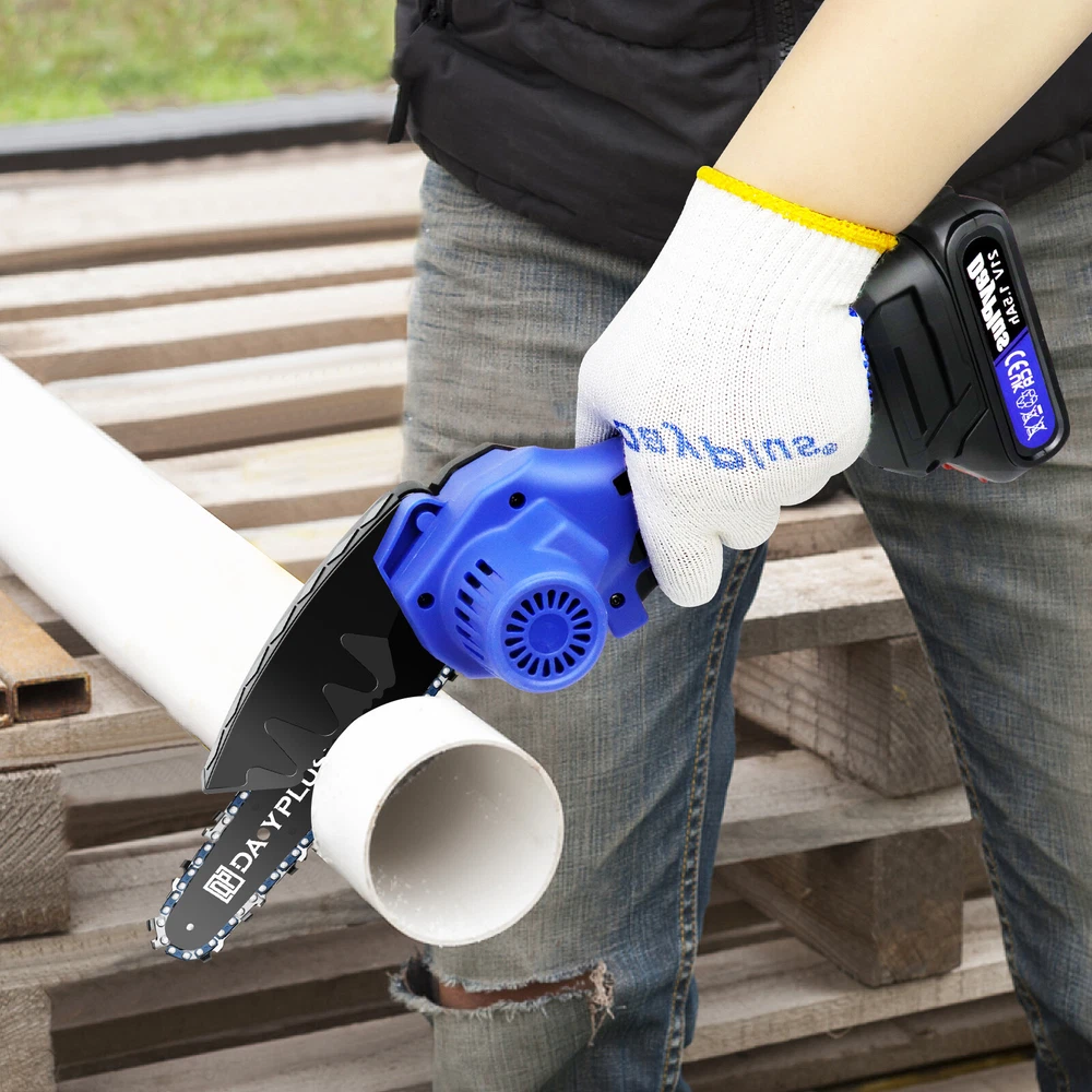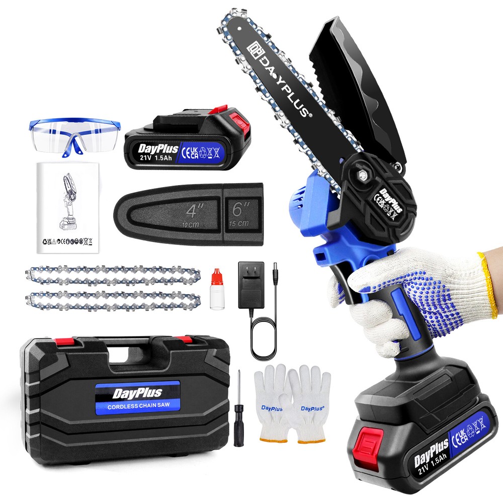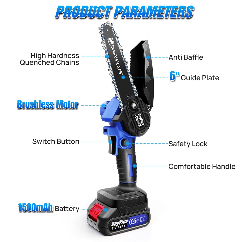 6Inch Chainsaw Electric Wood Cutter Cordless Chain Saw Tool For Makita Battery 600W Electric Cordless Wood Cutter Mini Saw Chainsaw Woodworking with Battery 21V Electric Cordless One-Hand Saw Chain Saw Woodworking W/Battery Kit Specifications: Material: ABS+Metal Color:Blue Battery: Lithium Battery, 21V, 1500mAh (included) Power: 600W Guide Plate Length: 6 Inch Power Supply: 21V Rechargeable Lithium Battery Speed: 2200 rpm No Load Impulse:5300spm Blade Size / Diameter: 110mm Maximum Sawing Thickness: 80mm Cutting Depth In Wood: 80mm Cutting Depth In Pipe: 80mm Application: Cutting Trees, Pruning Branches, Gardening, Sawing wood, Transforming Furniture, Picking Fruit, etc. Features: - Small size, can be held with one hand. - Practical, fast speed, low power consumption. - Fine quality switch, fast and slow adjustment, stepless speed change. - Pure copper brushless motor, strong power, fast cutting, improve efficiency. - Fine quality guide plate chain, deep quenching, more wear-resistant, smooth cutting. - Rechargeable electric chain saw, light and portable, long battery life, no damage to the bark. - Lightweight body, light and convenient, lightweight design, long time holding and not tired hands. - Intelligent circuit control board, overload protection, to meet your different construction needs. - Special guide plate, tungsten steel ball does not need to be lubricated, so that the machine reduces resistance during operation and reduces wear on the machine. Package Includes: • 1 x Brushless Chainsaw Body • 1x 1500mAh Li-ion Battery • 1 x Fast Charger • 1 x Screwdriver • 1 x Guide plate • 1 x Antiskid gloves • 1 x Goggles •1 x Oil pot (lubricating oil) • 2 x Chain • 1 x User Manual • 1 x Case \ Payment Delivery details Terms of sales Welcome Contact us Payment 1.Please check the item after you receive it,please keep us posted if you have any confusion or porblems about your order .We will give you reply and best solution within 1 working day . 2. Please don't leave any neutral/negative feedback or open a case when you have problems with our product , we promise to try our best to help and not let your interest be damaged. 3.If you are satisfied with our product,please leave us a 5 stars positive feedback and we will do the same for you. Delivery details Sincerely thank you for choosing us, we suggest you reading our shipping terms and conditions. 1.All items are shipped within 1-2 business days after we confirm your payment and your shipping address. 2.We only ship our items to the areas that our logistics provider covers. 3.To ensure you receive item safely, please offer the concrete and complete shipping address 4.Please keep the consistency of the address from Paypal and eBay. 5.Sometimes your order may be impacted by extreme bad weather, strikes or other unexpected events. 6.If there are any problems with your order, including late delivery or being lost, please do not hesitate to contact us. We are happy to offer solutions to your inquiries. Terms of sales 1.We accept PayPal only! 2.Please keep the consistency of the address from Paypal and eBay. 3.Payment must be received within 3 days since you won the item, or eBay will launch Unpaid Reminder Against you. Welcome Contact us If you have any question,Please no hesitation to contact us via ebay message, we will reply you within 24 working hours .