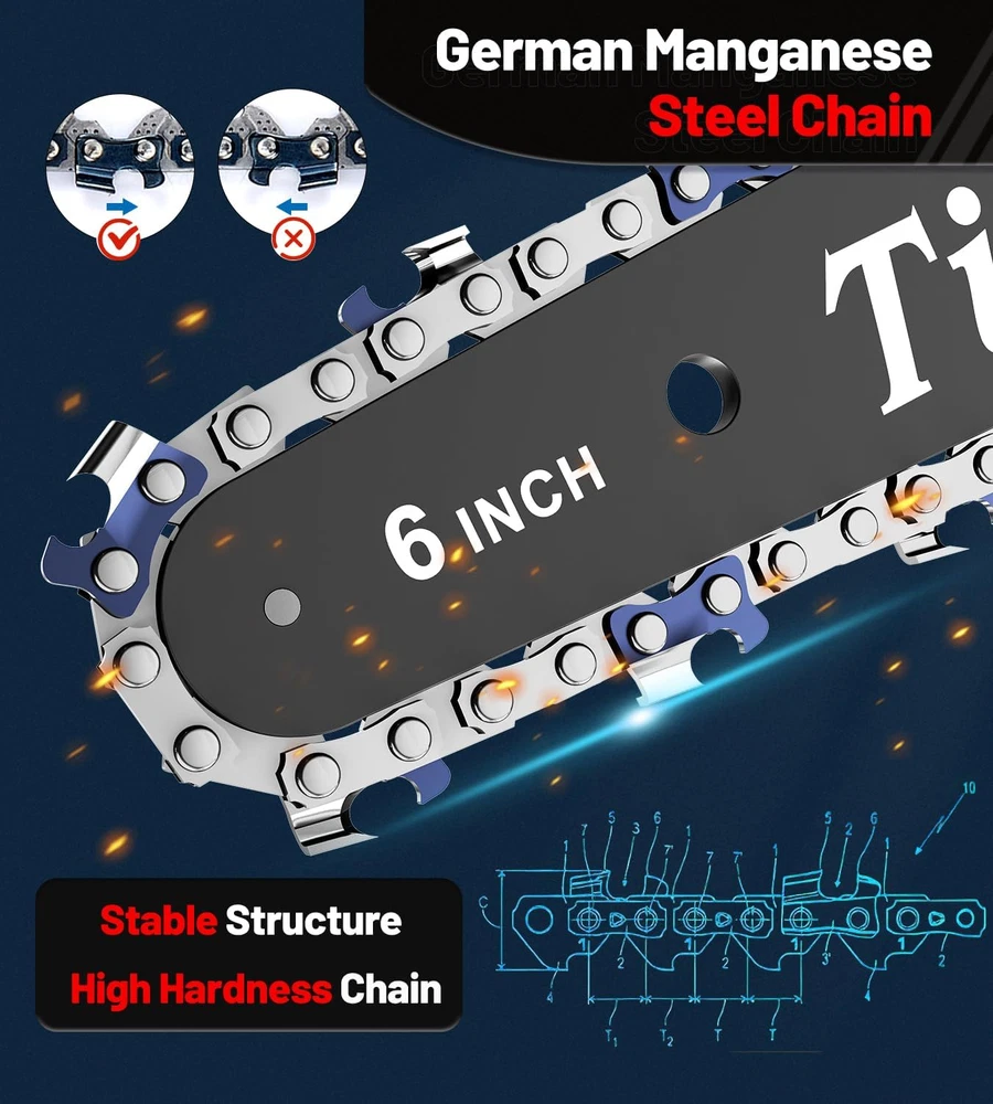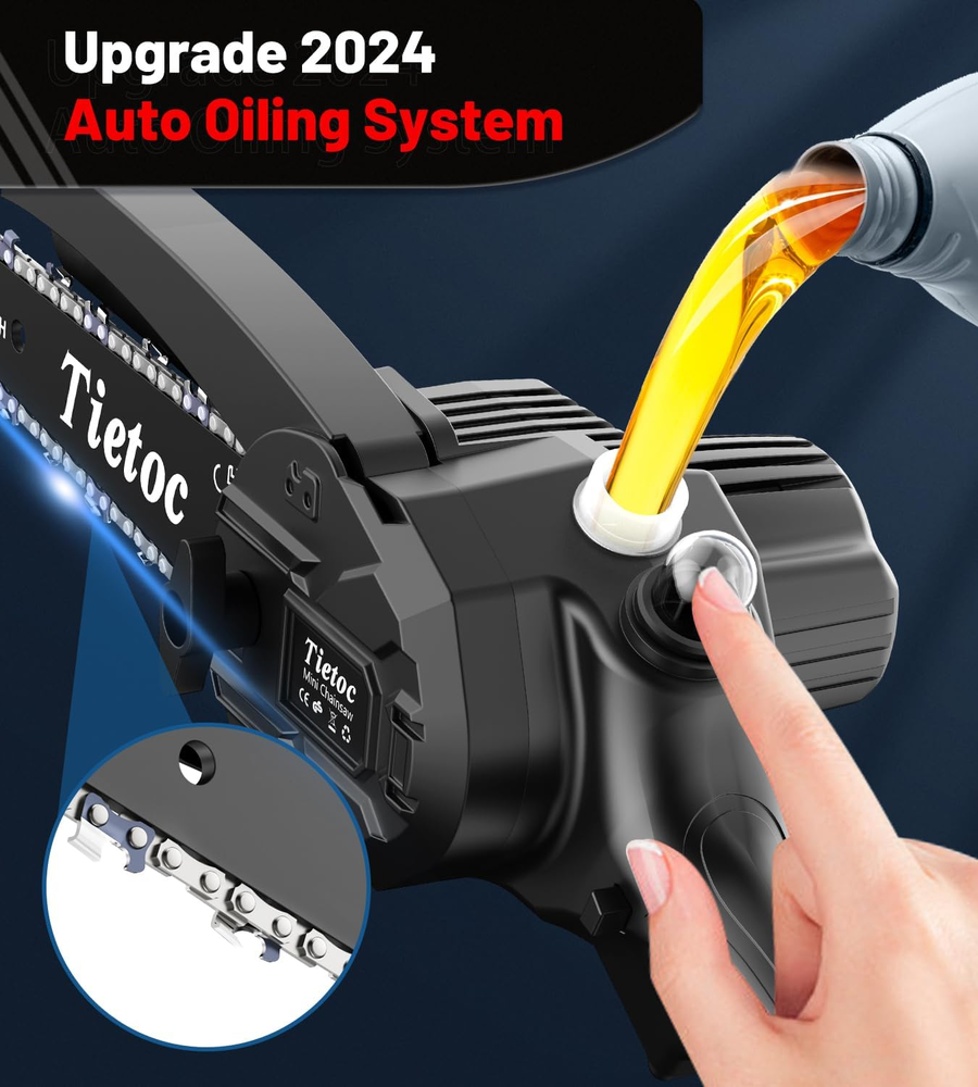 Menu Other Items Feedbacks About Us Contact Us Add To Favorites Mini Chainsaw 6 Inch Cordless, Portable Electric Chain Saw Small Handheld Battery Powered Super Saws, Gifts for Men Women, Birthday Gift for Dad Fathers Husband Him Her Mom Mothers Grandparent PERFECT FOR THE MIDDLE SIZED LOGS/BRANCHES: Sometimes you get a log that's just too big to snap in half by hand but too small to pull out the large chainsaw. This handheld mini chainsaw is PERFECT. Makes quick work of small logs and large branches. This is best for small, branches and tighter areas that a 12 in chainsaw will not work. It holds well in hand and shaped. Making wood cutting a breeze! THE AUTOMATIC OILER IS A GAME CHANGER: The saw has a reservoir for chain oil which is great. (Some Other Mini Chainsaws Do Not Have That!) "Automatic" oiling isn't self oiling like a larger saw, but a bulb you push to feed oil to the bar and chain. All of these mini saw blades require lubrication to work at their best so you should press the lubrication button fairly often while cutting. (Universal Saw Chain Oil for Fast Efficient Cutting Is Recommended.) 2 LARGE CAPACITY BATTERIES: Equipped with 2 x 2000mAh removable & rechargeable batteries (easy to install - it just slides on), the cordless mini chainsaw will finish all your cutting, even in the field! Charge level indicator of the battery (Some Other Mini Chainsaws Do Not Have That!) makes you know when it's time to charge it, and self-overload & temperature protection provide batteries much longer life. 5 SECURITY DESIGNS: 1. Security lock prevents accidental activation (The security lock & start button need to be pressed simultaneously for the chainsaw to start); 2. Safety baffles to prevent the wood from splashing; 3. Equip with anti-cut gloves that protect your hands; 4. Equip with an anti-slip texture handle, making you grip the mini chainsaw tightly; 5. Equip with goggles to protect your eyes from sawdust. Safety comes, please feel free to use it! 365-DAY WARRANTY: Tietoc mini chainsaw adopts flame retardant & environmental protection materials, and has professional certification [FCC]. (Some Other Chainsaws May Only Have A 90-day Warranty!) We are proud of our mini chainsaws so will offer a 365-day warranty! Any issue please contact us, we will make things right within 24h. PACKAGE LIST: Mini Chainsaw ×1; Rechargeable Li-on Battery ×2; Chain ×2 (1 has been mounted on the chainsaw); Guide Plate ×2 (1 has been mounted on the chainsaw); Quick Charger ×1; Safety Gloves ×1; Screwdriver ×1. All items are packed in a nice compact & portable ABS box, suitable for fieldwork & camping. Product Description The video showcases the product in use. The video guides you through product setup. The video compares multiple products. The video shows the product being unpacked. 1 880W Powerful Motor 2 Automatic Oiler 3 Installation Steps Item Specification Item model number Mini Chainsaw Cordless 6 Inch Part Number Mini Chainsaw Cordless 6 Inch Style Black - 6 inch Power Source Battery Powered Color Black Material Metal Country of Origin China Batteries Required? Yes Item Weight 2.8 Pounds Batteries 2 Lithium Ion batteries required. (included) Batteries Included? Yes Voltage 21 Volts Wattage 880 watts Horsepower 880 Watts Size Mini Chainsaw Cordless 6 Inch Product Dimensions 16"L x 4"W x 3"H Battery Cell Type Lithium Ion Included Components Quick Charger ×1, Mini Chainsaw ×1, Chain ×2 (1 has been mounted on the chainsaw), Guide Plate ×2 (1 has been mounted on the chainsaw), Rechargeable Li-on Battery ×2 Dimensions Shipping Returns Additional Info Product Dimensions: 4.0 "h x 16.0 "h x 3.0 "h. Weight: 2.8 lb Fast shipping is very important for us. Our standard shipping service is FREE. Your order will be shipped within 1-3 business days upon full payment received. Most items are delivered within 3-5 business days, however, please allow 3-10 business days. We are shipping only to USA. We only ship to the confirmed Paypal address. We reserve the right to cancel any order for any reason at any time. We are not responsible for undeliverable addresses. We offer a 30 day return policy from checkout winning date. Your satisfaction is guaranteed! If for any reason you are unhappy with your item, just return it within 30 days for a full refund, minus shipping cost. Please contact us prior to initiating a return so that we can issue you a refund authorization. Items defective upon receipt must be packaged in their retail packaging as if new and returned with a detailed description of the problem. Return shipping fees are not refundable. We reserve the right to decline any returns if the above guidelines are not followed. All of our items, unless otherwise stated, will only run on 120 volts. Please check to make sure your country complies with these specifications. If you have a problem or question regarding your transaction please contact us before leaving any type of feedback. We will work with you to resolve any problem you may have.
