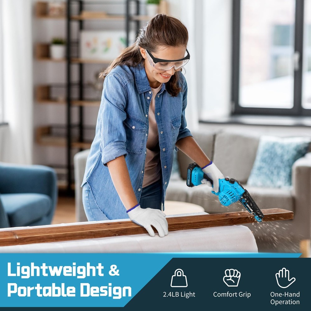 6-Inch Cordless Mini Chainsaw with 21V 2.0Ah Battery - Wood Ranger