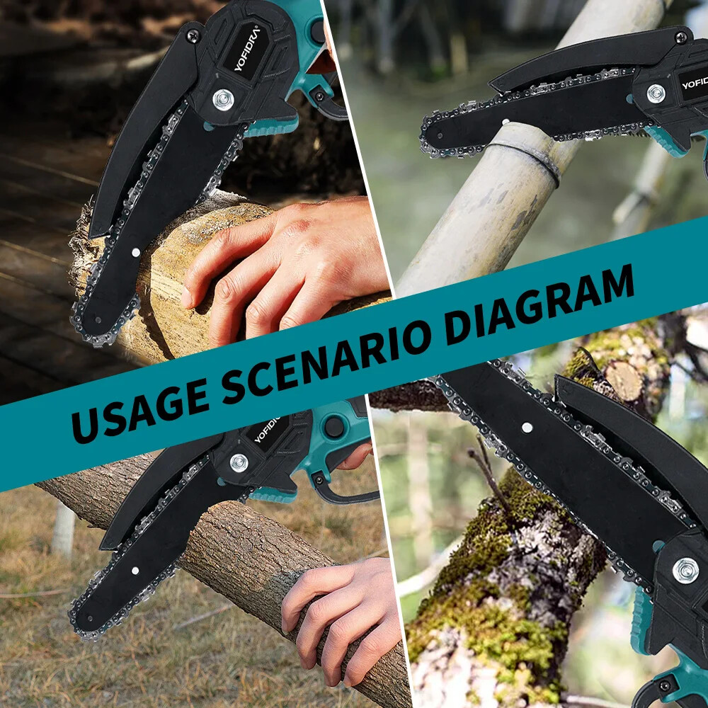 1200W 6 Inch Brushless Electric Chainsaw Cordless Electric Cutting Pruning Chain Saw Garden Tool For 21V 18V Battery Specifications: Name: Electric Chainsaw No-load Speed:11000rpm Chain Cutters:37 Knots Guide Plate Length:6 Inch Battery model: Suitable For 21V 18V Battery Package: 2XBattery Set: 1 X Chainsaw 3 X Chain 2 X Tools 1 X Oil can 1 X Gloves 1 X Goggles 2 X Battery 1 X Charger Features: --Brushless motor, strong power, fast cutting speed, improve efficiency. - Sharp & Strong Chain:High quality alloy chain, wear-resistant and durable, fast and smooth sawing without jamming. - Portable Design:Soft rubber handle, anti-skid and sweat-absorbing. -Widen baffle design, to prevent wood chips from splashing during cutting;Heat dissipation hole design, efficient ventilation and heat dissipation. -- Wide Application:This electric chainsaw has a wide range of uses, can be used for Forest cutting, cutting wood, pruning branches and so on. Adapted to 18V battery: √ compatible for 18V B series lithium battery,such as BL1850B(197285-8),BL1840B(197270-1),BL1830B(197602-2),BL1430B(197618-7),BL1820B(197487-6); √ compatible for BL1850,BL1840,BL1440(196391-6),BL1415(194560-3),BL1815N(196781-3); × NOT compatible for G Series battery such as BL1813G(196663-9) BL1413G(196882-7) BL1415G BL1430G BL1815G and so on × NOT compatible for 18v Ni-CD battery such as 1822(194465-7) Notes: 1.The plug defaults EU/US. If you need other specifications (UK, AU), please contact our customer service in time, and we will add a conversion head for you. 2.Manual measuring, please allow 1 ~ 3 cm error,thank you. 3.Due to the difference between different monitors, the picture may not reflect the actual color of the item. We guarantee the style is the same as shown in the pictures.Please understand, thank you