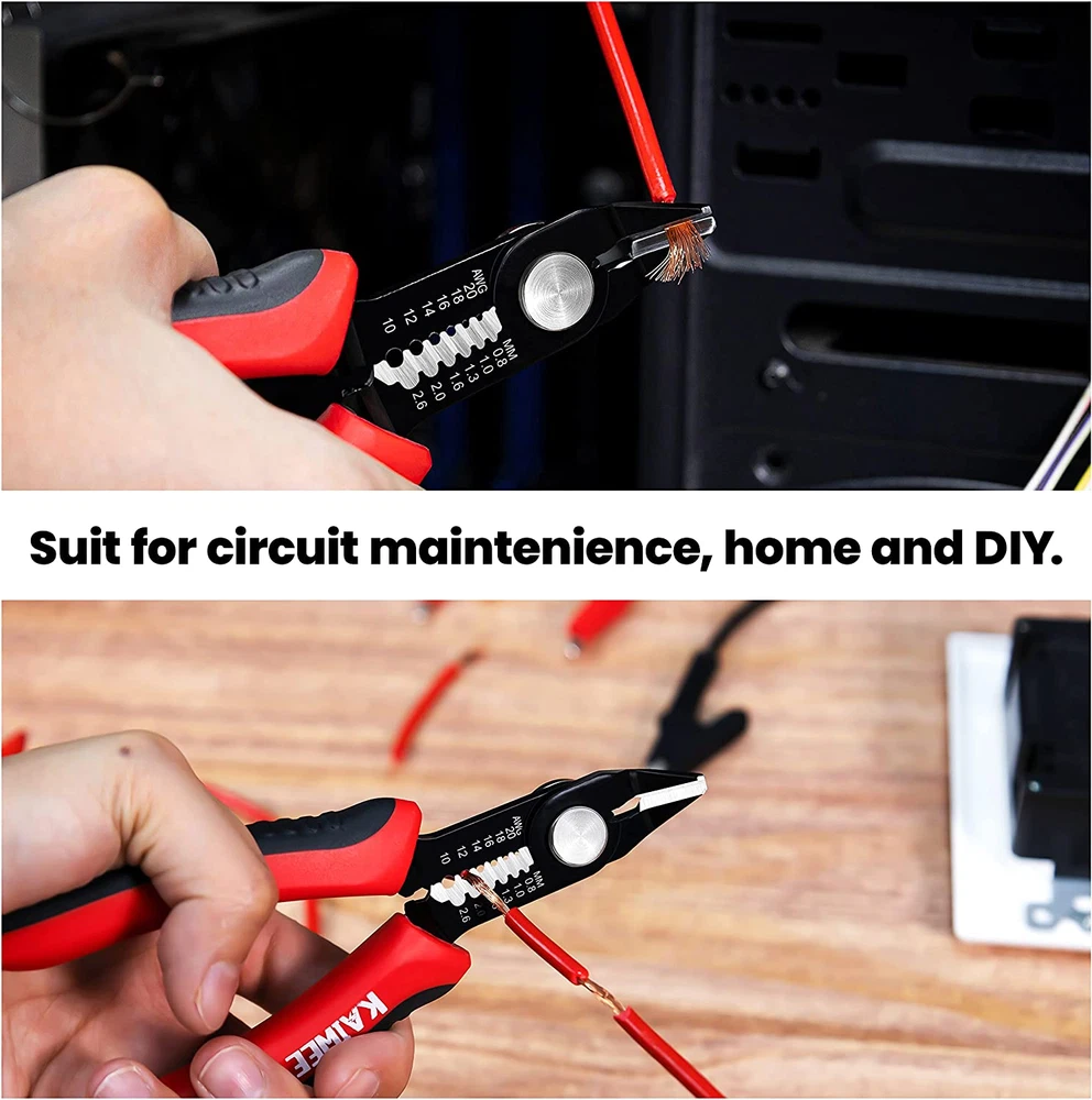 ✅【MULTI-FUNCTION 】Cutting copper, aluminum and sheathed core wires, cables, and insulated terminals, precise stripping for 10-20 AWG wires. ✅【SHARP & DURABLE】The micro wire cutter made of 65Mn steel that facilitates smooth, clean cut and swift snip with less effort and ensures its durability. ✅【ANGLED JAWS】This cutting pliers have a 30° angled jaw that is perfectly fit for confined and tight areas. It is also great for cutting electronic component pins on circuit board. ✅【TPR HANDLE & HIDDEN SPRING】Ergonomically designed handle and hidden spring help reduce fatigue, save effort and enhance corrosion resistance. ✅【CUSTOMER SERVICE】36-month after-sale service and lifelong technical support is guaranteed. Please don’t hesitate to contact us if there are any questions with our wire cutters. Product Description 1 Stripping Accuracy 2 Practicality 3 Comfortable Gripping The video showcases the product in use. The video guides you through product setup. The video compares multiple products. The video shows the product being unpacked. Will the cutters last long for my works? The cutters work well for smaller workloads and perfect for wires among 10-20. It constantly holds up unless being applied to materials out of standard. Can I close or lock the cutters when not in use? Yes, the newest batch of KWS-102 comes with a VELCRO, which can be used to close to cutters. If the cutters you ordered does not have VELCRO, you are able to require a replacement from us. What material are the cutters made of ? The KWS-102 wire cutters are made out of carbon steel. 2 In 1 Wire Cutter KAIWEETS Wire Strippers 10 - 20 Wire Stripping 10 - 22 None Wire Crimping 10 - 22 Adjustable Stopper TPR Handle Screw Cutter Hidden spring 10 - 20 Wire Stripping 10 - 20 None Wire Crimping 10 - 22 Adjustable Stopper TPR Handle Screw Cutter Hidden spring 10 - 20 Wire Stripping 10 - 24 None Wire Crimping 10 - 22 Adjustable Stopper TPR Handle Screw Cutter Hidden spring 10 - 20 Wire Stripping 10-24 None Wire Crimping 10 - 22 Adjustable Stopper TPR Handle Screw Cutter Hidden spring 5 In 1 Wire Stripper 3 In 1 Wire Stripper Self-Adjusting Stripper Wire Stripper Kit