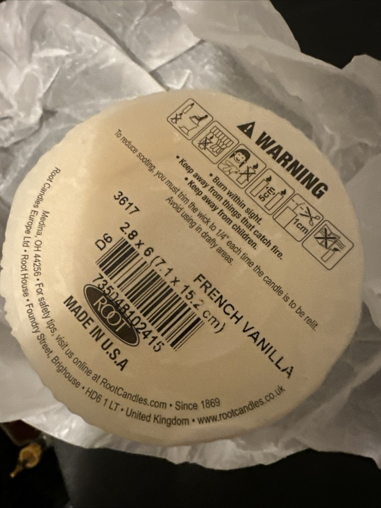 Elevate the ambiance of any room with this elegant Root Beeswax Pillar Candle. The candle has a French Vanilla scent that will fill your home with a warm and inviting aroma. The ivory color of the candle will complement any decor, making it a perfect addition to your living room, bedroom, foyer, or dining room. There is a small dent on the top side of the candle (see photos), also the box states Buttercream but the candle states French Vanilla (see photos) Crafted from high-quality beeswax, this single wick candle has a burning time of 17 hours per inch and measures 6 inches in height and 3 inches in width. The candle is made in the United States and comes in a pack of one. Perfect for those who love nature-inspired themes, this candle will add a touch of elegance to any indoor space.