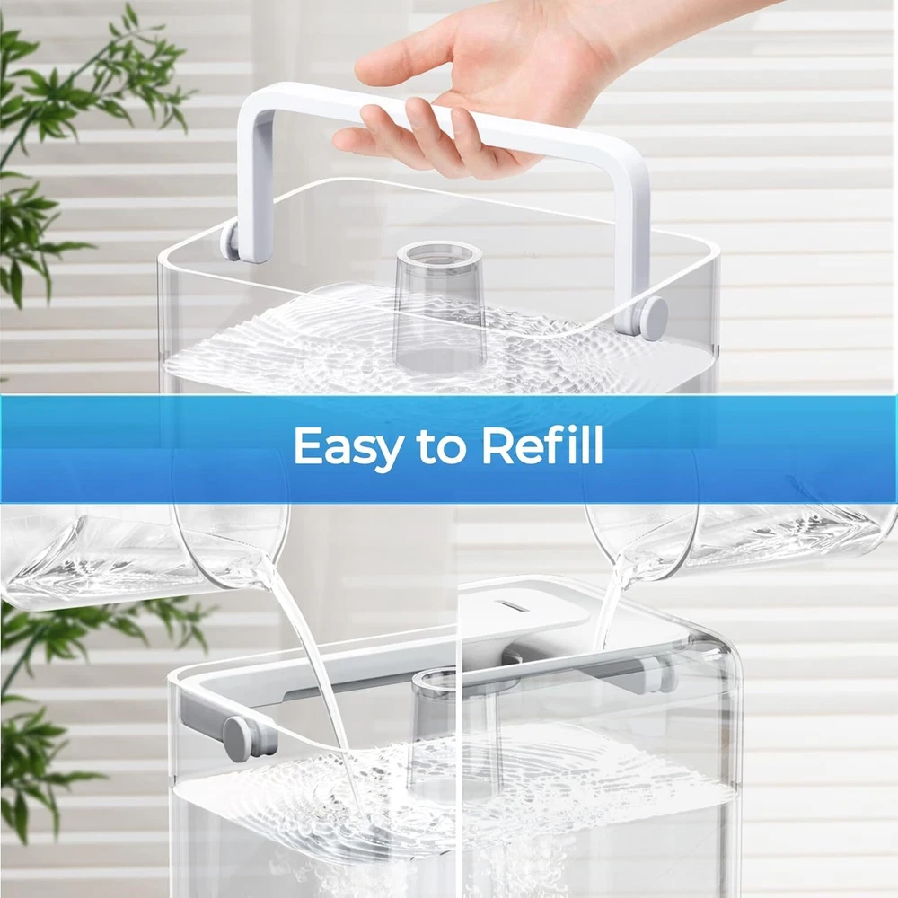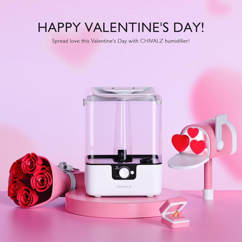 Description 6L Large Water Tank: The humidifiers for bedroom can run for up to 50 hours at a time in the lowest output mode. A red light indicator will let you know when it is time to refill the water and will automatically stop misting when the water level drops too low. Note: If there is water leakage during the first use, please pour out the water in the water tank and base. Try taking down the water tank separately to fill it with water, then putting it back on the base and restarting it 2-IN-1 Cool Mist Humidifier and Diffuser: Ultra fine cold mist up to 300ml/h can quickly add moisture to the air in large rooms, helping to alleviate cough, dry skin, sinus problems, and other issues caused by air dryness. The humidifiers for home is recommended to use distilled water and purified water for better health benefits. Put cotton pads with added essential oil in a dedicated oil tank. Note: Do not drip essential oil directly into the water tank Perfect Baby Humidifiers for Bedroom : The cool mist humidifiers for home has a knob to adjust the mist output and can run at a minimum of 26dB at the lowest setting, so enjoy a peaceful night’s rest. Soft blue night lights can also be turned on or off. CHIVALZ humidifiers for bedroom is an ideal choice for bedrooms, large rooms, baby nursery, offices, indoor plant humidifiers, and more Top Filling and Easy to Clean: The top filling design has been optimized for easy filling and cleaning. The water tank of baby humidifier is easy to disassemble, has a large opening, and comes with a cleaning brush, making it easy to scrub every corner of the humidifier. It is recommended to clean the humidifier for home every 2-3 weeks to extend its lifespan. Note: Do not soak the base in water. Suggest replacing the filter element every 2-3 months. More about filter element and pads: B0D2KK6WFP Exquisite Packaging: The 6L humidifier for large room is packaged as a suitable housewarming or holiday gift (Halloween, Mother's Day, Christmas, Thanksgiving, Valentine's Day, etc.) . The reason why the PM2.5 value may increase after turning on the humidifier is that the PM2.5 detector incorrectly identifies the mist as fine particulate matter. We offer reliable after-sales support to address any questions or concerns about the baby humidifiers for bedroom About CHIVALZ Add to Cart Add to Cart Add to Cart Add to Cart Add to Cart Customer Reviews 4.2 out of 5 stars 75 4.2 out of 5 stars 21 4.3 out of 5 stars 2,054 4.3 out of 5 stars 1,610 4.8 out of 5 stars 250 4.7 out of 5 stars 120 Price $13.99 $ 13 . 99 $49.99 $ 49 . 99 $49.99 $ 49 . 99 $79.99 $ 79 . 99 $39.99 $ 39 . 99 — Model YZY6001-KC-FE YZY6001 White with Polka Dots YZY6001-KC Black HY1800 HY4866G AP-1512HH Package 10 Filters and 10 Aroma Pads 1 Pack 1 Pack 2 Pack 2 Pack 2 HEPA 8 Carbon Filters Filter Lifespan 2-3 months 2-3 months 2-3 months 3-6 months 3-6 months 6-12 months Features Effective Filtering 6L Large Capacity 360° Nozzle Aroma Diffuser Night Light Aromatherapy 4H Timer Multiple Stack Filtering Premium HEPA Filter Minimum Decibel / 26dB 26dB 28dB / / 1 Easy to Operate 2 Easy to Clean 3 Need Attention
